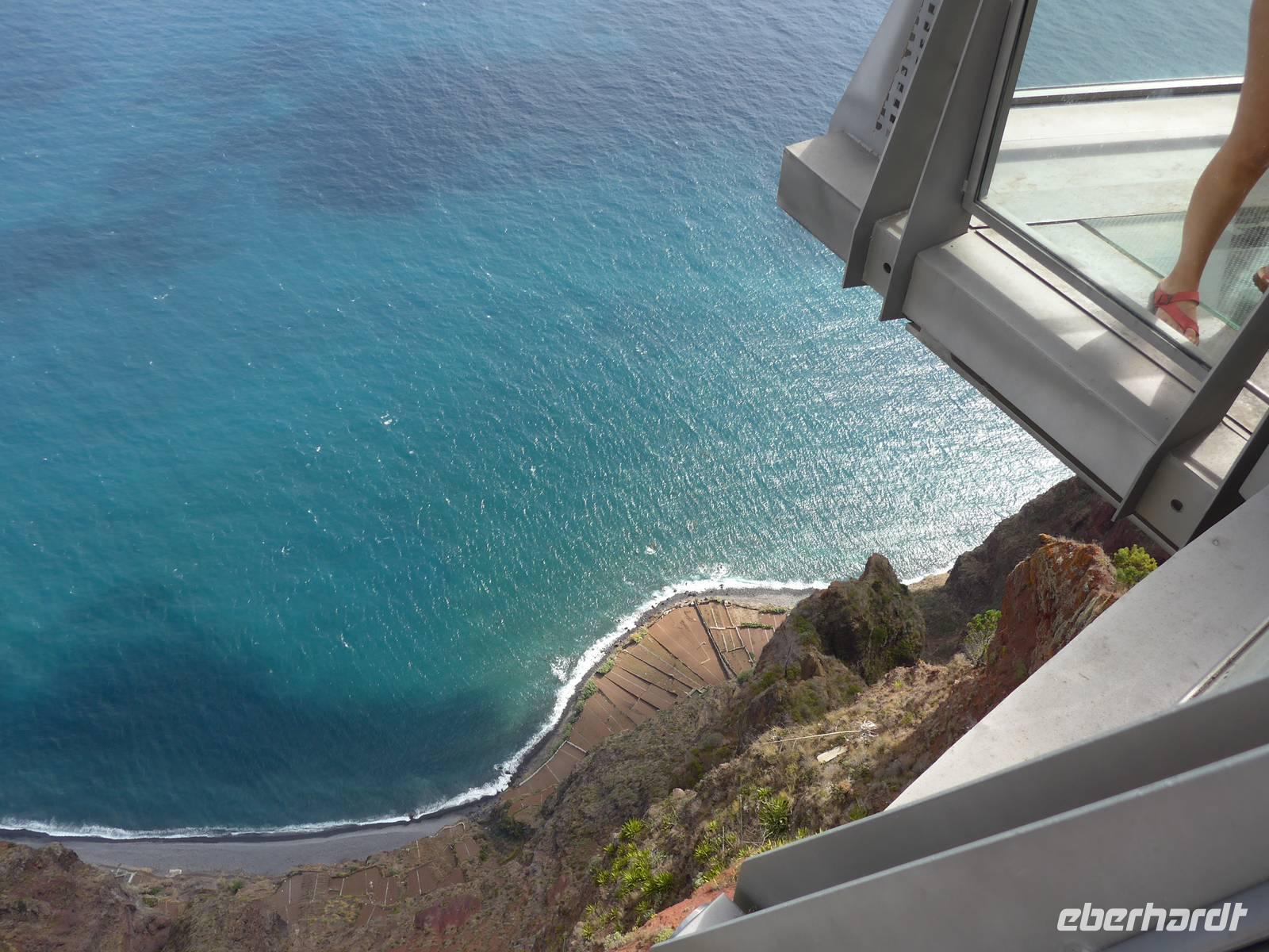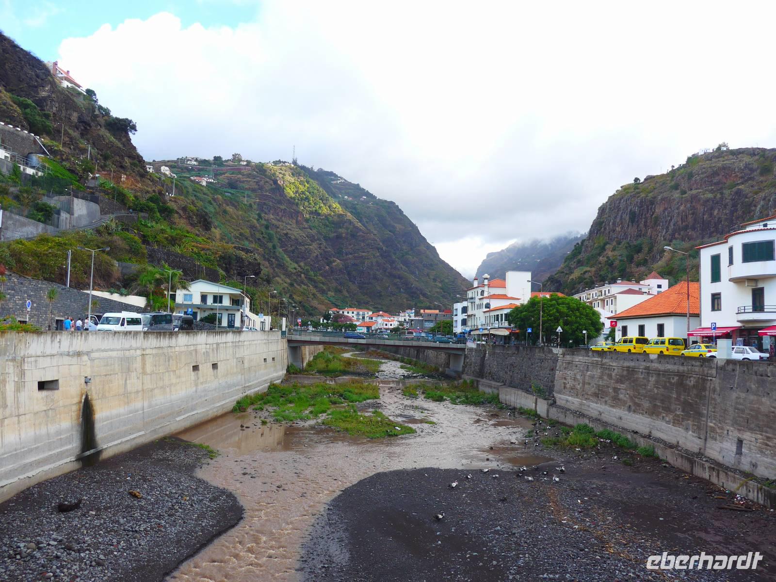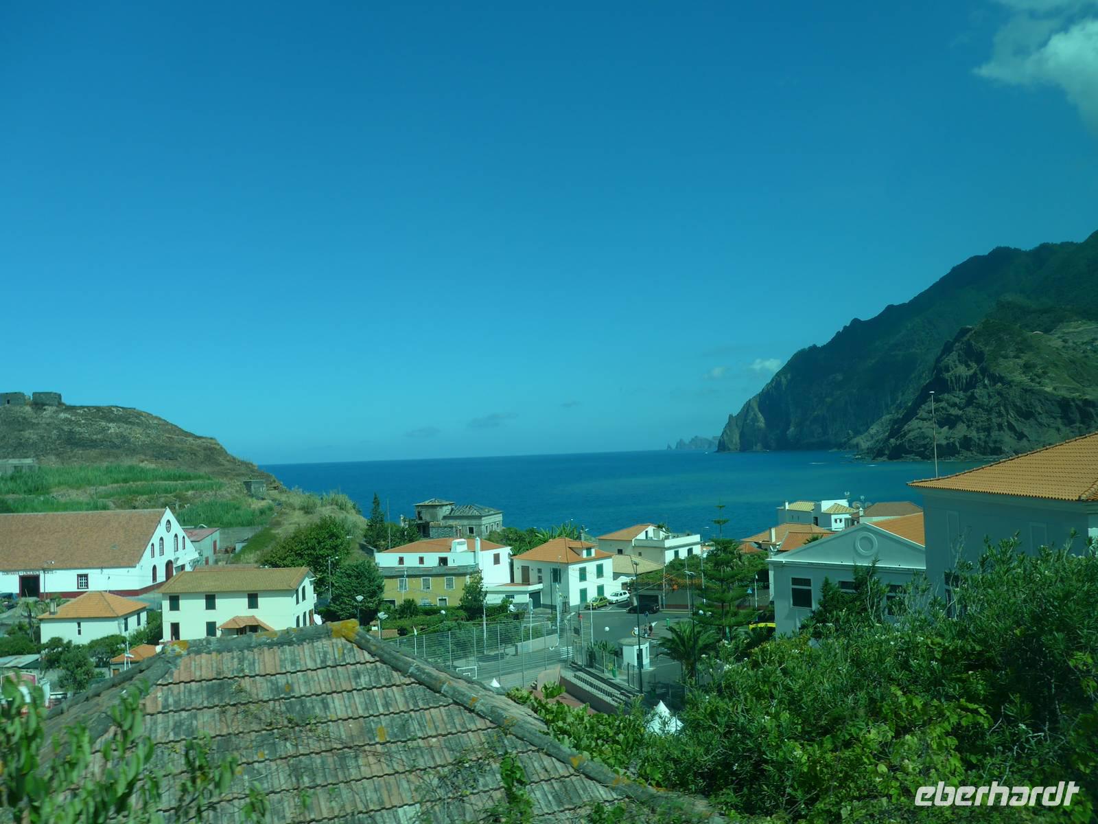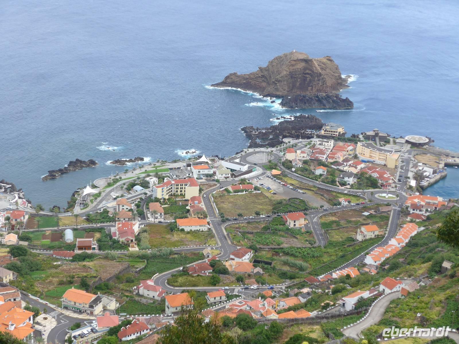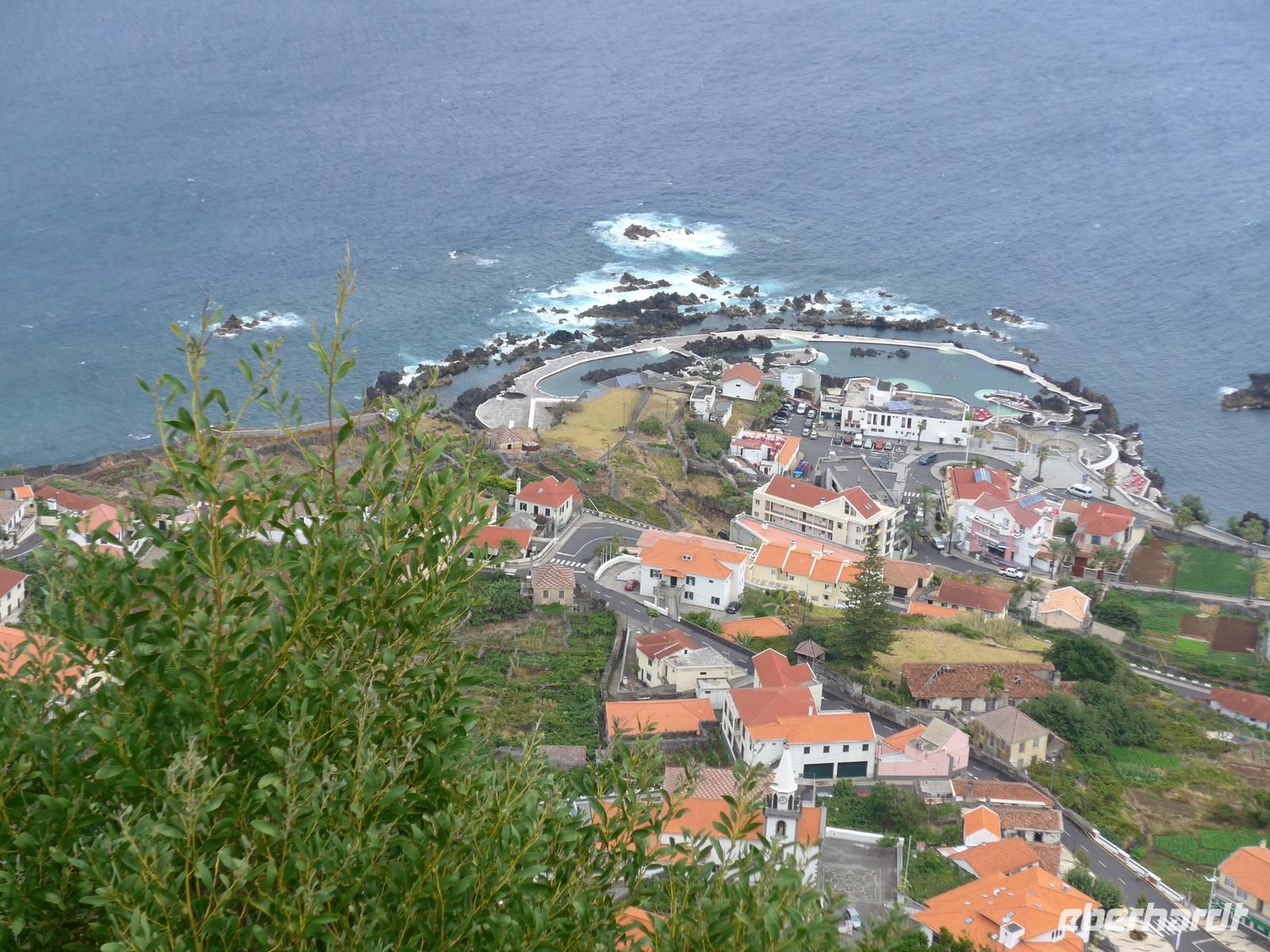 Unsere Wetteraussichten des heutigen Tages schauen nicht gut aus, wir haben leichten Regen Doch das hält uns nicht davon ab, uns auf die Besichtigung der Orte Ribeira Brava, Porto Moniz und São Vicente zu freuen. Bei unserer Ankunft in Ribeira Brava regnet es leider wie aus Eimern. Aber wir brauchen nur wenige Minute im Bus warten bis der kurze Schauer vorüber ist. In diesem Ort schauen wir uns vor allem die Kirche an. Weiter kaufen wir unter anderem kleine Andenken an liebe Daheimgebliebene in vielen Souvenirshops. Dann fahren wir über Ponta do Sol und Arco da Calheta auf die Paúl da Serra bei Nebel und wir legen zwei Foto-Stopps mit Blick ins Ribeira da Janela und auf Porto Moniz ein. Um 12.00 Uhr erreichen wir Porto Moniz, wo wir auch unsere Mittagspause verbringen werden. Dieser wurde nach dem portugiesischen Adligen Francisco Moniz benannt. Zuerst genießen wir eine leckere Suppe oder Salat in einem von Helena empfohlenem Restaurant. Während einige Reisegäste den Ort erkunden, gönnen sich die anderen Gäste eine Abkühlung in den für diesen Ort bekannten Meeresschwimmbecken. Diese Becken werden von bizarren Felsformationen aus Vulkangestein umrahmt. Im Anschluss an ein erfrischendes Bad bleibt auch noch ein wenig Zeit zum Bummeln und Kauf von Souvenirs. Im Anschluss fahren wir entlang der Nordküste über Seixal nach São Vicente. Wir besuchen die kleine barocke Pfarrkirche und begeben uns auf einen kurzen Rundgang durch den Ort. Dann geht es weiter über den Encumeada-Pass zu einer kleinen Kneipe, wo wir uns noch einmal einen Poncha oder Nikita zum Abschluss unserer Reise gönnen. Auf unserer Rückfahrt zum Hotel halten wir ein weiteres Mal am Miradouro do Cabo Girão, da heute die Sicht zum Fotografieren besser ist. Gegen 17.30 Uhr erreichen wir wieder unser Hotel. Wir verabschieden uns herzlich von Helena und Roberto, wir bedanken uns für die tolle Reise und auch die vielen kleinen Zwischenstopps und schönen Umwege Wir werden beide zwar am nächsten noch einmal sehen, aber doppelt hält ja bekanntlich auch besser! Im Hotel entspannen wir bis zum Abendessen. Wir treffen uns wie gewohnt im Eingangsbereich und laufen ein zweites Mal zum Restaurant "A Lareira". Das Essen schmeckt uns abermals sehr gut, obwohl wir dieses Mal ein wenig länger darauf warten müssen. Als Entschädigung gibt es zum Abschluss noch unseren bereits mehrmals probierten und für lecker empfundenen Aperitif Madeira-Wein. Wir können gar nicht glauben, dass wir morgen dieses wunderschöne Inselparadies bereits wieder verlassen werden!