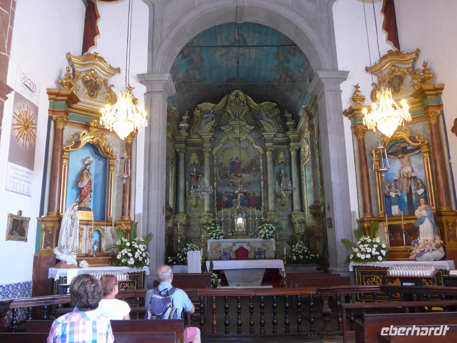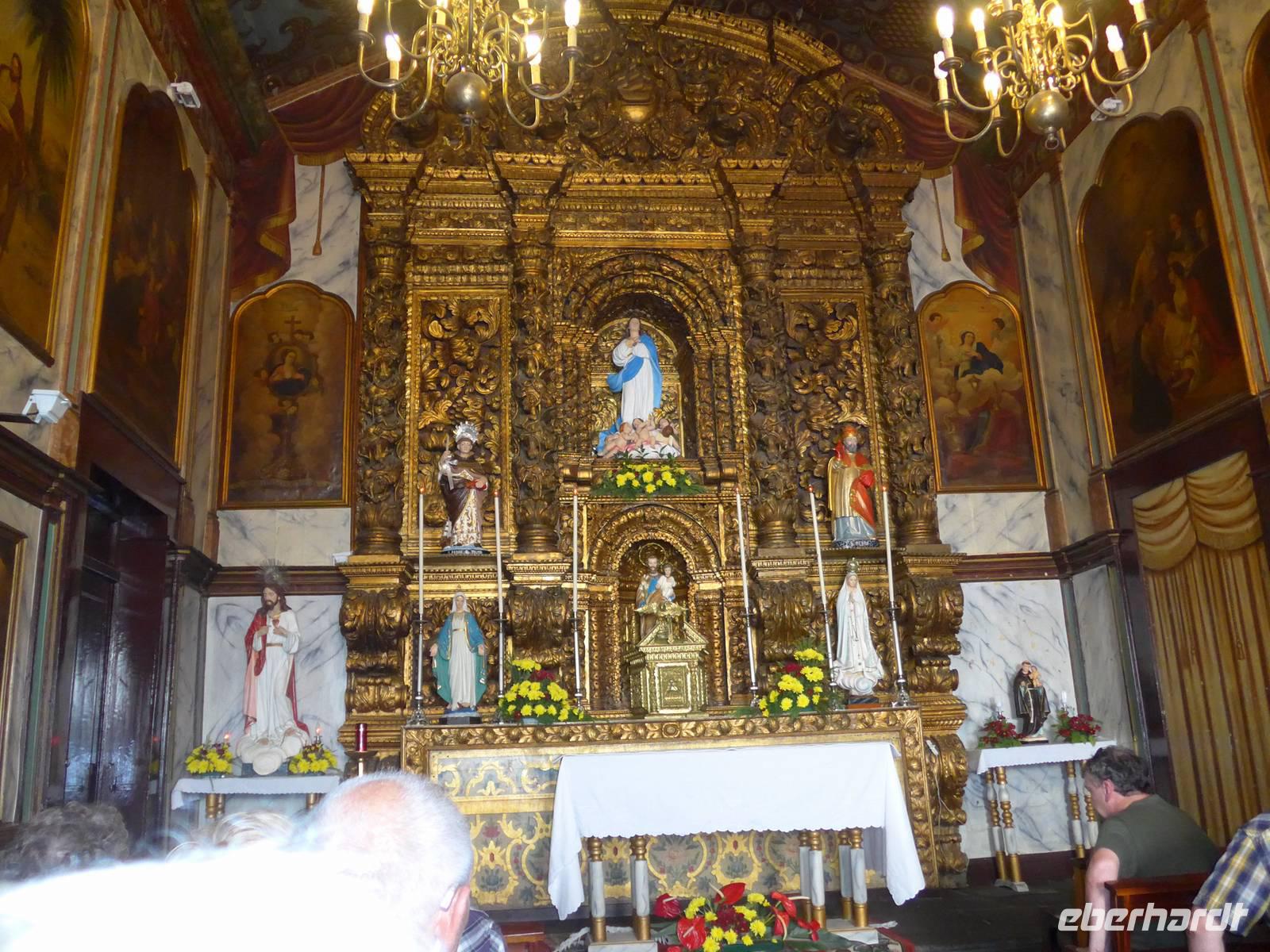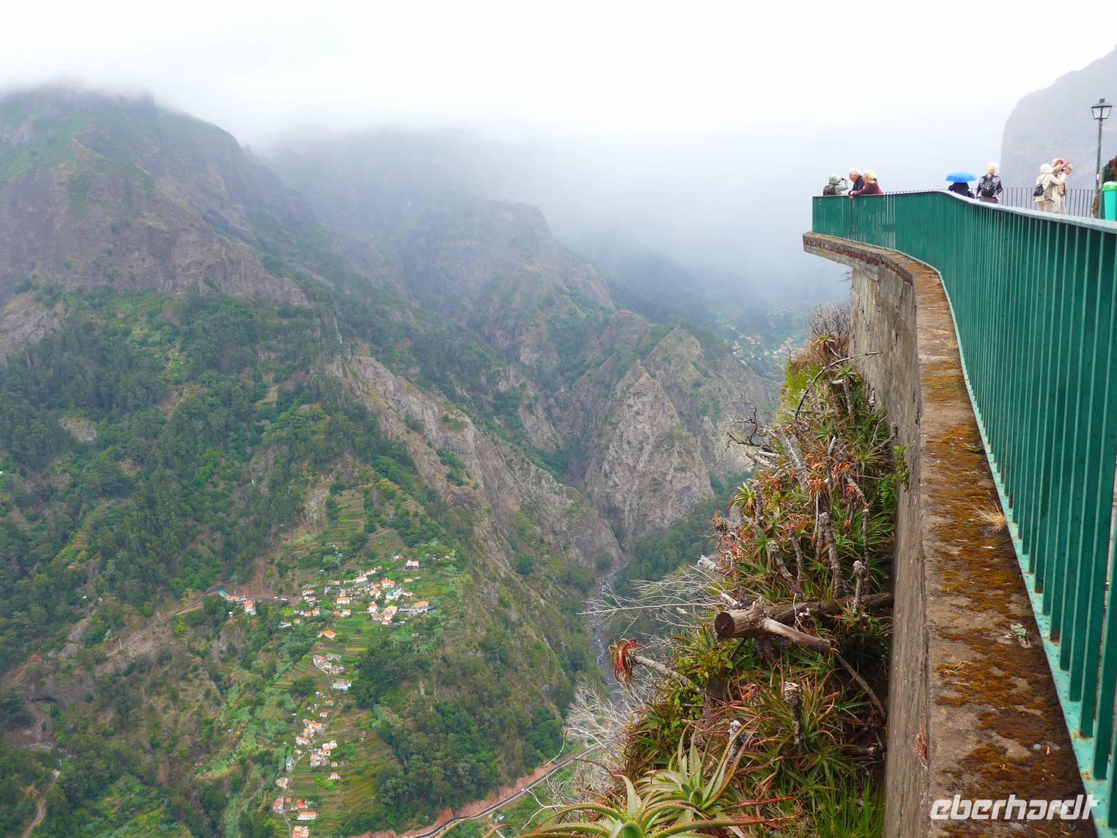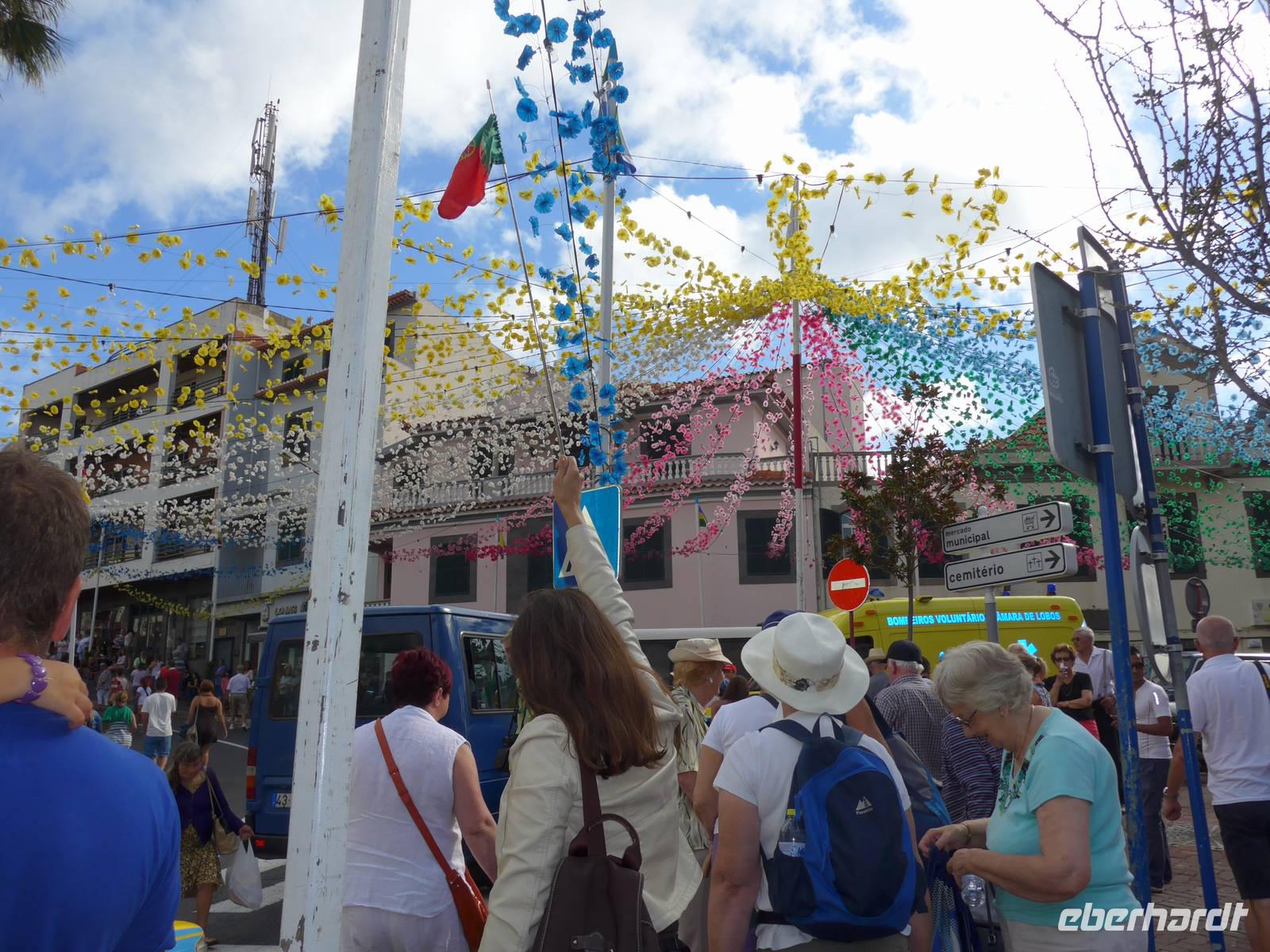 Nach einem ausgiebigen Frühstück starten wir zur nächsten Etappe unserer aufregenden Reise - Die "Mercado dos Lavradores", also die Markthalle und der Bauernmarkt in Funchal. Während der Fahrt erzählt uns Helena geschichtliche Hintergründe. Zum Beispiel hatte Kaiserin Sissi Madeira oftmals besucht und in dem vom Schotten William Reid 1894 errichteten pompösen Hotel übernachtet. Wir kommen auch am Denkmal ihr zu Ehren im Casino-Park vorbei. Zudem gibt uns Helena auf den Wem zur Markthalle erste wichtige Informationen zu Blumen, Pflanzen und Früchte, welche sie dann in der beeindruckenden Halle vertieft. Bevor wir also zum besonderem Highlight dieser Reise, dem Weinfest in Estreito de Câmara de Lobos aufbrechen, bestaunen wir noch die Größe und Vielfältigkeit der Markthalle mit dem beeindruckendem kachelverziertem Eingangsbereich. In der Markthalle können wir nicht nur Blumen, Obst und Gemüse kaufen, sondern hier gibt es vom Fisch über Kleidung, Gewürze und Souvenirs bis hin zum Schnaps jede Menge zu erwerben Beispielsweise sehen wir wunderschöne Strelitzien, Orchideen, Rosen, Azaleen, Kamelien und Glyzinien. Desweiteren erkennen wir landestypisches Gemüse und Früchte wie Passiflora und Pipinella wieder, welche uns Helena bereits gestern in Santana gezeigt hatte. Die Händler bieten aber auch Maracuja-Tomaten, Papaya und Cherimoya an. Danach fahren wir nur wenige Minuten nach Estreito de Câmara de Lobos. Dieser Ort ist besonders für die enge Verbindung der Gemeinde mit der Herstellung des typischen Madeira-Weines und seines zu Ehren der Weinlese, jährlich im Sommer stattfindenden, Winzerfestes "Festa das Vindimas" bekannt. Wir erreichen das Weinfest zu einem sehr gutem Zeitpunkt, denn wir brauchen nicht lange warten und der Festumzug beginnt. Alles im allen ist es sehr bunt, sehr laut und einfach nur herrlich schön anzusehen, die tollen Trachten und farbenfrohen Kleider, die Musiker und Umzugswagen. Es fühlt sich teilweise so an, als würden wir selbst mitfeiern und nicht nur Touristen sein, da die Atmosphäre sehr heimisch ist. Wer Lust hat, kann die Weintrauben auch selbst pflücken! Als kleinen Mittagssnack gönnen sich viele Gäste leckeres Fladenbrot mit Knoblauch und Wurst, es ist wirklich zu empfehlen Gegen 12.30 Uhr fahren wir zu einem kurzen Foto-Stopp am Pico da Torre. Es regnet aber, so dass wir gleich zum nächsten Programmpunkt aufbrechen, nämlich der Besuch des Fischerdörfchens Câmara de Lobos mit seinen vielen bunten Booten. Übersetzt bedeutet der Ortsname "Höhle der Mönchsrobben", obwohl heute kaum noch solche Robben zu sehen sind. Berühmtheit erlangte dieser Ort, da Winston Churchill ihn auf einem Gemälde verewigen ließ. Eine Gedenktafel im Ortskern erinnert an dieses Ereignis. Ebenfalls interessant könnte die Tatsache sein, dass Christoph Columbus den Nachbau der Santa Maria hier angefertigt hatte. Wir besichtigen die kleine Seefahrerkapelle Nossa Senhora da Conceição von 1702 mit naiven, das Fischerleben beschreibenden Ölgemälden. Dann trinken wir in der Bar "É Prá Poncha" das zweite typische Getränk auf Madeira, einen "Nikita". Dieses Getränkt besteht aus Weißwein, Bier, Vanilleeis, Ananas und Zucker und es wurde erstmals in Sunny Bar in diesem Ort 1986 hergestellt. Im Anschluss fahren wir weiter zu einem privaten Weingut in Estreito de Câmara de Lobos. Während wir von Helena viele wichtige Details zum Weingut, der Weinherstellung und der Familie des Gutes erfahren, lassen wir uns ein Glas eines tollen 25-Jährigen Madeira-Weines und selbstgemachten Pfefferkuchen schmecken. Schließlich besuchen wir auch die kleine Kirche und das Landhaus im Weingut. Letzter Programmpunkt des heutigen aufregenden Tages ist die höchste Klippe Europas, nämlich der Miradouro do Cabo Girão. Wir befinden uns 580 Meter über den Meeresspiegel und rein theoretisch könnten wir durch Glasscheiben des Skywalks in die Tiefe schauen. Leider ist es sehr neblig, so dass die Sicht sehr eingeschränkt ist. Also fahren wir nur wenige Minuten später zu unserem Hotel zurück. Das Wetter hat sich zwar nicht verbessert, wir machen aber dennoch das Beste daraus. Bis zum Abendessen entspannen wir in unseren Zimmern. Der Großteil der Reisegruppe trifft sich gegen 19.30 Uhr, um zusammen nur fünf Gehminuten zum Restaurant "A Lareira" zu laufen. Dieses Restaurant besitzt genauso wie das gestrige Restaurant ein tolles Ambiente und das Essen "à la carte" ist ebenfalls zu empfehlen. Wir lassen den Tag gemütlich bei Bier, Wein und interessanten Gesprächen ausklingen und freuen uns schon auf morgen, einen weiteren spannenden Tag voller einzigartiger Ereignisse.