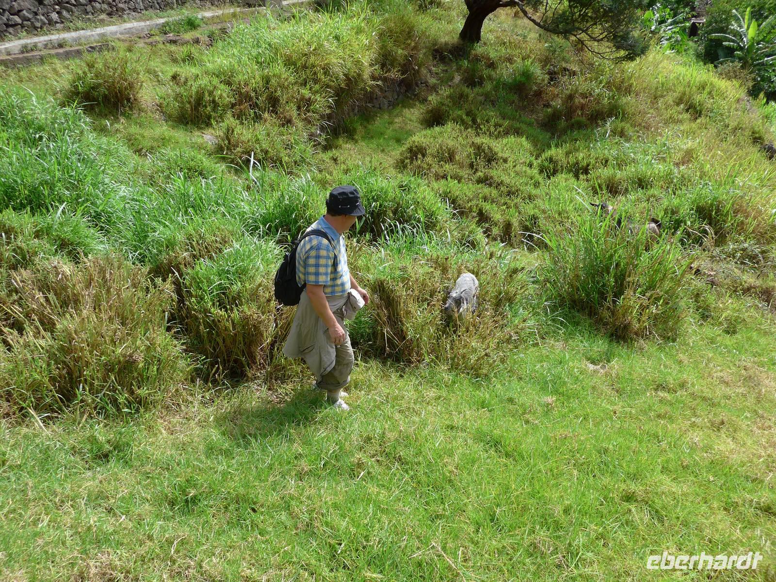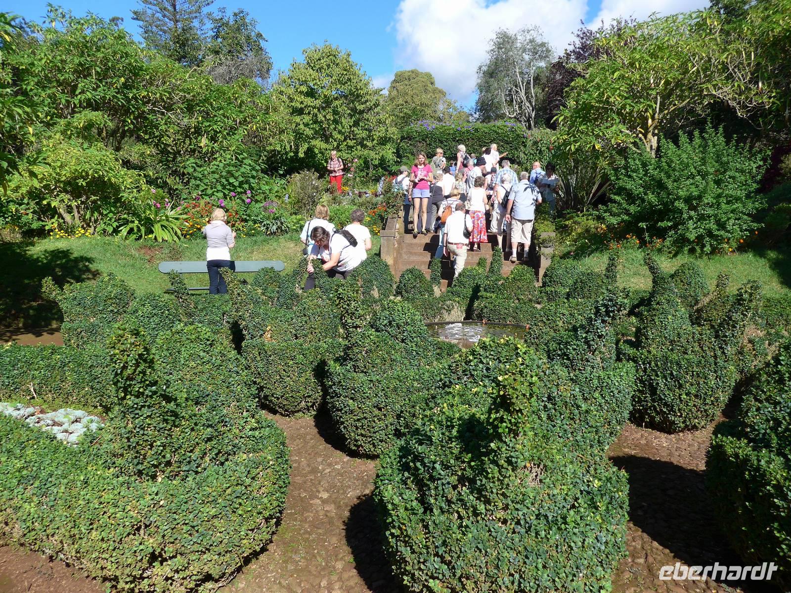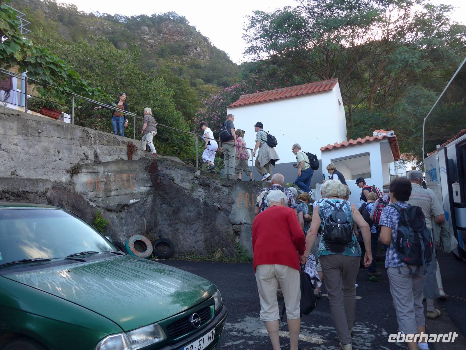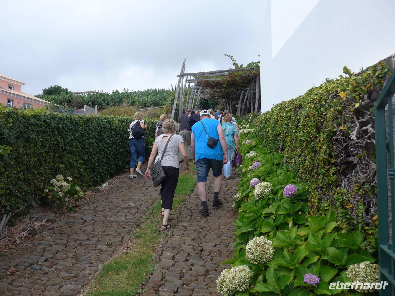 Unsere spannenden Programmpunkte am sechsten Tag in Madeira sind der Botanische Garten "Jardim Botânico", der Wallfahrtsort Monte und Esmeraldas Kräutergarten "A Quintinha das ervas aromáticas". Zuerst reisen wir nach Funchal zum schönem Botanischen Garten. Wir erfahren weitere Details und Neuigkeiten zu den unterschiedlichsten Pflanzen und Bäumen durch unsere fachkundige Reiseleiterin Helena. Der Botanische Garten teilt sich in fünf Bereiche. Dazu gehören der Baumgarten, der Loiro Park und die einzelnen Bereiche einheimischer Pflanzen, dann der Sukkulenten sowie ein Teil mit Anbaupflanzen und tropischen Pflanzen. Beispielsweise werden uns Bromelien, Rhododendron, Frauenschuh, Wurzelfarn, Cordyline, Engelstrompeten (Brugmansia), Bignonien, Elefantenfuß, Fikus und Veilchenbaum (Tibouchina urvilleana) gezeigt. Außerdem sehen wir einen schönen blühenden Florettseidenbaum (Chorisia speciosa), aus dem Kapok zur Herstellung von Matratzen, Rettungsringen oder Schwimmwesten gewonnen wird. Nach der Führung erkunden wir diesen Garten mit seinen über 2.000 verschiedenen exotischen Pflanzen in diversen Farben auf eigene Faust Anschließend führt uns der Weg weiter nach Monte mit seiner hübschen Barockkirche Nossa Senhora do Monte und dem abenteuerlichen Erlebnis Korbschlittenfahrt, an der auch viele Gäste teilnehmen. Das Örtchen Monte liegt rund 600 bis 800 Meter hoch und ist besonders für die unterhalb der Kirche beginnende Korbschlittenfahrt berühmt. Helena erzählt uns die Geschichte rund um den letzten Kaisers Österreichs Karl von Habsburg, seine Zeit im Exil auf der Insel Madeira und die besondere Verbindung zu Monte. Dann teilt sich unsere Gruppe, einige Gäste suchen das Abenteuer und fahren zu zweit oder zu dritt mit dem Korbschlitten rund zehn Minuten auf einer zwei Kilometer langen asphaltierten Straße bergab Die anderen Reisegäste lassen es eher ruhig angehen und beobachten dieses typische Spektakel Madeiras. Gegen 12.30 Uhr treffen beide Gruppen aufeinander und wir fahren gemeinsam zum Eira do Serrado zu fahren, wo wir auch unserer Mittagspause verbringen werden. Unser Ziel erreichen wir circa 30 Minuten später. Wir genießen die großartige Aussicht auf die Berge und das abgeschiedene Dorf Curral das Freiras (Tal der Nonnen), gönnen uns einen kleinen Imbiss im Café und schlendern durch den Souvenirshop. Das Tal der Nonnen ist ein kleines Dorf im Herzen der Insel. Seinen Namen erhielt es, da die Nonnen Schutz vor den auf Madeira häufig überfallenden Piraten im 16. Jahrhundert suchten. In Anschluss folgt ein kurzer Foto-Stopp am Pico dos Barcelos und gegen 14.00 Uhr sind wir bei Esmeralda in ihrem Kräutergarten "A Quintinha das ervas aromáticas". Wir werden mit Tee aus Zitronengras und Ingwer, Weißbrot mit Apfel-Chili-Gelee und Walnusskuchen begrüßt. Wir freuen uns über den herzlichen Empfang und genießen das köstliche Essen. Aufgrund des kleinen Gartens teil sich die Gruppe und die erste Gruppe geht gemeinsam mit Esmeralda durch ihren 20 Jahren alten Kräutergarten. Sie zeigt und erklärt uns verschiedene Pflanzen und Gewächse. Zum Beispiel sehen und besonders auch beschnuppern wir nach Ingwer duftende Pelargonien, roten Pfeffer, nach Mandarine schmeckende Curry-Blätter, Ananas-Salbei, Erdbeere-Minze, Haselnuss-Duft-Pelargonie und die Zuckerpflanze Stevia. Gegen 16.00 Uhr fahren wir in nur wenigen Minuten zum Hotel zurück. Als kleine Überraschung haben wir eine private Gartenführung in unserem Hotel für unsere Gäste organisiert. Wir treffen uns 18.00 Uhr im Eingangsbereich, um uns die riesengroße Anlage zeigen zu lassen mit vielen interessanten Auskünften zu unserem Übernachtungsort. Direkt im Anschluss an die Gartenführung laufen wir zum bereits bekannten Currascaria & Restaurante "a central". Dieses Mal können die Gäste zwischen den zwei Menüs Fisch und Fleisch oder Essen "à la carte" wählen. Es schmeckt uns abermals sehr gut und wir lassen den Tag gemütlich bei Bier, Wein und spannenden Gesprächen ausklingen.