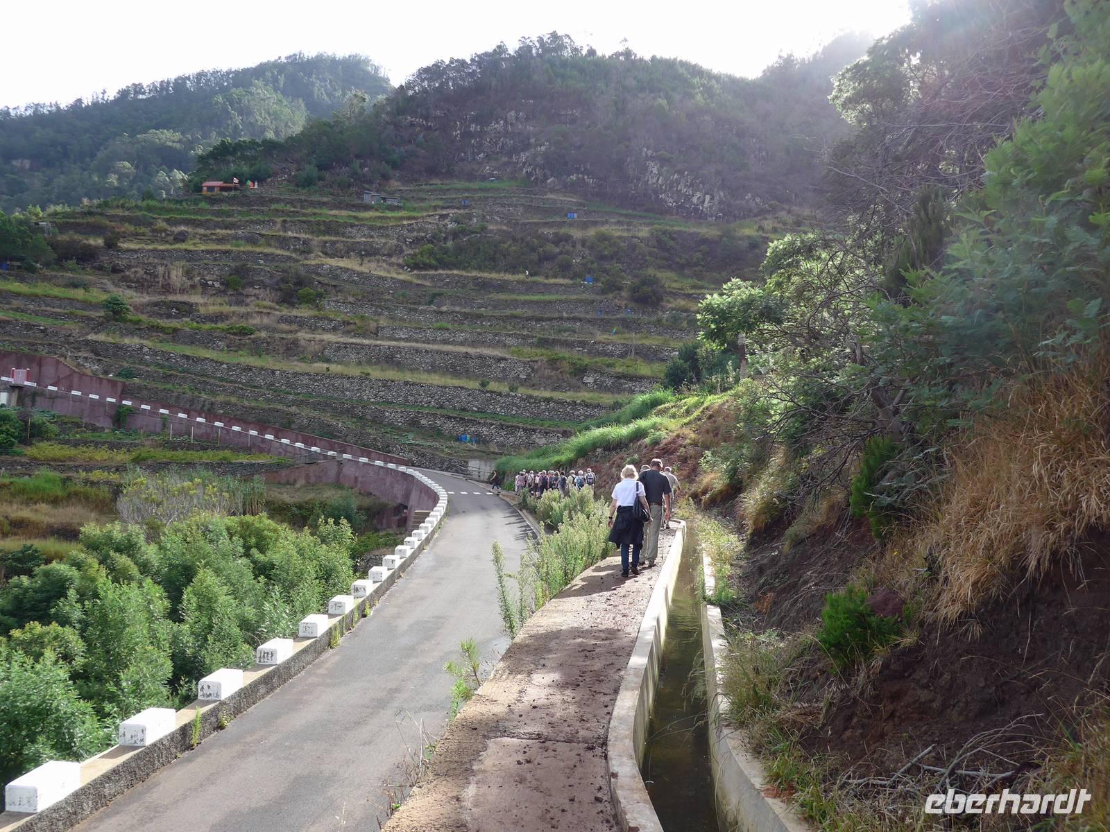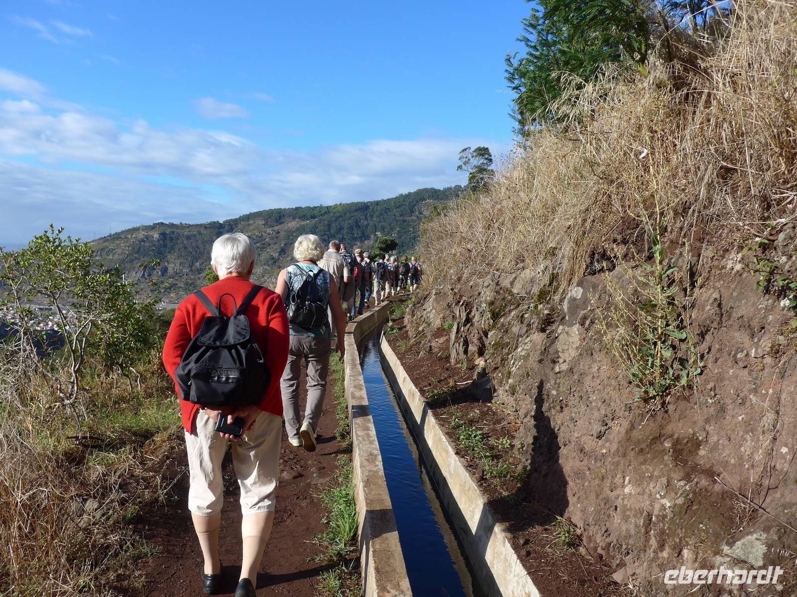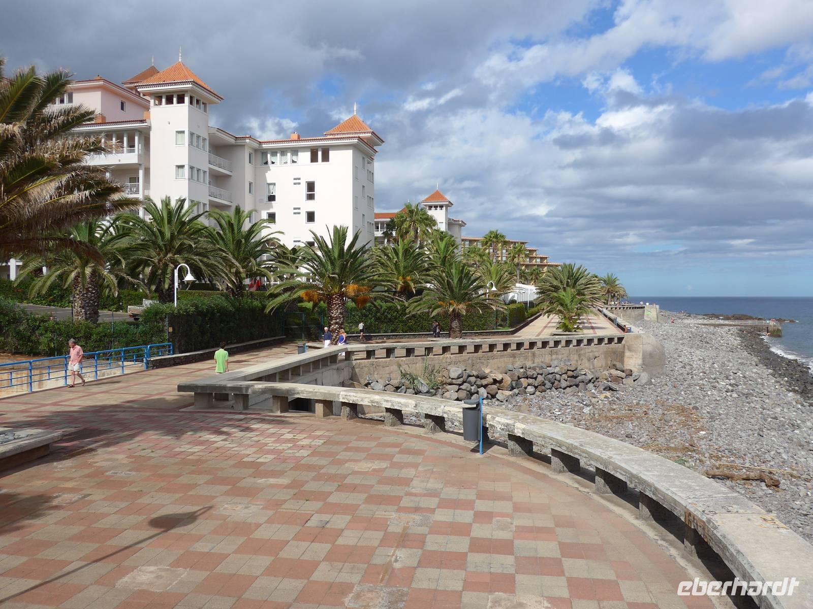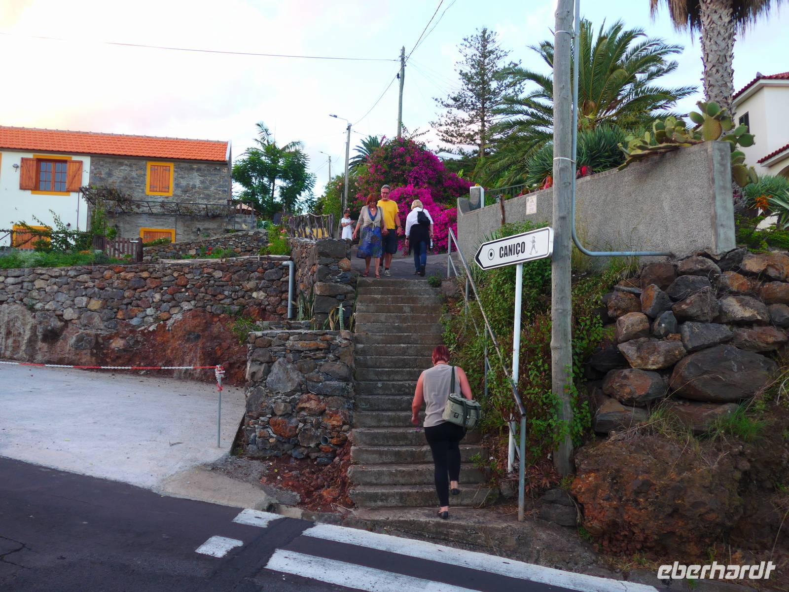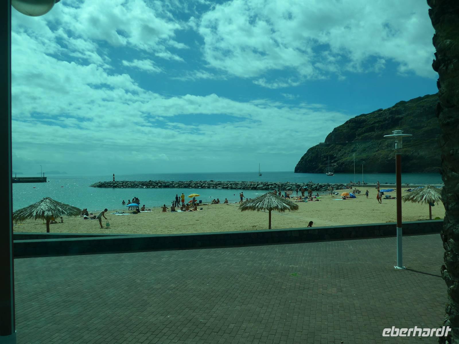 Gutgelaunt starten wir mit einem herzhaften oder süßen Frühstück in den Tag. Anschließend bricht eine Großteil unserer Reisegruppe zur fakultativen rund 6,5 Kilometer langen Levada-Wanderung von Maroços auf. Die anderen Reisegäste erkunden individuell die Besonderheiten der Insel Die Wandergruppe wird von Helena und Roberto abgeholt und wir fahren zu unserem Startpunkt. Aufgrund des Regens ist der Boden besonders aufgeweicht und unsere Schuhe sind bereits nach wenigen Metern voller Schlamm, dennoch genießen wir diese Wanderungen. Das kommt auch daher, dass es heute glücklicherweise nicht regnet! Bei angenehm warmen Temperaturen wandern wir rund zwei Stunden durch die wunderschöne Natur Madeiras. Wir bestaunen die vielfältige Pflanzenwelt dieser schönen Blumeninsel. Bereits die Tage zuvor haben wir beispielsweise Cherimoya (Anone) und Akazien erblicken können. Heute zeigt uns Helena weitere einzigartige Pflanzen und erläutert die Funktion und Bedeutung der künstlich angelegten Levadas. Im Anschluss an die Wanderung nutzen wir das traumhafte Wetter für einen kurzen Badeaufenthalt am Strand von Machico. Bei heiterem Sonnenschein genießen wir es, entweder im Meer zu schwimmen, die Füße in den warmen Sand einzutauchen oder einfach die Seele baumeln zu lassen Gegen 13.00 Uhr fahren wir in wenigen Minuten zum Hotel zurück. Der Nachmittag steht uns zur freien Verfügung. Wir entspannen und bräunen uns am Hotelpool oder gönnen uns einen Kaffee und leckeren Kuchen in der Bäckerei & Café direkt beim Hotel oder spazieren und erkunden die Hotelanlage und die herrliche Gegend. Gegen 16.30 Uhr treffen sich diejenigen Reisegäste, welche den Ort Caniço de Baixo mit gemeinsamen Abendessen erkunden möchten. Unser Spaziergang bergab dauert rund 20 Minuten. Nach einen kleinen Rundgang durch Caniço de Baixo am Wasser entlang essen wir in der Pizzeria "Galasol" zusammen. Zur Abwechslung gibt es italienische statt portugiesische Spezialitäten an diesem Abend. Unsere Pizza, Pasta, Salat oder Suppe mundet uns sehr, der ein oder andere Gast genieß noch ein Eis als Dessert. Für diejenigen, welche nicht bergauf laufen möchte, besteht die Möglichkeit, den Linienbus zu nehmen. So haben wir uns das zumindest gedacht! Aber Südländer sind eher gemütliche Menschen, da kann es schon einmal vorkommen, dass der Bus nicht pünktlich kommt oder wie in unserem Fall ein Bus einfach vorbeifährt und dann eine lange Zeit gar kein Bus mehr zu sehen ist. Wir lassen uns natürlich davon nicht die Laune verderben! Laut Fahrplan soll ein Bus 20 Minuten später fahren, da dieser Bus aber auch nicht kommt, rufen wir einen Transfer für unsere Gäste. Und wie soll es anders sein, kaum erblicken wir unseren Transfer, sehen wir nur wenige Sekunden später den Linienbus zum Hotel, perfektes Timing also Während sich die Gäste auf den Transfer und Bus aufteilen, laufen die Reisebegleiterinnen und eine Dame bei angenehmer Abendluft den Weg zum Hotel hinauf. Ein weiterer schöner Tag neigt sich zu Ende und wir freuen uns auf unser Bett und den wohlverdienten Schlaf.
