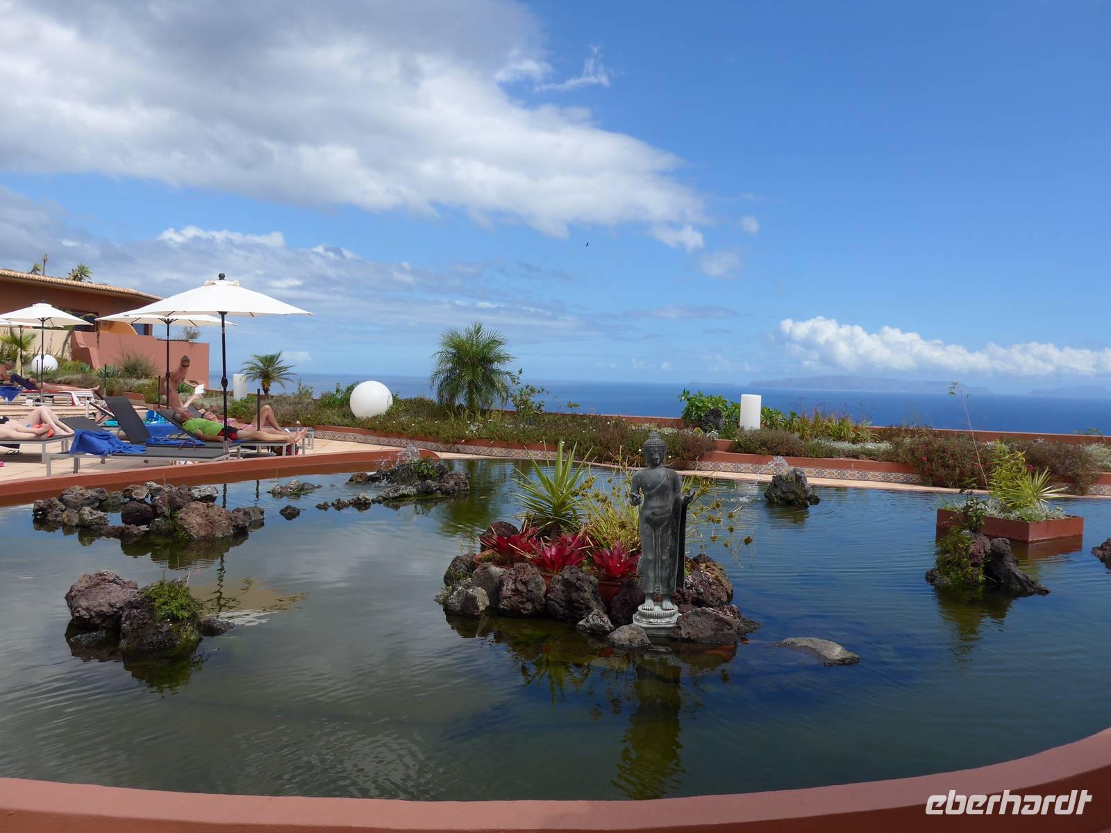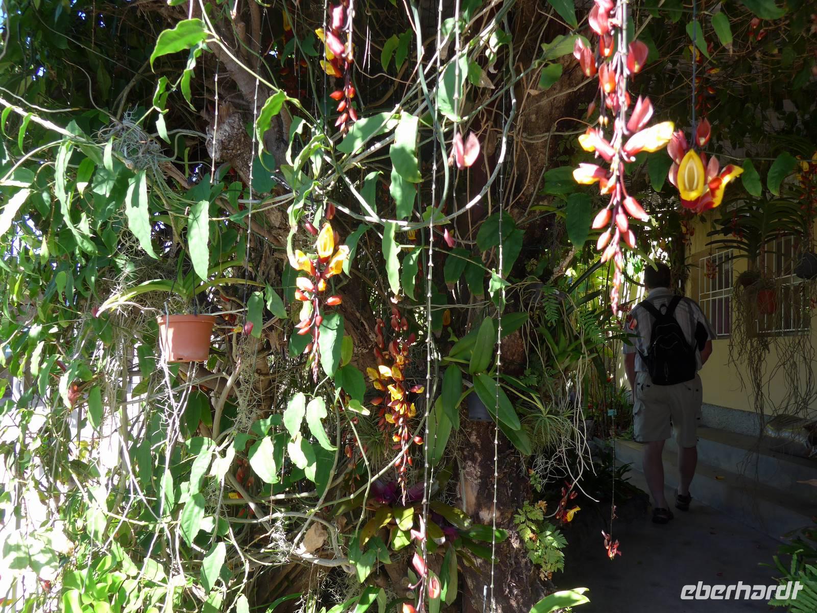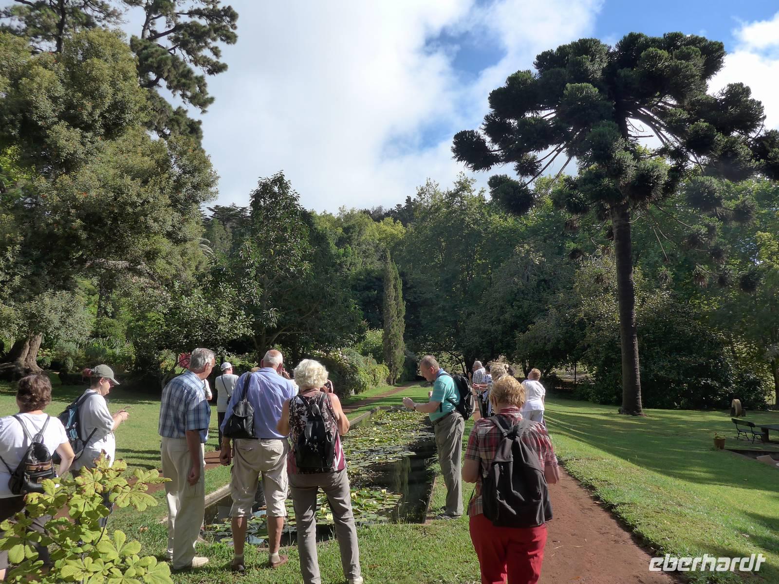 Kaum zu glauben, aber wir sind schon seit vier Tagen auf dieser atemberaubend schönen Insel unterwegs und haben bereits viele Highlights erlebt. Zum "Bergfest" warten weitere tolle Erlebnisse auf uns Heute führt uns die Reise für einen Großteil der Gäste zum fakultativen Halbtagsausflug "Gästen Madeiras" mit Palheiro Garden der englischen Familie Brandy und Orchideengarten "Jardim Orquídea" in Funchal. Zuerst besichtigen wir den überwältigenden Palheiro Gardens mit sachkundiger Führung durch unserer tolle örtliche Reiseleiterin Helena. Wir sind ganz begeistert von ihrem ausgezeichneten botanischen Fachwissen. Sie erzählt uns, dass sie zwei Semester Botanik studiert hat, sich aus persönlicher Neugier und durch ihre Mama besonders für Pflanzen, Blumen und Früchten interessiert. Das bleibt uns natürlich nicht verborgen und so ist sie wahrlich eine großartige Bereicherung auf unserer Reise. Wir sehen abermals sehr viele wunderschöne Pflanzen und Bäume. Gegründet wurde der Palheiro Garden vor circa 200 Jahren von der adligen Familie Carvalhal, welche 1801 mit der Bepflanzung begann. Der Übergang des luxuriösen Anwesens mit Garten erfolgte 1885 an die Weinhändlerfamilie Blandy. Im Garten sind mehrere Themengärten wie der Rosengarten, der Hauptgarten, der versunkene Garten und Damen-Garten mit Teehaus zu finden. Wir können Proteas (Zuckerbüsche) aus Südafrika, Magnolien, Fuchsbaum, Agaven, Aloe Vera, Kamelien und herrlich duftende Rosen betrachten und sehen Atlas-Zedern, Mammutbäume, Stinklorbeer (Ocotea foetens), Ginko, eine brasilianische Araukarie und auch einen Südinsel-Eisenholzbaum. Anschließend fahren wir zum zweiten Programmpunkt des heutigen Tages, nämlich den Orchideengarten. Wir erhalten zuerst wichtige und spannende Informationen durch Helena und schauen uns dann individuell die vielen verschiedenen Arten der Orchideen an. Nach dem Rundgang entspannen wir bei Kaffee, Tee oder hauseigene Natursäfte und Kuchen im kleinen zum Garten zugehörigen Café. Gegen 12.40 Uhr fahren wir weiter zum Hafen von Funchal. Während die meisten Gäste mit dem Bus zum Hotel zurückfährt, wollen die anderen Gäste noch ein wenig durch Funchal spazieren. Funchal bedeutet übersetzt Fenchel. Wir laufen am Hafen entlang mit Blick auf die Santa Maria zum Denkmal der Statue des Wiederentdecker Madeiras João Gonçalves Zarco in der Mitte des Stadtzentrums, vorbei an der Kathedrale Sé bis zur Talstation der nach Monte fahrenden Luftseilbahn. Natürlich schauen wir uns auch die herrlich malerisch gestalteten bunten Türen in den engen Gassen nahe der Seilbahn und Bushaltestelle an. Dann teilen wir uns auf, um individuell einen Kaffee zu trinken, noch einmal durch die Markthalle zu spazieren oder einfach nur durch die Stadt zu schlendern. Wir fahren um 15.30 Uhr mit dem dieses Mal pünktlichen Linienbus zum Hotel zurück. Eine halbe Stunde später erreichen wir unser Ziel und bis zum Abendessen entspannen wir im Hotel. Das fakultative Abendessen findet im Restaurant "Planka" in Funchal statt. Wir werden von unserem Busfahrer Roberto abgeholt und gegen 19.15 Uhr sind wir schon im Restaurant. Es ist bereits alles für uns vorbereitet, so dass wir auch gleich unser leckeres Menü mit der Wahl zwischen Espetada und Espada genießen. Die angenehme Atmosphäre und eine tolle Dachterrasse mit großartigen Blick über die Stadt laden zum Verweilen ein. Zwei Stunden später geht aber auch dieser spannende Tag auf der Blumeninsel im Atlantik zu Ende. Auf unserer Reise haben wir bereits einige großartige Erlebnisse gehabt und die Zeit vergeht wie im Fluge. Wir freuen uns auf die noch kommenden Highlights der restlichen Tage wie den Wallfahrtsort Monte und vielleicht auch eine für die Insel typische lustige Korbschlittenfahrt