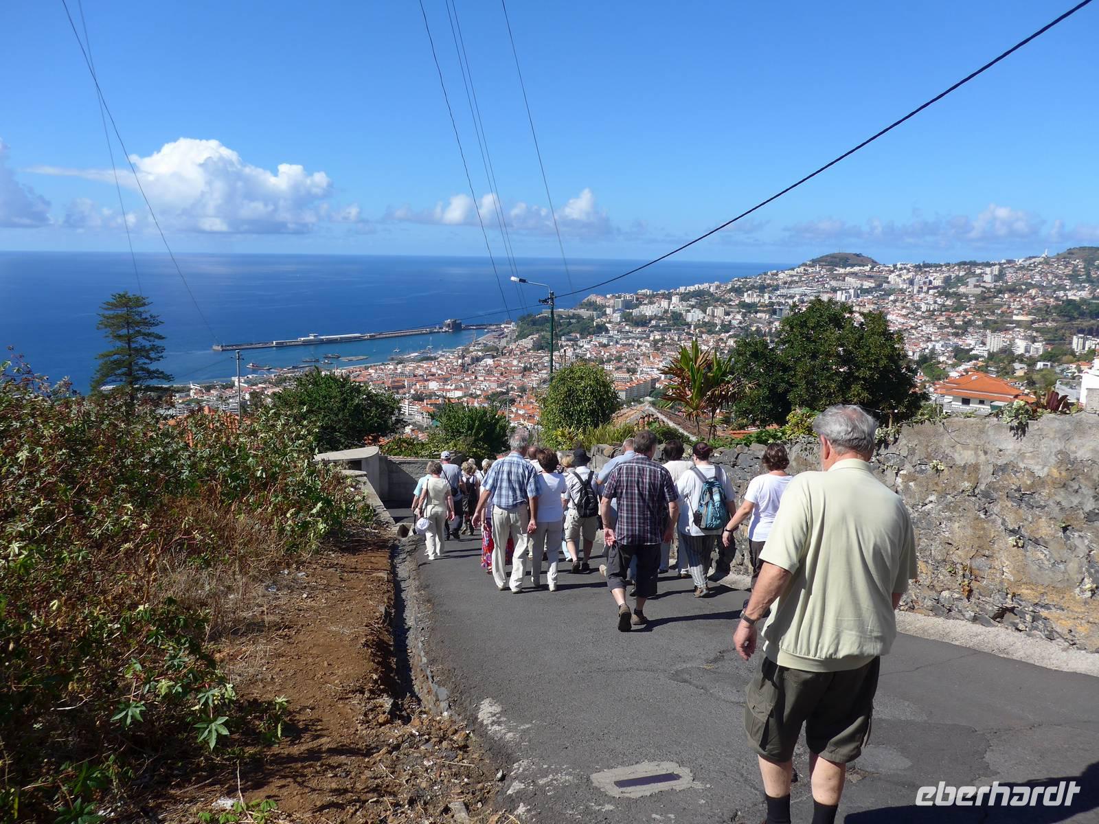 Tag 6 – Dienstag, der 09.09.2014: Von Caniço über Botanischen Garten "Jardim Botânico" in Funchal, Wallfahrtskirche und Korbschlittenfahrt in Monte, Eira do Serrado, Pico dos Barcelos, Kräutergarten "A Quintinha das ervas aromáticas" zurück nach Caniço (circa 59,8 Kilometer)