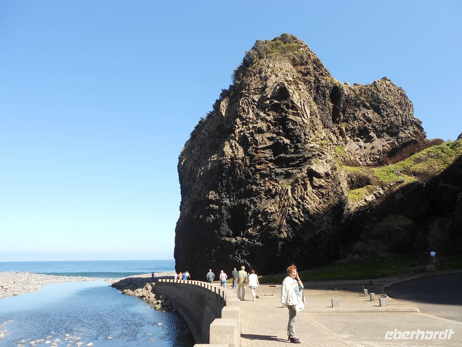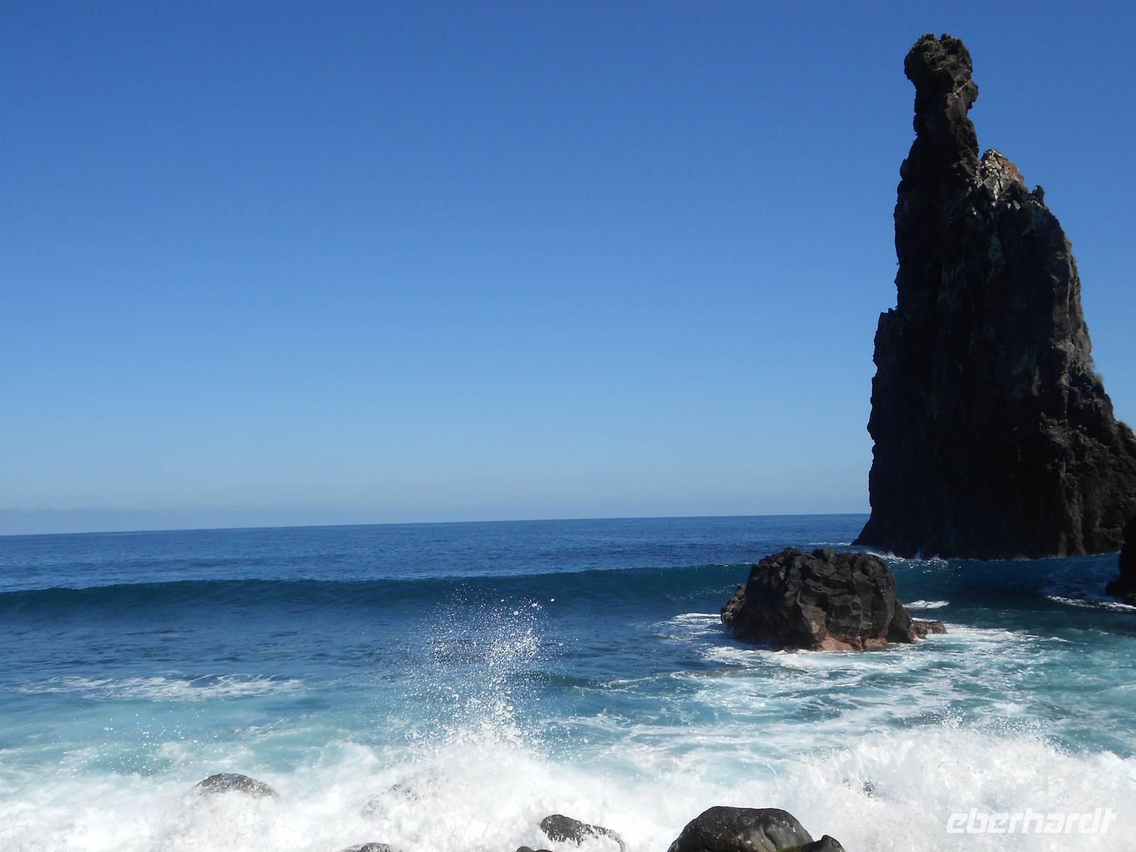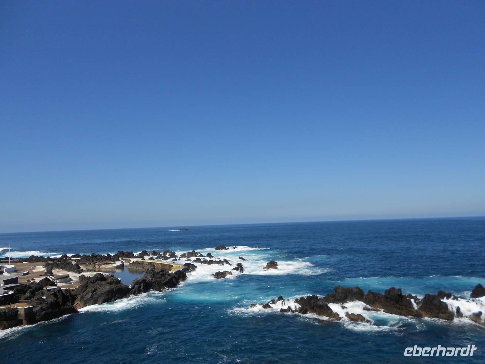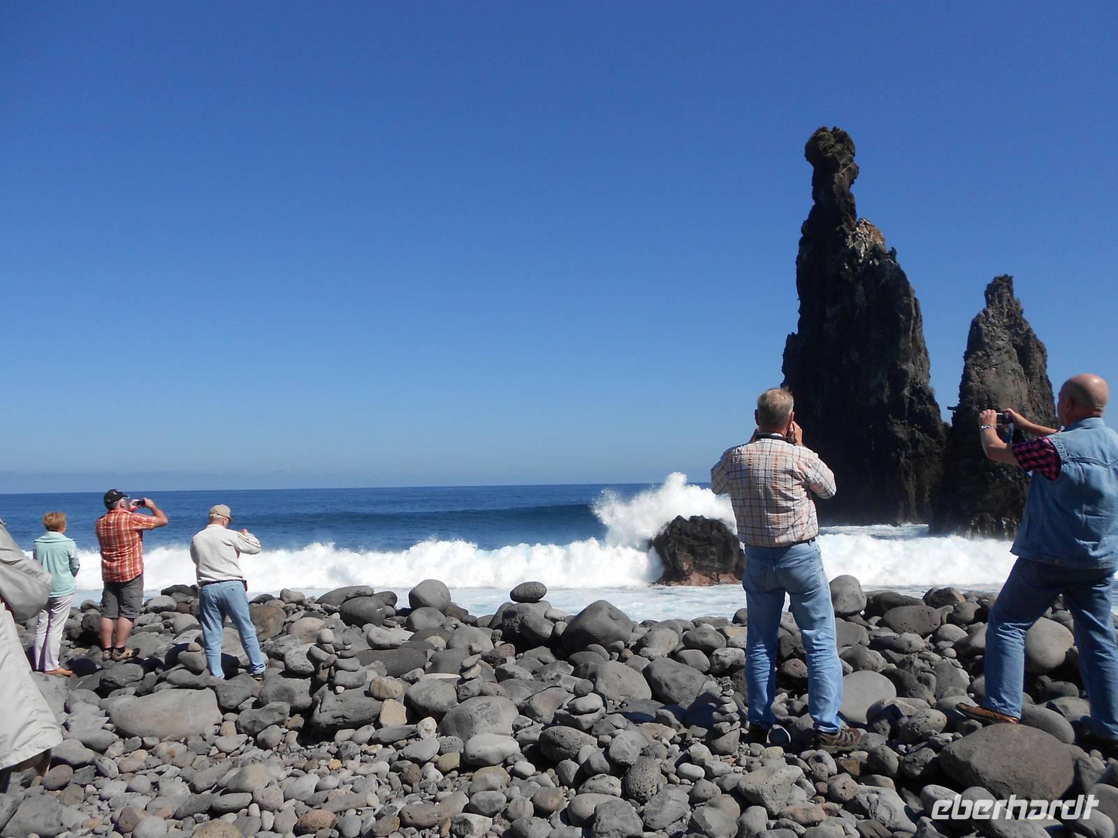 Unser letzter Tag auf Madeira führt uns in den rauen Westen. Wir fahren an der Südküste entlang und dann Richtung Norden. In Ribeira Brava am Meer legen wir einen Stopp ein, wo wir am Wasser schlendern können, Souvenirs kaufen oder die kleine Kirche besichtigen. Vorbei an Ponta do Sol geht die Fahrt über die 60 Jahre alte Küstenstraße. Ein kleiner Wasserfall verschafft unserem Bus eine Dusche und wir fahren durch Tunnel, die wie frisch in den Stein gehauen wirken. In Madalena do Mar, einem alten Fischerdorf, sehen wir die schwarzen Sandstrände Madeiras. Anschließend gelangen wir zur Paúl da Serra, der höchsten Hochebene der Insel. Hier oben ist die Landschaft wieder vollkommen verändert: Heideland, karge Felsen, Moose und Flechten herrschen vor uns verleihen dem Land einen besonderen Charme. Die Hochebene verlassend fahren wir wieder bergab und weiter nach Ribeira da Janela, ein Ort am Atlantik, dessen Fensterfelsen in der Brandung die hohen Wellen empfängt. Andächtig stehen wir am Kieselstrand und lassen den Blick auf das Wasser und die Wellen ruhen, die am Felsen aufschlagen. Mal wieder ist der Wettergott gnädig und präsentiert das schönste Blau. Weiter nach Norden fahren wir nach Porto Moniz, einem bedeutenden Fischerort, wo wir eine Mittagspause einlegen. Berühmt sind hier die Meeresschwimmbecken, die im Sommer von Badefreunden großen Zulauf genießen. Die zerklüfteten Felsen, die Brandung und der raue Charme stehen im vollkommenen Gegensatz zu dem, was wir in den letzten Tagen von Madeira gesehen haben. Am Nachmittag treten wir die Rückfahrt an, fahren über Seixal und Sao Vicente, wo wir die Nordküste verlassen und über die Mitte der Insel wieder in den Südosten nach Canico fahren. Dieser Ausflug als krönender Abschluss der Reise hat in jedem Fall Eindruck hinterlassen. Den Abend verbringen wir erneut im Restaurant A Lareira und im Anschluss besuchen einige Gäste einen Fado-Abend im Hotel mit der ganz besonderen Musik der portugiesischen Mentalität. Mit einem Rückblick auf die vergangenen Tage verabschieden wir uns in die letzte Nacht auf Madeira.