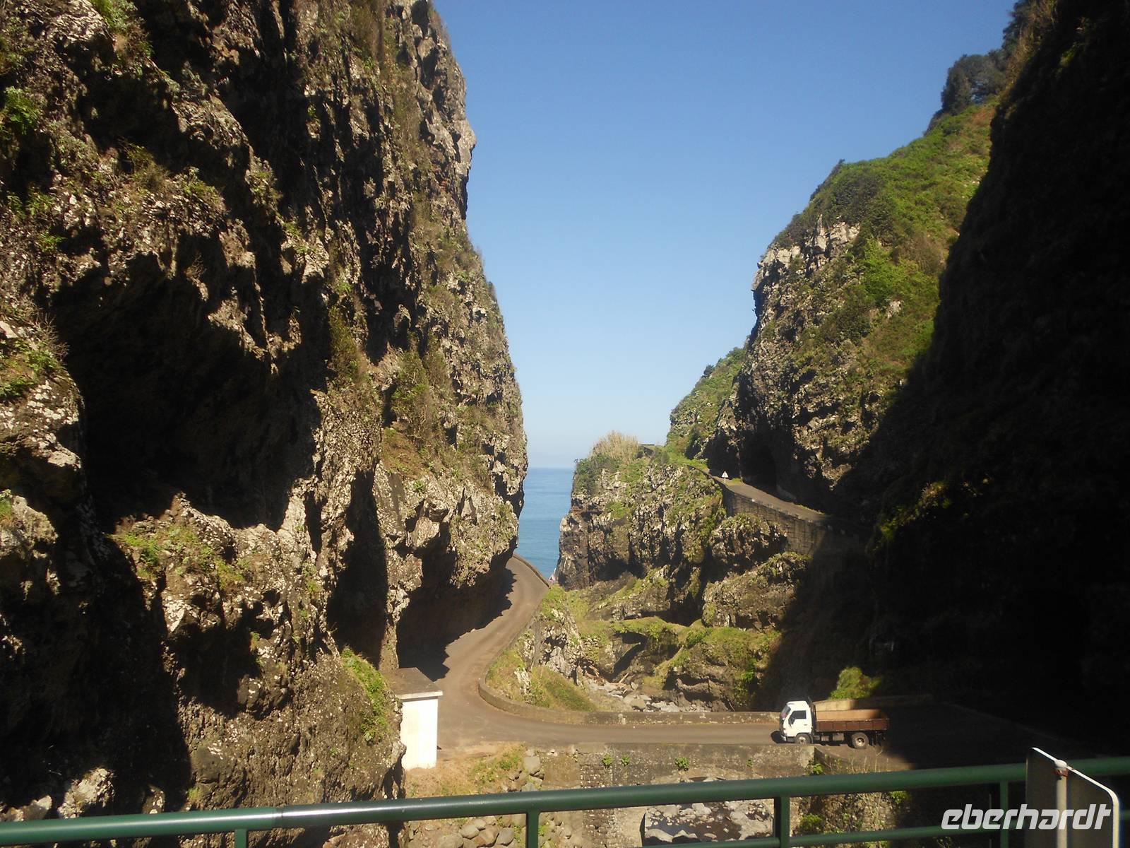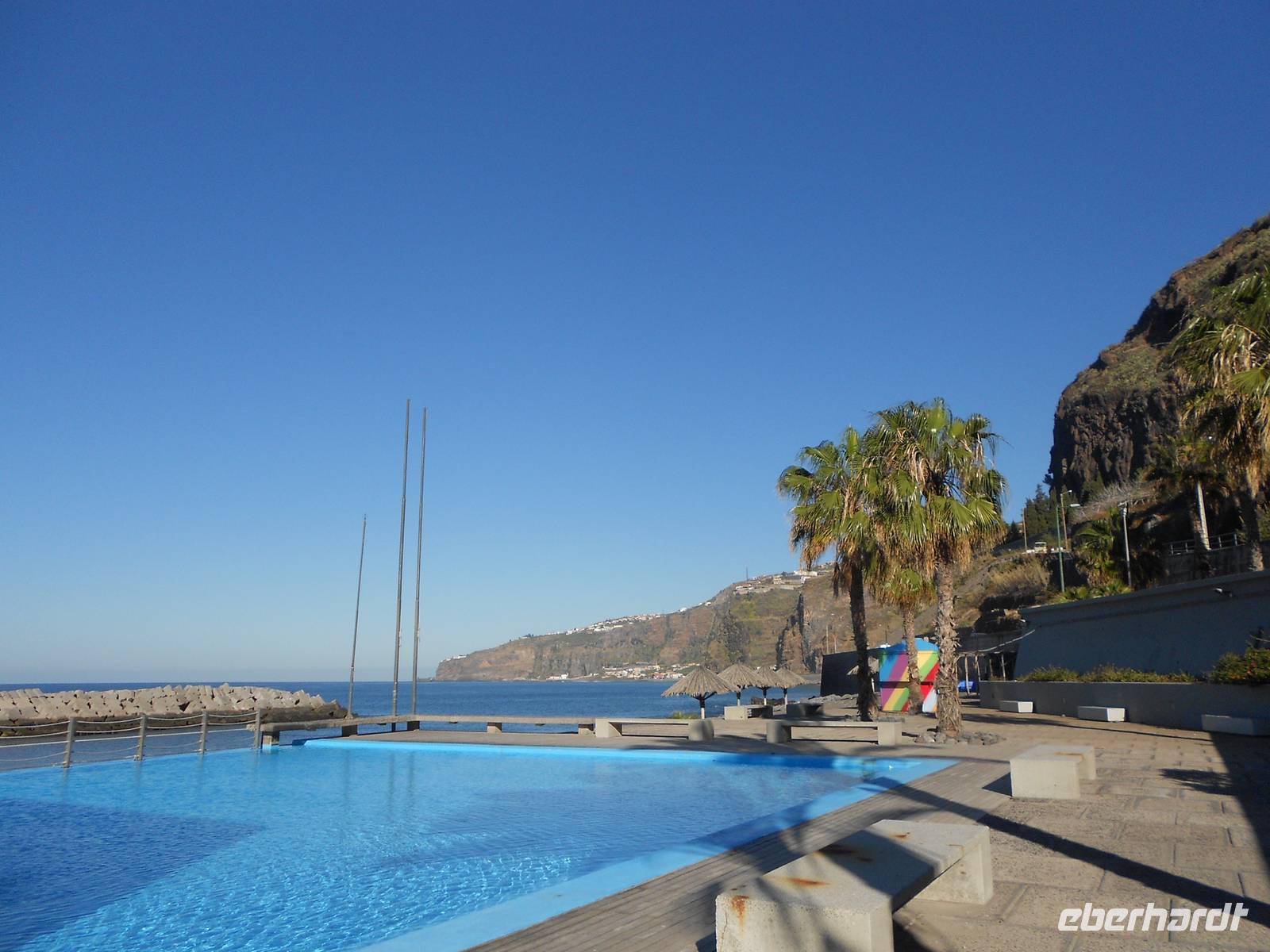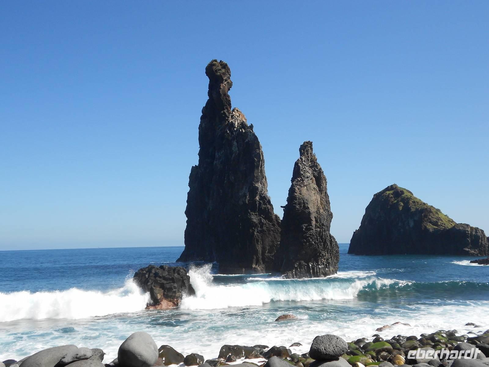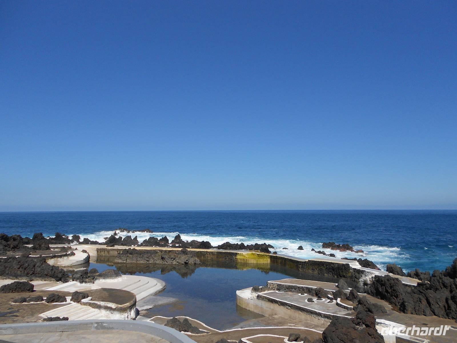 Unser letzter Tag auf Madeira führt uns in den rauen Westen. Wir fahren an der Südküste entlang und dann Richtung Norden. In Ribeira Brava am Meer legen wir einen Stopp ein, wo wir am Wasser schlendern können, Souvenirs kaufen oder die kleine Kirche besichtigen. Vorbei an Ponta do Sol geht die Fahrt über die 60 Jahre alte Küstenstraße. Ein kleiner Wasserfall verschafft unserem Bus eine Dusche und wir fahren durch Tunnel, die wie frisch in den Stein gehauen wirken. In Madalena do Mar, einem alten Fischerdorf, sehen wir die schwarzen Sandstrände Madeiras. Anschließend gelangen wir zur Paúl da Serra, der höchsten Hochebene der Insel. Hier oben ist die Landschaft wieder vollkommen verändert: Heideland, karge Felsen, Moose und Flechten herrschen vor uns verleihen dem Land einen besonderen Charme. Die Hochebene verlassend fahren wir wieder bergab und weiter nach Ribeira da Janela, ein Ort am Atlantik, dessen Fensterfelsen in der Brandung die hohen Wellen empfängt. Andächtig stehen wir am Kieselstrand und lassen den Blick auf das Wasser und die Wellen ruhen, die am Felsen aufschlagen. Mal wieder ist der Wettergott gnädig und präsentiert das schönste Blau. Weiter nach Norden fahren wir nach Porto Moniz, einem bedeutenden Fischerort, wo wir eine Mittagspause einlegen. Berühmt sind hier die Meeresschwimmbecken, die im Sommer von Badefreunden großen Zulauf genießen. Die zerklüfteten Felsen, die Brandung und der raue Charme stehen im vollkommenen Gegensatz zu dem, was wir in den letzten Tagen von Madeira gesehen haben. Am Nachmittag treten wir die Rückfahrt an, fahren über Seixal und Sao Vicente, wo wir die Nordküste verlassen und über die Mitte der Insel wieder in den Südosten nach Canico fahren. Dieser Ausflug als krönender Abschluss der Reise hat in jedem Fall Eindruck hinterlassen. Den Abend verbringen wir erneut im Restaurant A Lareira und im Anschluss besuchen einige Gäste einen Fado-Abend im Hotel mit der ganz besonderen Musik der portugiesischen Mentalität. Mit einem Rückblick auf die vergangenen Tage verabschieden wir uns in die letzte Nacht auf Madeira.