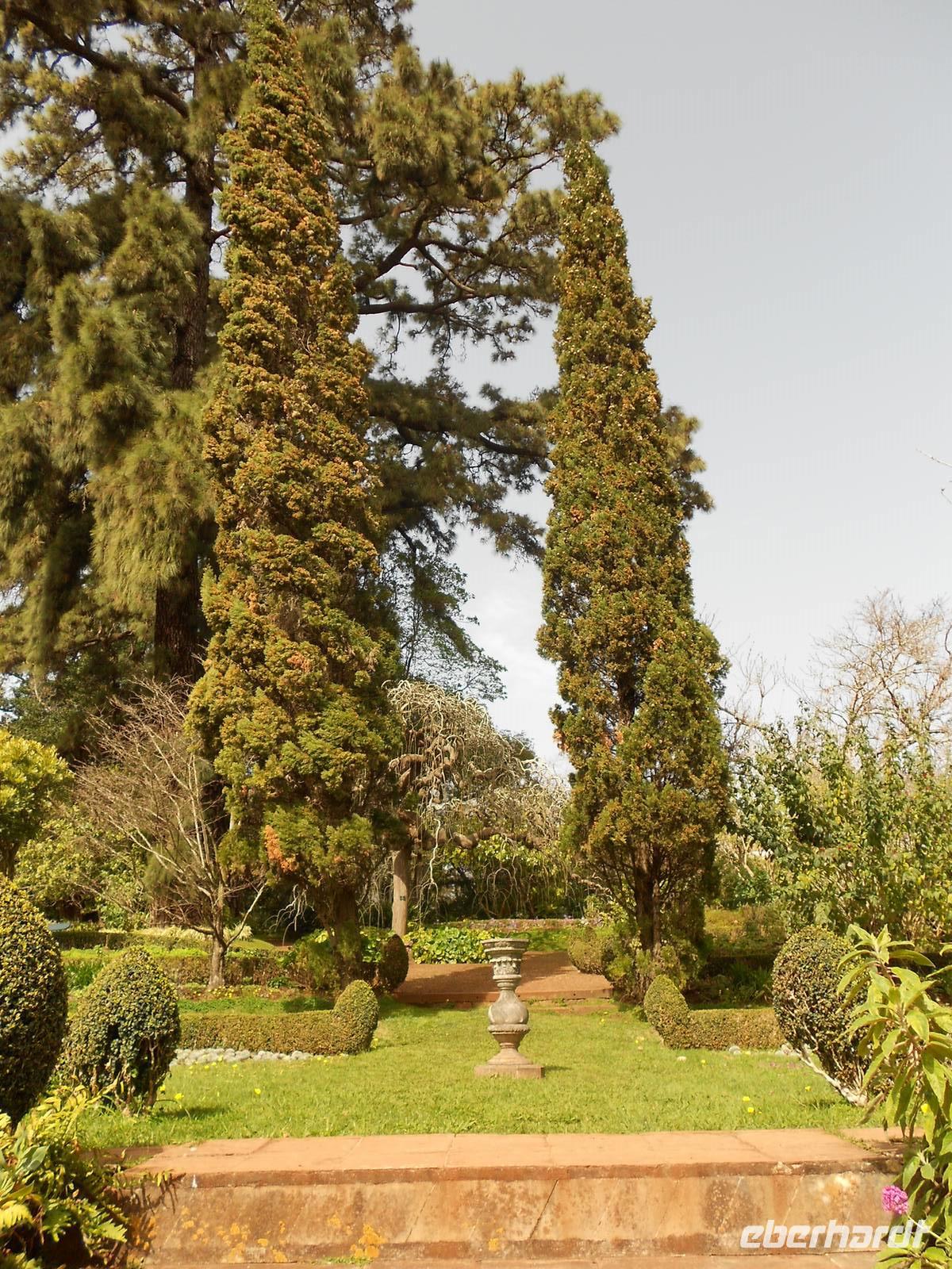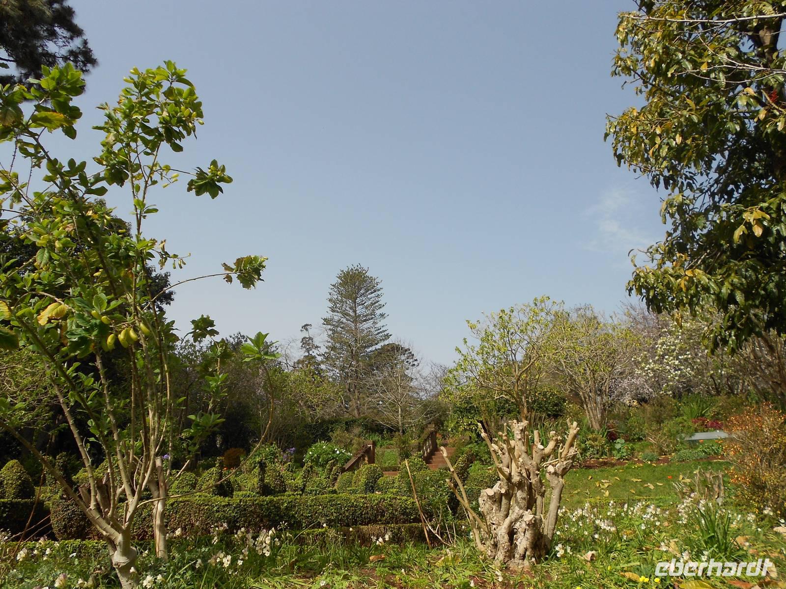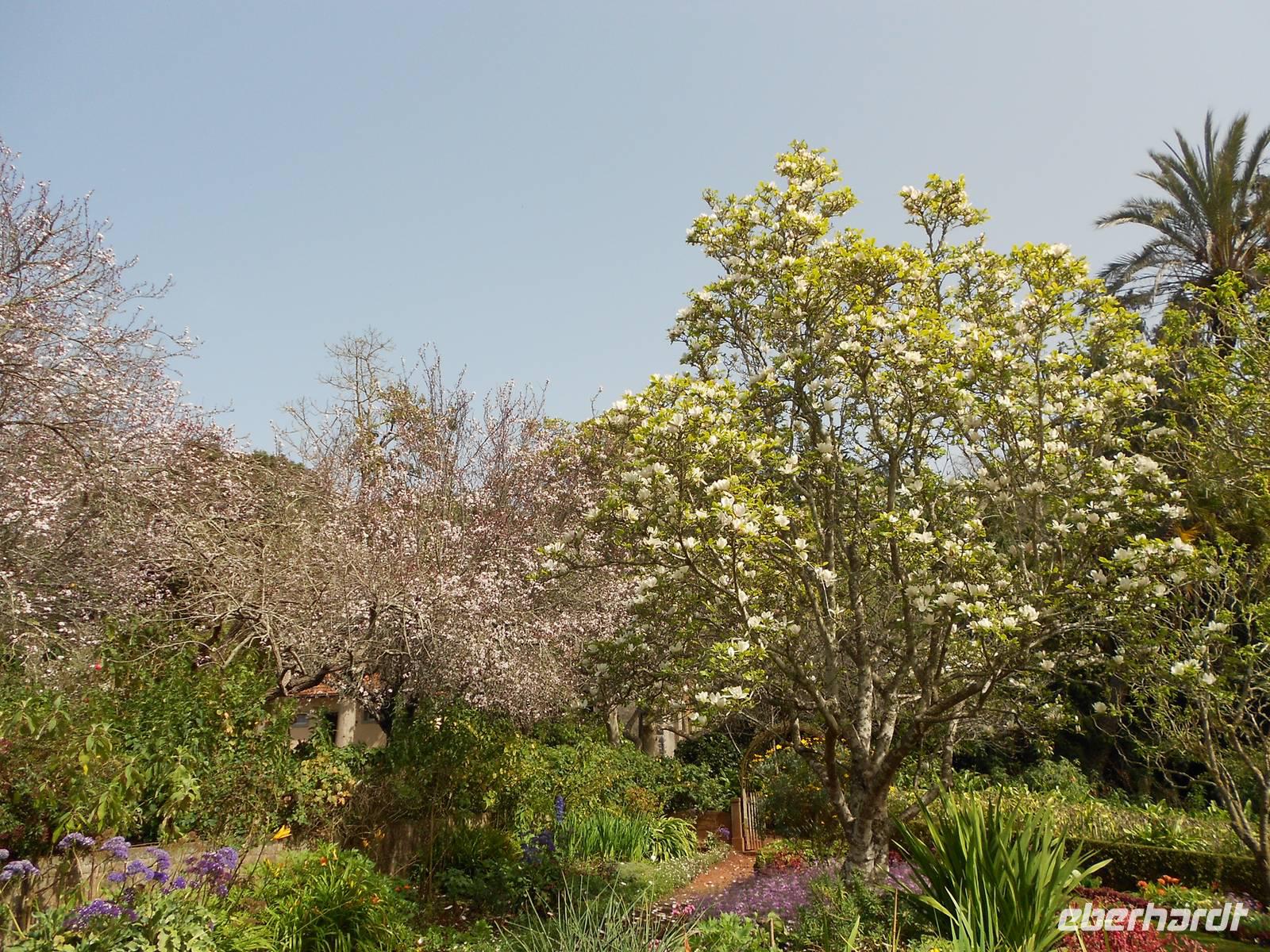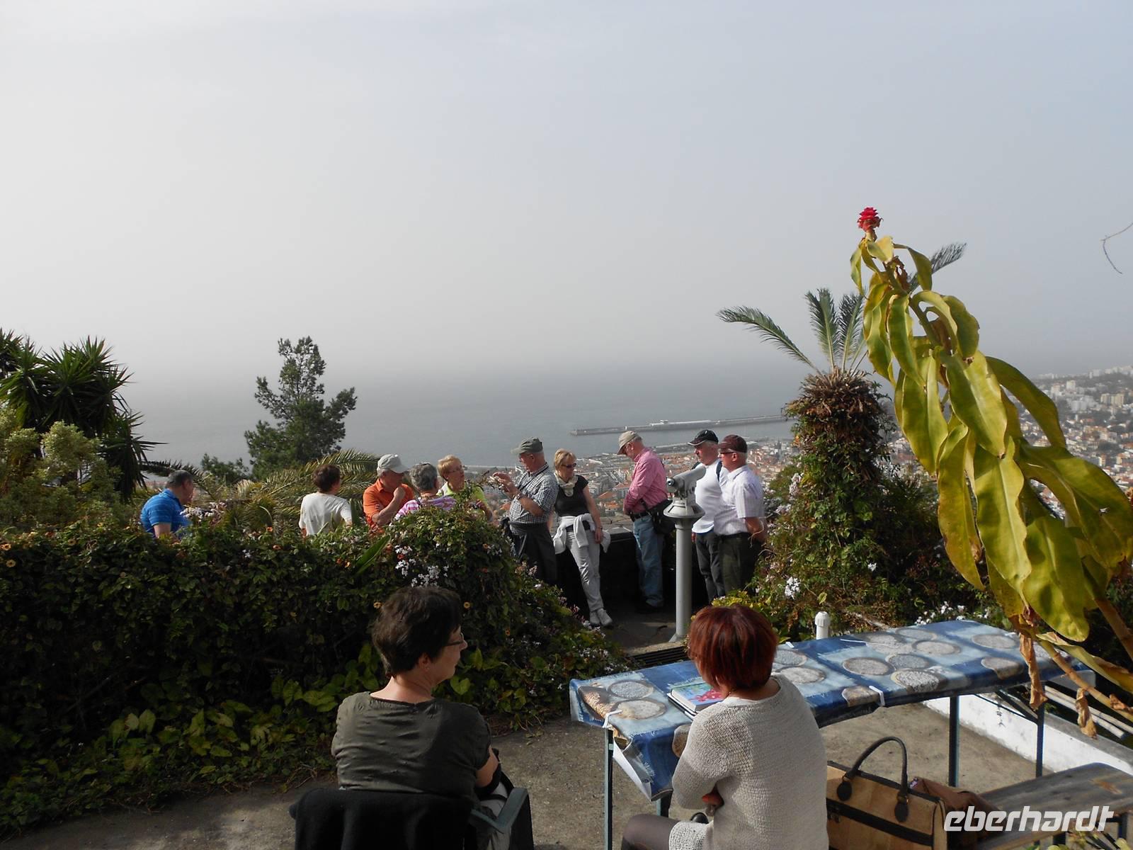 Heute fahren wir Richtung Westen, wo wir Blandy´s Garten und den Orchideengarten erkunden möchten. Das Wetter ist heute recht seltsam, es ist sehr warm und fast stickig, der Horizont verschwimmt vor unseren Augen. Fátima erklärt uns, dass dies von einem Sandsturm aus Südafrika herrühre. Im Orchideengarten angekommen werden wir von der Besitzerin, einer gebürtigen Österreicherin, in freundlichen Empfang genommen. Sie erklärt uns vieles über die Zucht der Blumen, die Pflege und die Vielfalt. Im Anschluss wandeln wir in aller Ruhe durch ihre Ausstellung und bewundern die Schönheit der Orchideen. Mit diesen Eindrücken fahren wir weiter in den Garten der englischen Familie Blandy, die in einem Herrenhaus inmitten einer herrlichen Anlage wohnt und Besuchern den Zugang zum Garten ermöglicht. Bei einem gemütlichen Spaziergang staunen wir über die Farbenpracht der Kamelien, der Magnolien und der Rhododendren, von deren Blüte wir bei uns zu Hause bisher nur träumen können. Ein Stopp am kleinen Teehaus dient der Stärkung, bevor jeder den Rundgang individuell fortsetzt und sich von den Kalla-Blüten, die wie Unkraut am Wegesrand wachsen, verzaubern lässt. Einige Gäste äußern den Wunsch, sich die in der Nähe von Canico befindliche Statue Christo Rei anzusehen. Fátima schlägt uns vor, uns mit dem Bus hinzufahren, den Weg zurück aber zu Fuß anzutreten. Die 18 m hohe Statue von 1927 ist angelehnt an die Statue von Brasilien und von der Plattform aus bietet sich ein unvergesslicher Blick auf den Atlantik. Wir setzen unsere Rückkehr über die engen und steilen Straßen fort und sind doch ziemlich erschöpft nach unserer Wanderung in der madeirischen Sonne. Am Abend erwartet uns dann ein weiteres Highlight: ein Abendessen über den Dächern von Funchal. Unser Bus fährt uns auf einen hohen Berg ins das Restaurant, dessen Terrasse einen Blick über das nächtlich beleuchtetet Funchal bietet. Diesen Anblick werden wir wohl alle nicht so schnell vergessen.