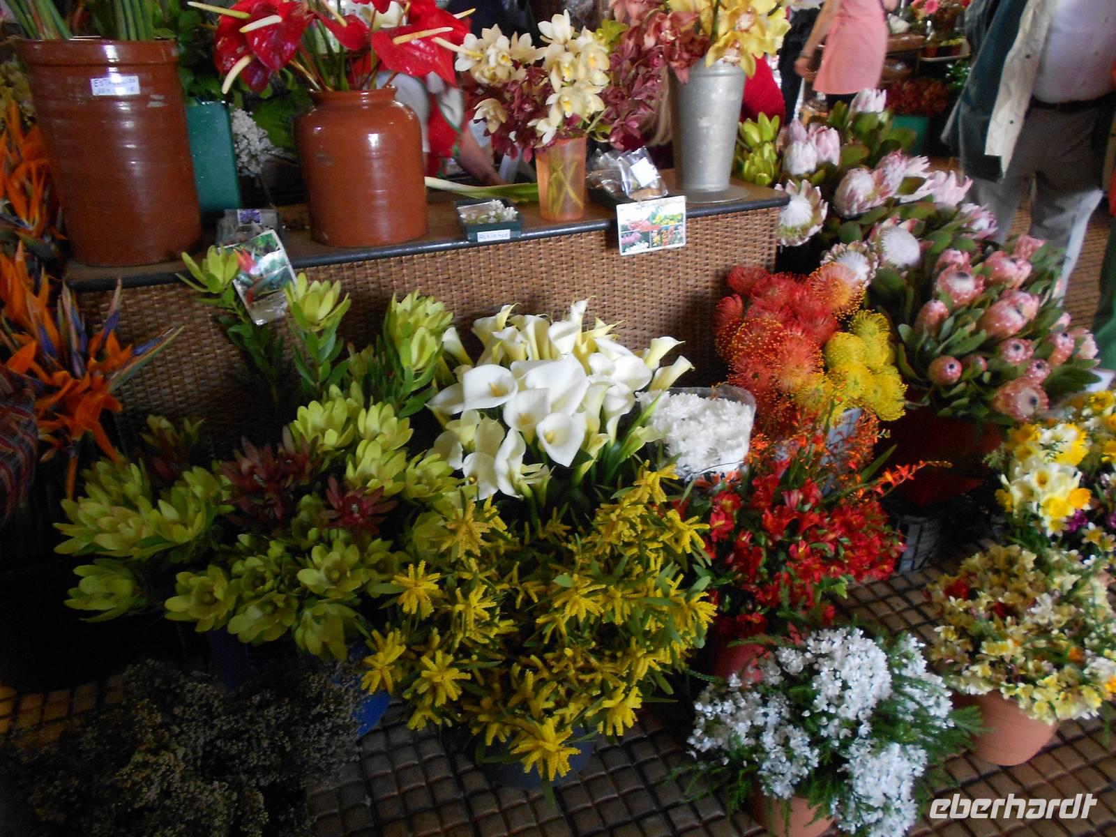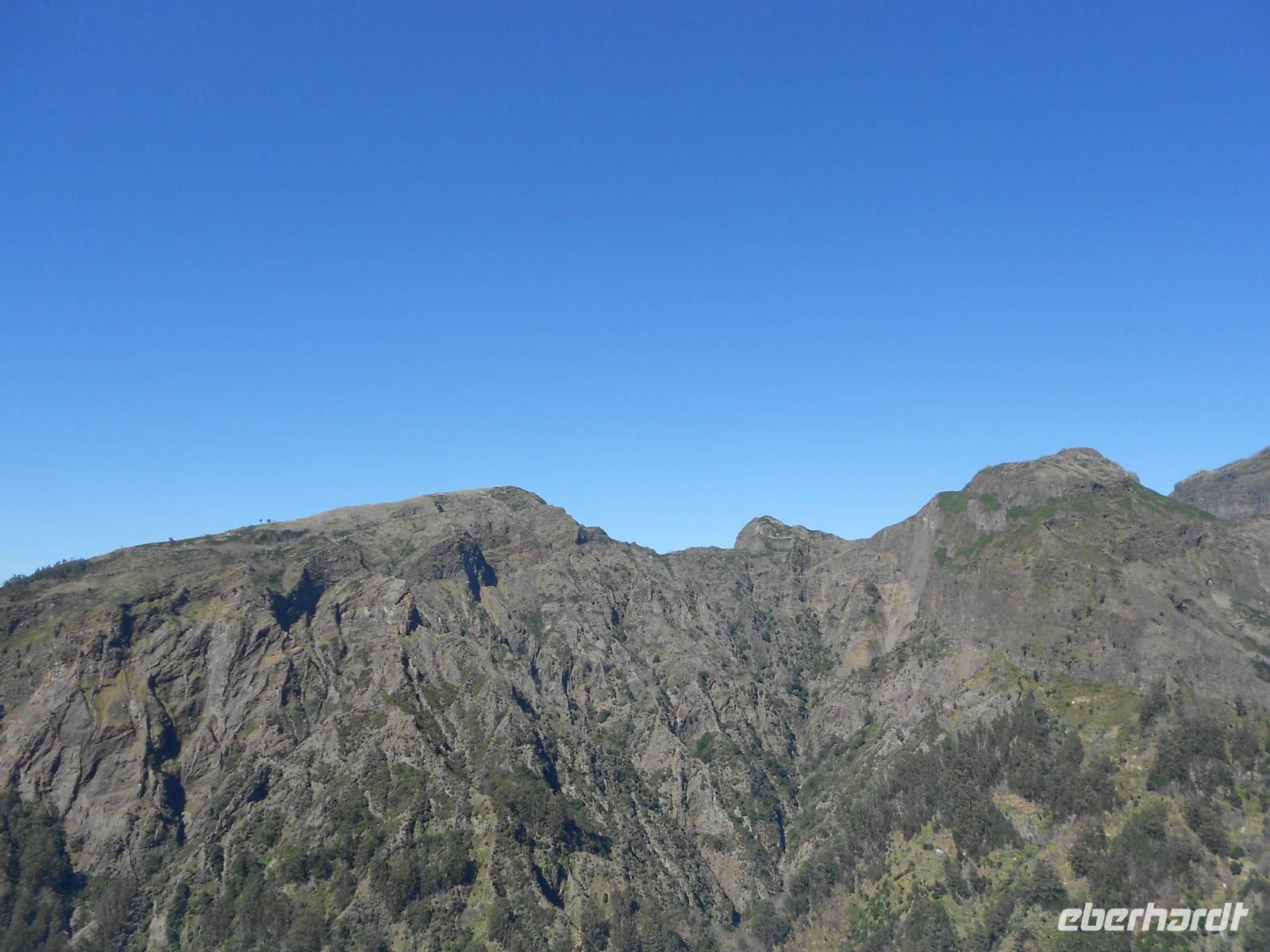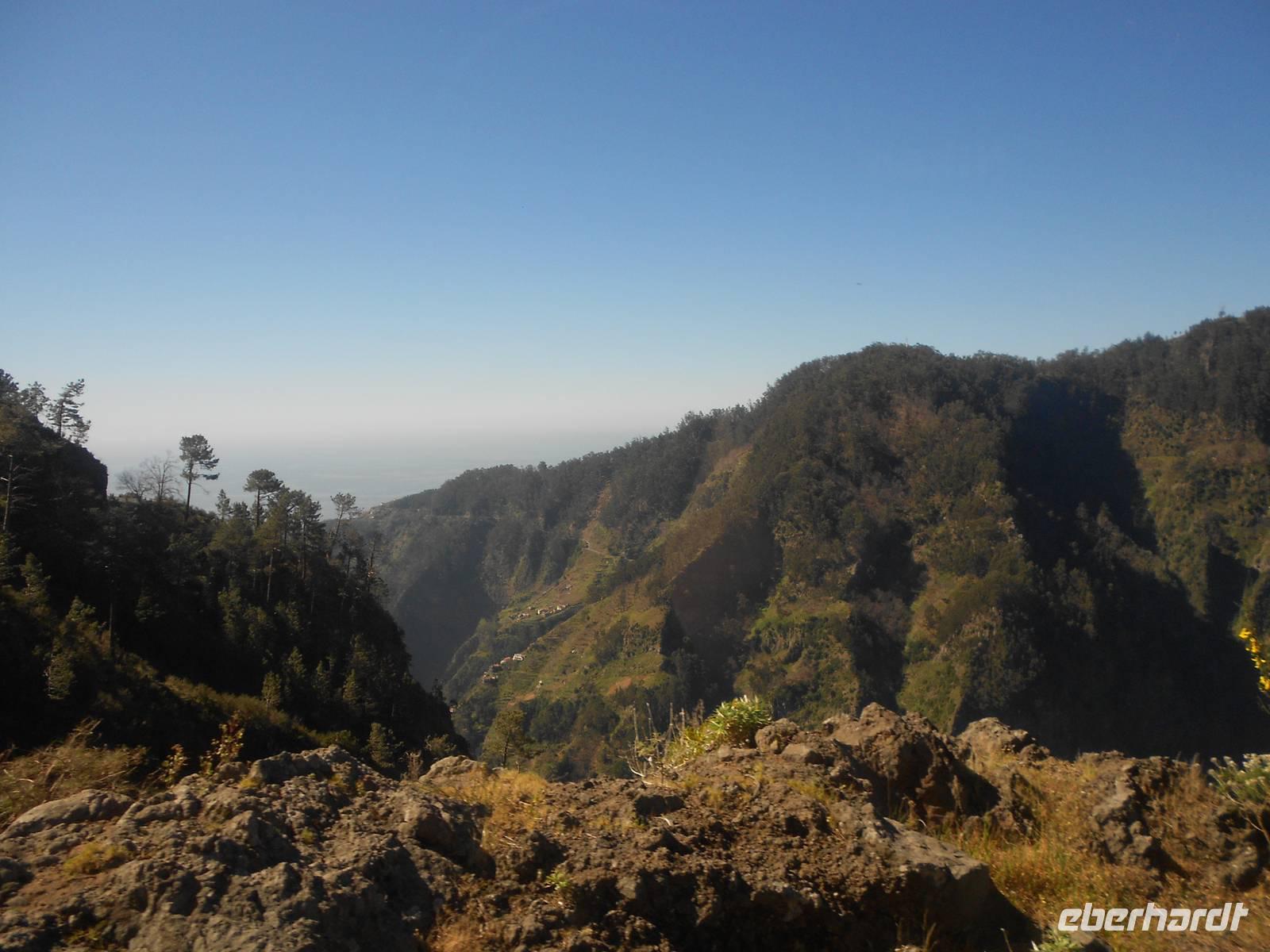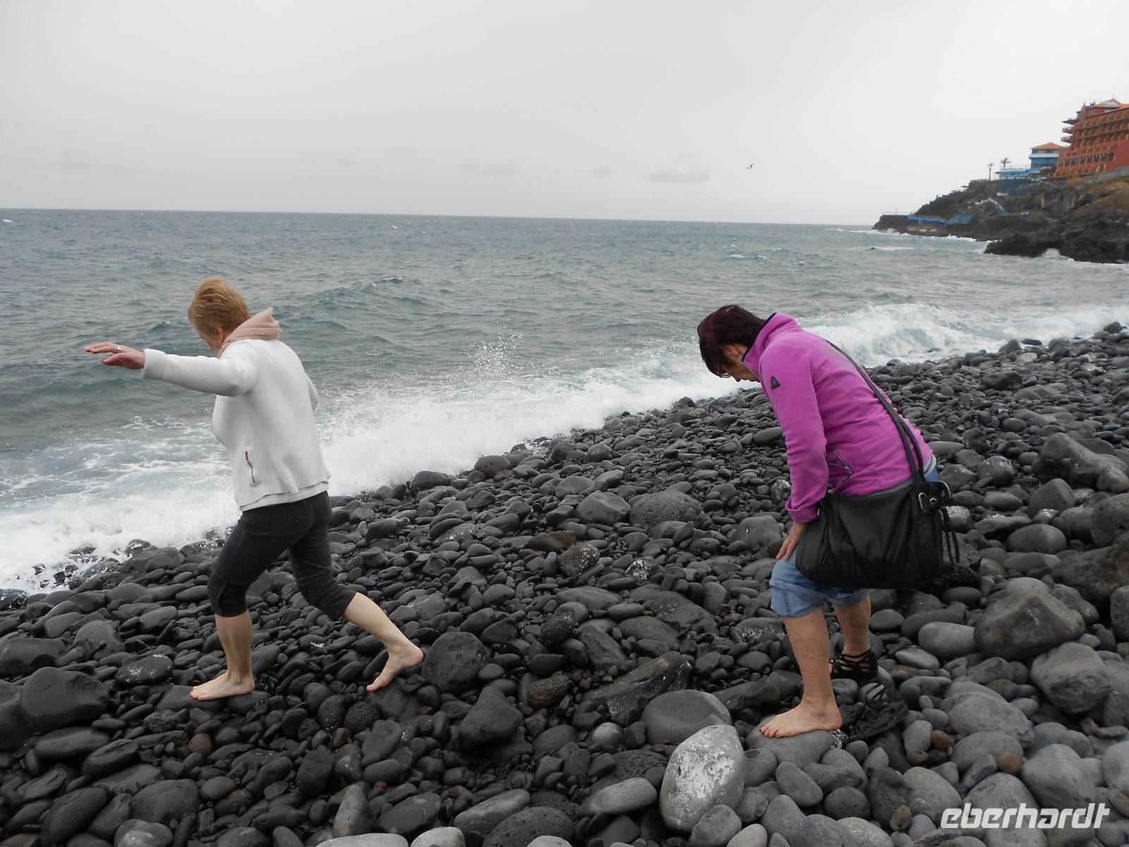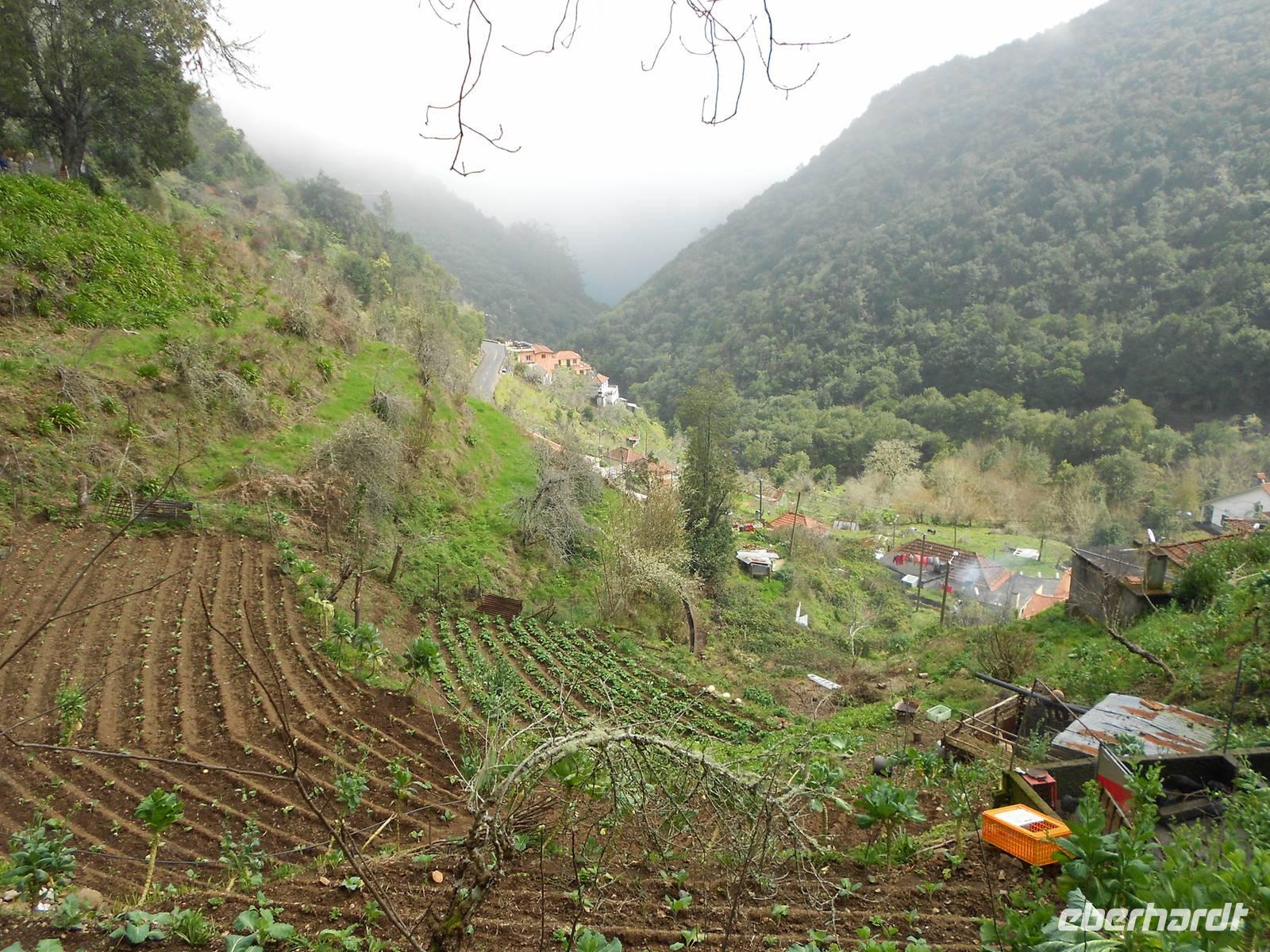 Nach einem ausgiebigen Frühstück und einem spektakulären Sonnenaufgang holt uns Fátima um 09:00 Uhr am Hotel ab und mit unserem Busfahrer Albano, der uns diese Woche begleiten wird, fahren wir nach Camacha in eine Korbflechterei. Hier gibt es Körbe in allen Formen, Farben und Größen. Besonders beeindruckend sind die geflochtenen Tiere und das Modell des Schiffes, mit dem Madeira im 15. Jahrhundert von portugiesischen Seefahrern eingenommen wurde. Im Keller können wir den Korbflechtern bei der Arbeit zusehen. Wir fahren im Anschluss weiter durch das Paradiestal: Unmengen von Hortensien, Azaleen, Akazien, Pinien, Kamelien, Eukalyptus, Heidelbeeren und vieles mehr verwöhnen unsere Augen und lassen uns über die Größe der Pflanzen staunen. Die Fahrt führt uns bis zum dritthöchsten Berg Madeiras, dem Pico do Arieiro. Mit 1412 m über dem Meeresspiegel genießen wir den Blick auf die Wolken unter uns und die karge Landschaft des Gebirges, die so unterschiedlich vom Rest der Flora Madeiras ist. Danach fahren wir wieder bergab und bewundern, nicht zum letzten Mal, die Fahrtkünste unseres Fahrers Albano, der den Bus sicher durch enge Kurven und sogar vorbei an entgegenkommenden Bussen und Autos, lenkt. In Ribeiro Frio sehen wir uns die Forellenzucht an, bevor wir eine kleine Levada-Wanderung starten, die uns zum Aussichtspunkt Balcoes führt. Doch schon der Nebel auf dem Weg verrät uns, dass wir nichts sehen werden. Davon lassen wir uns die Laune jedoch nicht verderben, das gehört eben dazu. Nach der kleinen und leichten Wanderung, die uns bereits einen ersten Eindruck über die einzigartigen Levadas verschafft, fahren wir nach Santana, das für seine strohgedeckten Häuser bekannt ist. Nach einer Mittagspause mit Brot, Wein und madeirischer Tomaten- oder Weizensuppe erkundet jeder nach Belieben das kleine Dorf. Einige Gäste greifen sogleich auf dem kleinen Markt zu uns kaufen regionales Obst, wie den berühmten Zuckerapfel, Maracujas oder Erdbeeren. Die Weiterfahrt führt uns vorbei an Zuckerrohrplantagen (Fátima erzählt uns, dass auf Madeira kein Zucker mehr hergestellt wird, sondern nur noch Zuckerrohrschnaps und Zuckersirup), Bananenstauden, Papaya- und Avocadobäumen, Strelitzien und terrassenförmigen Feldern. Oberhalb von Machico machen wir eine Pause und können von hier aus die berühmte kurze Start- und Landebahn des Flughafens bewundern. Am Nachmittag treffen wir im Hotel ein, bevor wir uns zu unserem Spezialitätenessen im Café Central aufmachen, bei dem uns die bekannten und wirklich schmackhaften Espetatas serviert werden, die am Tisch erst von den Spießen auf den Teller gebracht werden. Dazu gibt es Salat, frittieren Mais und als Dessert gegrillte Ananas. Besonders anrührend an diesem Abend ist eine große einheimische Familie am Nebentisch, die ihre Großmutter mit einem lauten Geburtstagsständchen und herzlichen Umarmungen zu Tränen rührt.