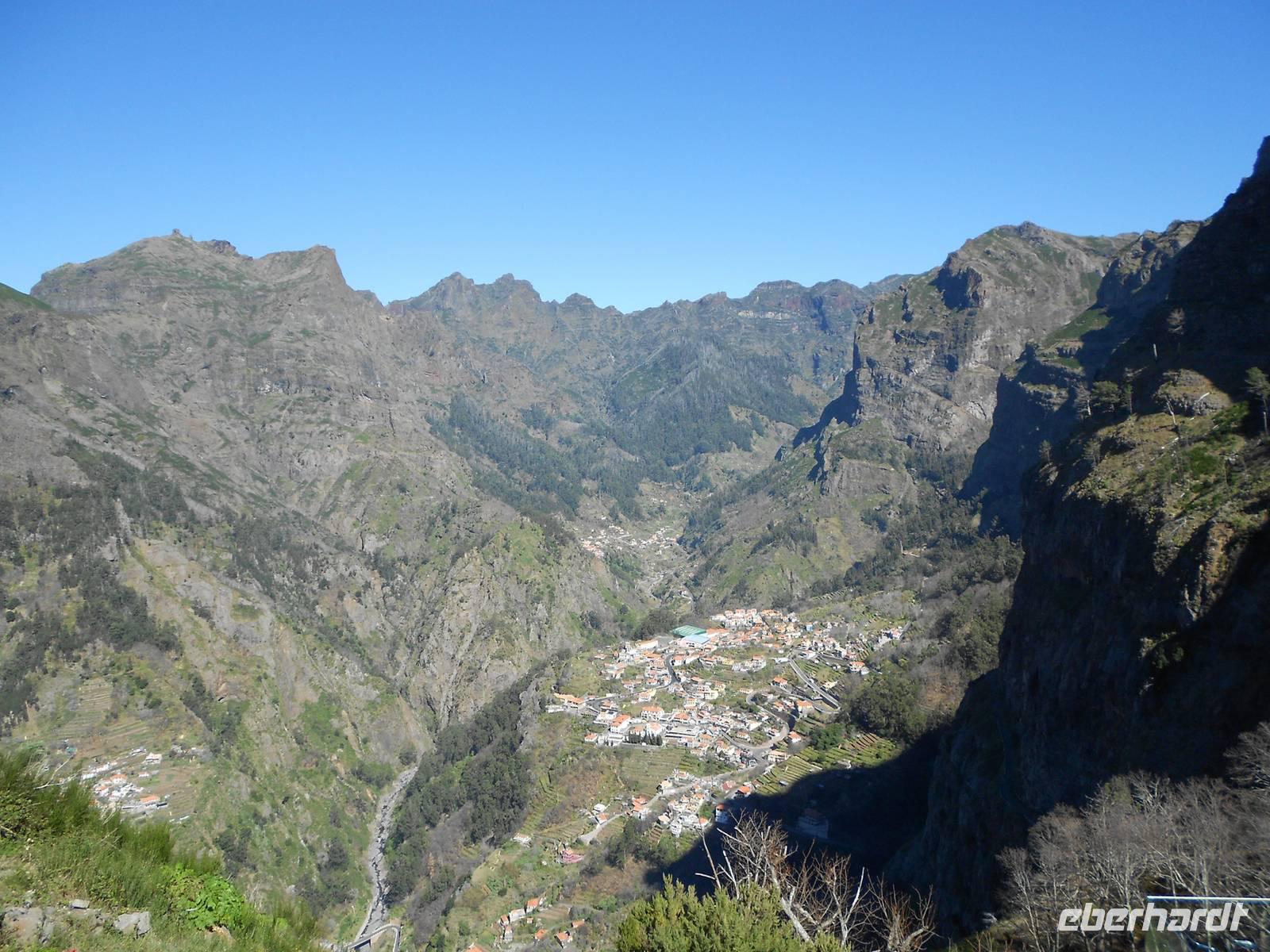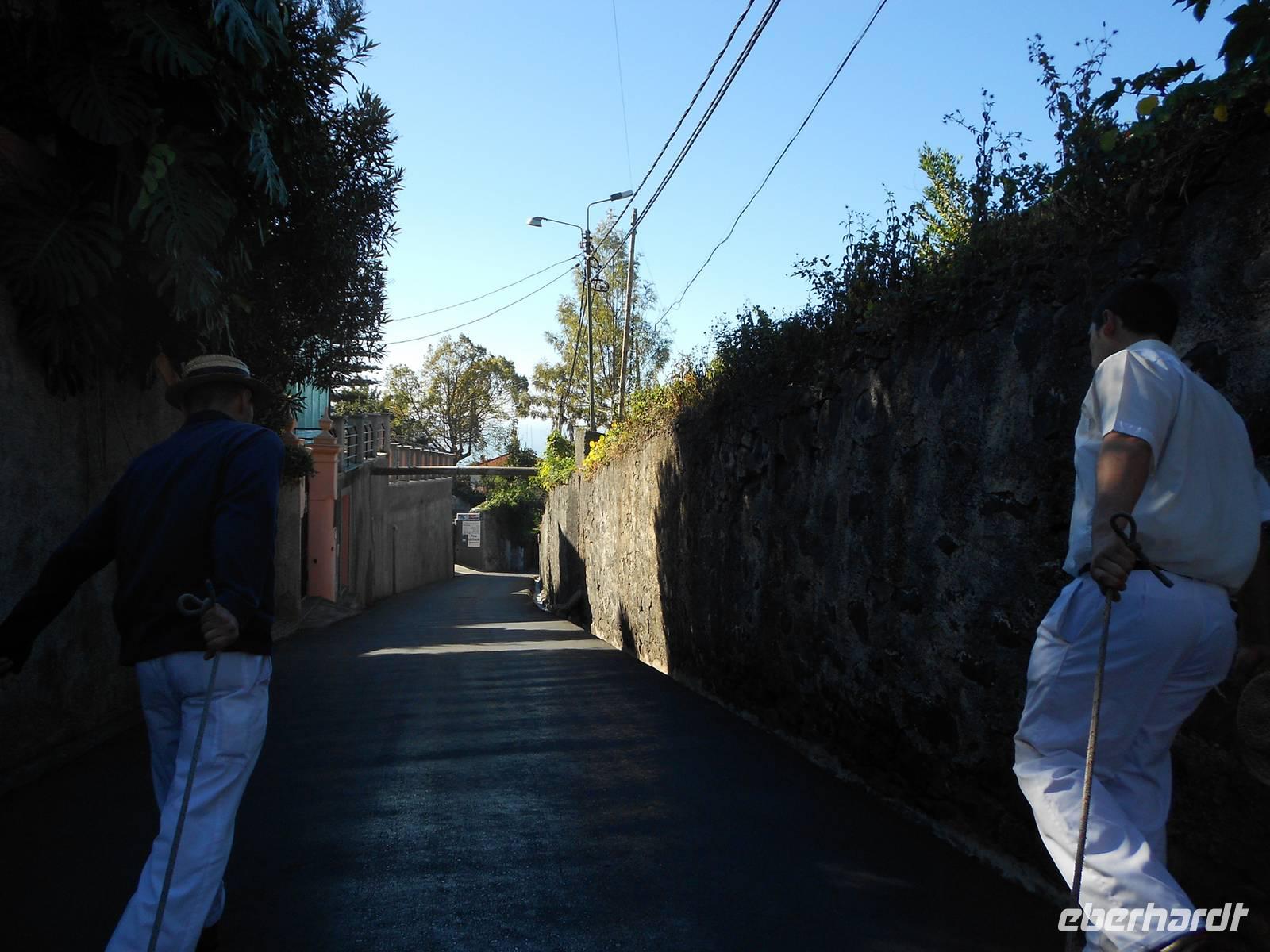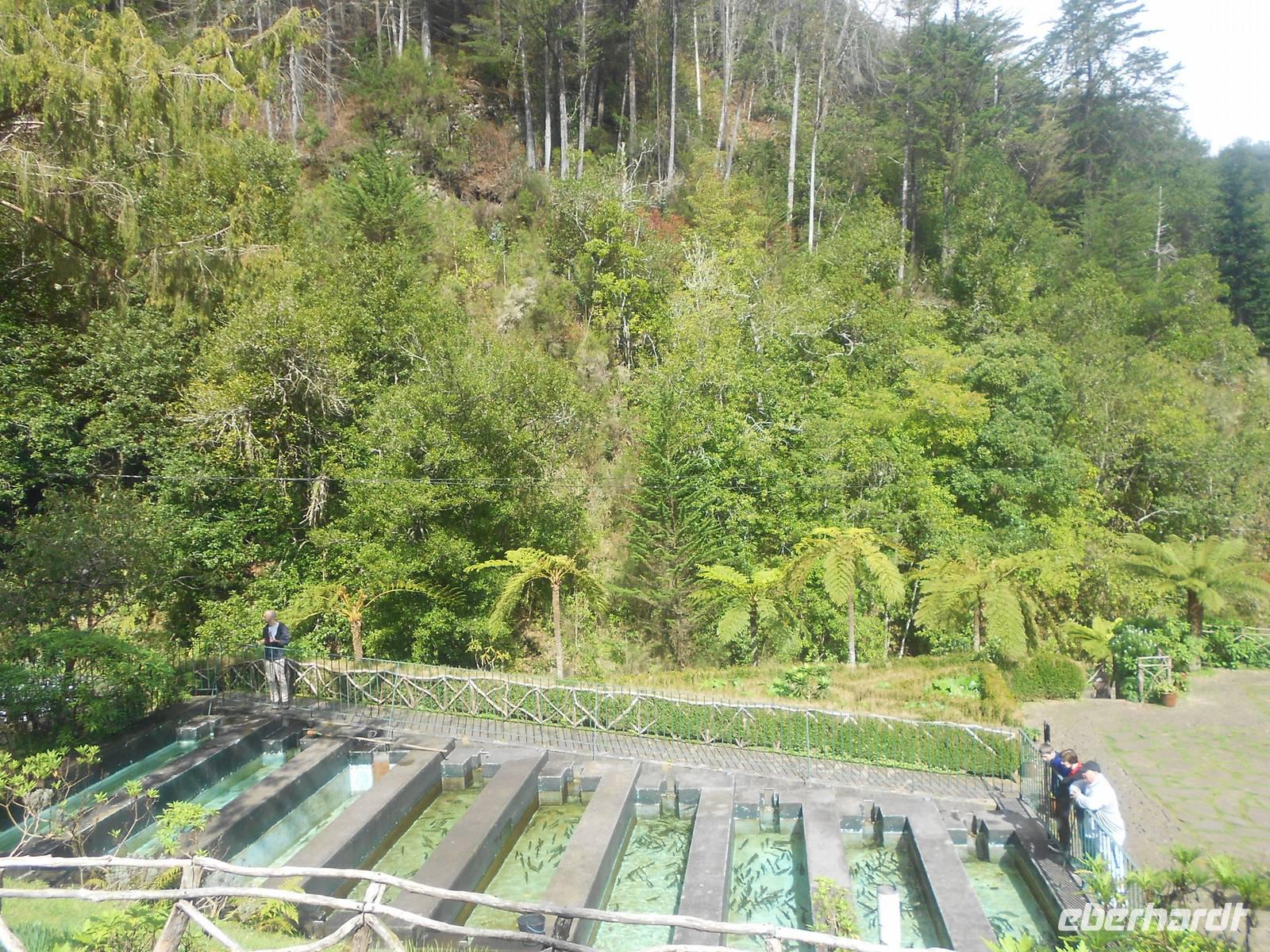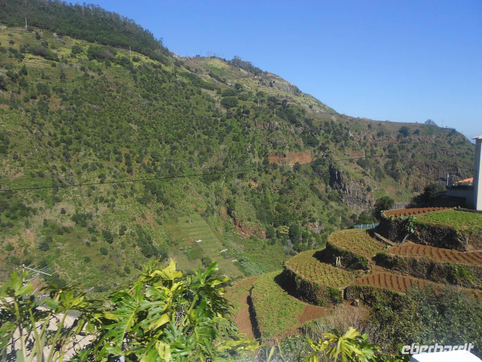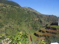 Ein Ausflug führt uns heute nach Monte, einem bedeutenden Wallfahrtsort auf Madeira. In 500 m Höhe erhebt sich die kleine Kirche, die einen tollen Ausblick auf Funchal bietet. In dieser Kirche liegt zudem der letzte österreichische Kaiser Karl I begraben, der recht jung im Exil auf Madeira starb. Von hier aus fahren auch die berühmten Korbschlitten hinunter ins Tal, eine Attraktion, die man sich nicht entgehen lassen sollte. Zwei Männer in weiter Tracht und mit Hüten lenken den Schlitten, in dem eine, zwei oder drei Personen Platz haben. Die Fahrt ist recht rasant, jedoch ungefährlich und im Fahrtwind genießt man das Gleiten ins Tal. Einige unserer Gäste trauen sich dieses Abenteuer zu und bereuen diesen Spaß keinesfalls. Im Anschluss fahren wir weiter zum Pico do Serrado, einer Erhöhung (1094 m), die den Blick ins Nonnental bietet, das Curral das Freiras. Nur knapp 1000 Leute bewohnen dieses Dorf, das vor allem von Viehzucht, Ackerbau und Tourismus lebt. Es ist zudem das einzige Dorf auf Madeira, von dem aus das Meer nicht gesehen wird. Hier findet jedes Jahr zum 1. November das Kastanienfest statt, bei welchem Esskastanien in allen Formen der Verarbeitung gefeiert werden, wie Schnaps und Kuchen. Danach fahren wir zu einem süßen Erlebnis: einer Schokoladenverkostung. Die Dame stellt selbst Schokolade her mit ausgefallenen Kreationen: Schokolade mit Basilikum, Fenchel, Minze, Zitrone oder Salz, alles in eigener Herstellung mit Kräutern aus eigenem Anbau. Dazu serviert sie uns selbstgemachten Mangosaft oder Kräutertee (eigener Anbau) sowie Madeirawein, Whiskey und kalten Kaffee...Schokoladenverkostung ist eine eigene Wissenschaft für sich. Dazu tischt sie noch Obst und zwei Schokoladenfondues auf, Schokokuchen und Eis. Ich blicke in zufriedene Gesichter, allen hat dieser Programmpunkt sehr gut gefallen!