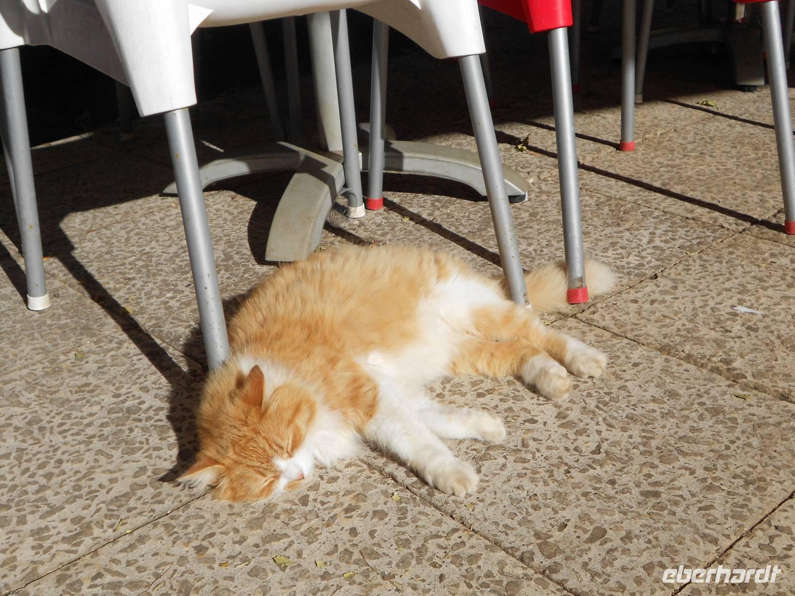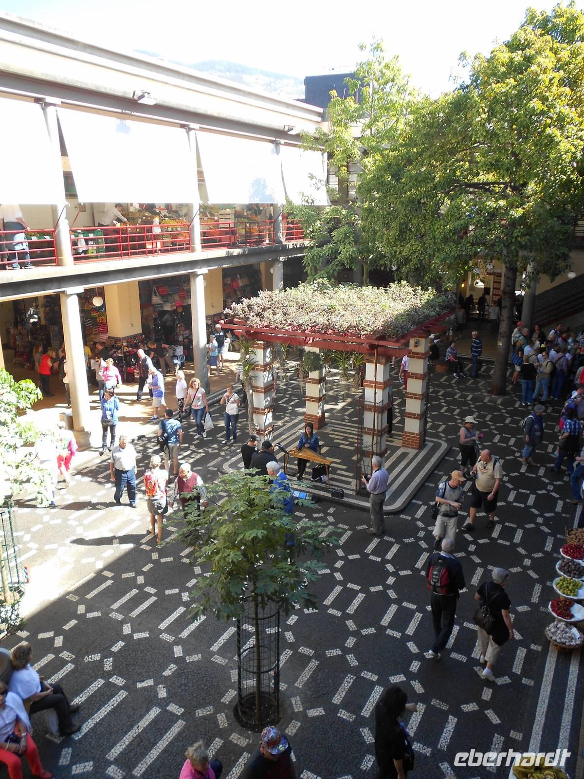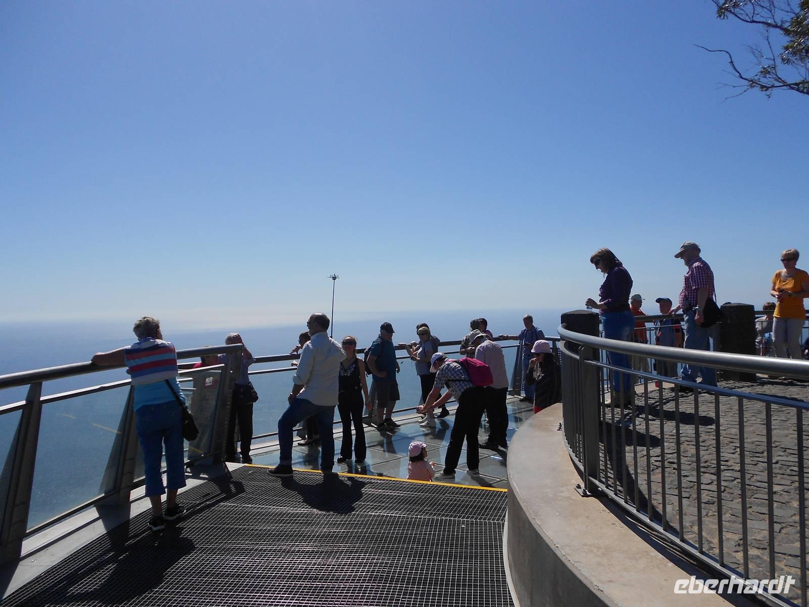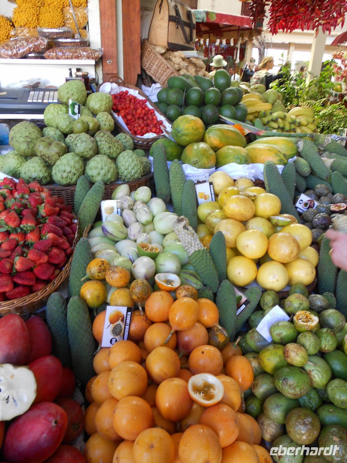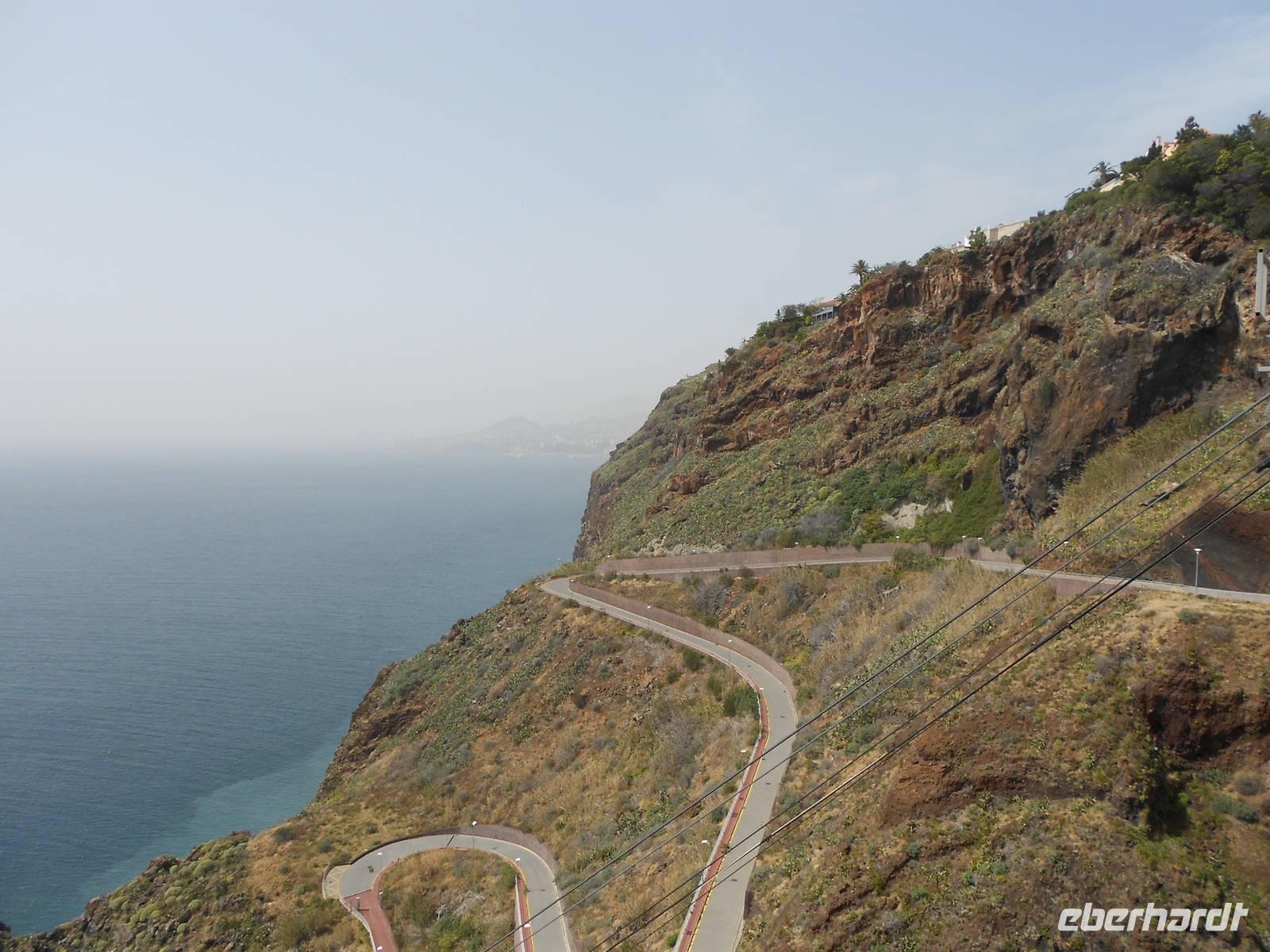 Heute führt uns der Weg erneut in Richtung der Hauptstadt Funchal, nämlich in den Botanischen Garten. Berühmt ist hier vor allem das Mosaik aus grünen und magentafarbenen Pflanzen in der Mitte des Parks. Hier erklärt uns Fátima erneut viel über die einheimischen und importierten Bäume und Blumen, deren Farbenpracht, Vielfalt und Größe uns immer wieder zum Staunen bringen. Wir haben Glück, dass wir so früh da sind, denn im Hafen liegen drei neue Kreuzfahrtschiffe an und während wir im Café die Sonne genießen, bewegen sich riesige Gruppen an Touristen durch den Garten. Wir fahren im Anschluss nach Funchal, wo sich deutlich mehr Verkehr und Trubel abspielen. Erster Stopp ist die Markthalle, in der wir Blumen, Obst, Gemüse und nicht zuletzt den Fischmarkt bestaunen. Bei einer Verkostung von verschiedenen Früchten, über die uns Fátima viel zu erzählen weiß, kommen einige Gäste auf den Geschmack und kaufen für unterwegs oder zuhaus noch weitere Spezialitäten ein. Auf dem Fischmarkt beeindrucken uns vor allem die riesigen Stücke von Thunfisch und der berühmte Degenfisch, der besser schmeckt als er aussieht. Wir schlendern weiter durch eine Gasse, in der sich Künstler mit der Gestaltung von Türen verewigt haben und laufen in Richtung Hafen, wo wir die Kreuzfahrtschiffe sehen. Das Schiff Santa Maria, ein Nachbau des Kolumbus-Schiffes, mit dem er 1492 in Richtung Karibik aufbrach und das heute Rundfahrten vor der Küste Madeiras anbietet, ist leider heute nicht zu sehen. Die Fahrt an der Küste entlang führt uns in das kleine Fischerdorf Camara do Lobos, in dem sich Winston Churchill durch seine Gemälde verewigt hat und machen eine Mittagspause. Wie genießen die Sonne, die das Meer zum Glänzen bringt und fahren zur höchsten Steilküste Europas, Cabo Girao. Dieser Ausblick ist nichts für Ängstliche; 580 m fällt die Küste steil ab und wer den Nervenkitzel liebt, betritt die gläserne Plattform. Allen anderen genügt auch der grandiose Blick auf die Küste und das Wasser. Als letzten Höhepunkt erwartet uns heute noch der Besuch eines Weingutes, das den bekannten Madeirawein herstellt. Wir genehmigen und ein kleinen Glas und probieren dazu den Honigkuchen. Gestärkt besteigen wir eine Anhöhe, über die sich ein weiterer toller Blick über die Landschaft bietet. Am Abend essen wir erneut in Klenk´s Café.
