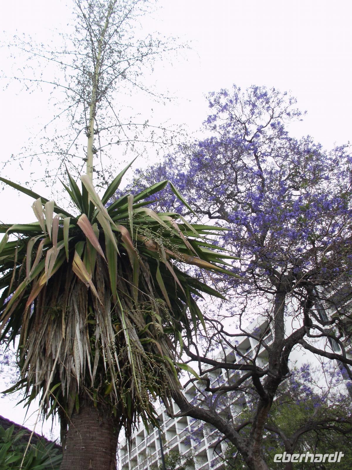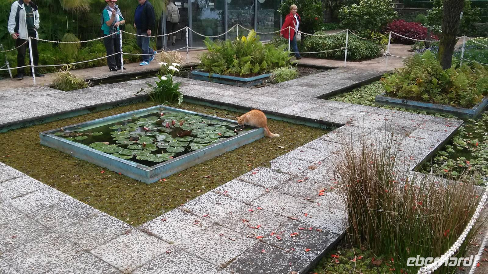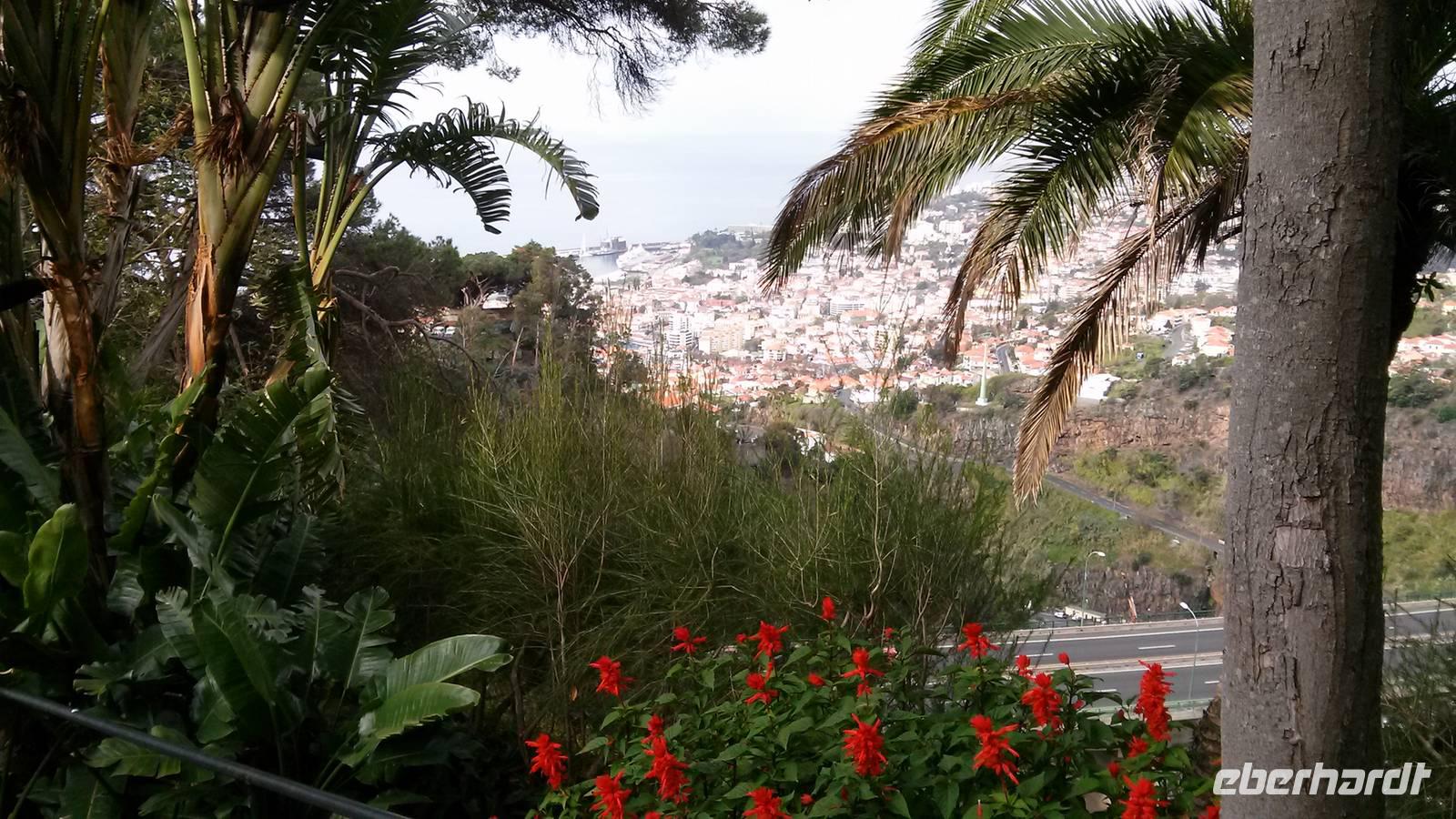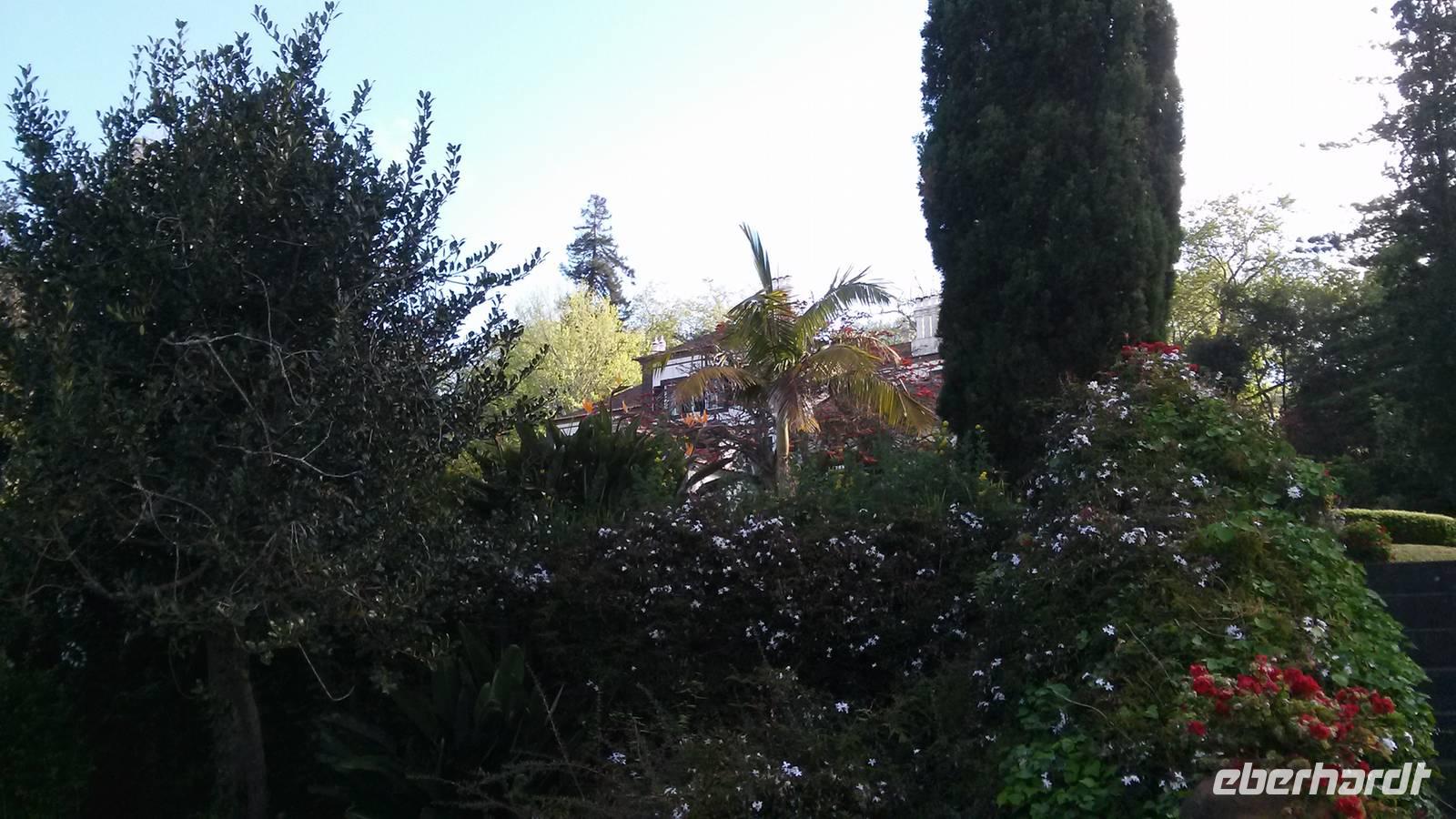 Aber wir besuchten das Anwesen der Familie Blandy, die dort in den 1880er Jahren das Gelände von einem Grafen kaufte, der das Geld, welches er von seinem reisefreudigen, pflanzensammelnden Großonkel geerbt hatte, im Casino verprasste, nicht, um mit ihnen über Politik zu diskutieren, ja nicht einmal, um persönlich mir der Familie in Kontakt zu treten. Die Pflanzensammlung des erblassenden Großonkels, der von jeder seiner Reisen Pflanzen mitbrachte, sonst aber sein Geld beisammenhielt und die sein prassender Großneffe ebenso wie Familie Blandy in den darauf folgenden anderthalb Jahrhunderten hegte und pflegte, zog uns auf die Hügel über der Hauptstadt Funchal. Gartenanlagen im italienischen (Renaissance), französischen (Barock) und englischen (Neoklassizismus/Romantik) Stil waren hier zu sehen, wobei der englische Stil vorherrschte., Douglasien, James-Cook-Tannen, Sequioas (Mammutbäume) oder der neuseeländische Korallenbaum beherrschten die oberen Etagen, Kamelien und ein Taschentuchbaum die mittlere und eine unzählbare Menge bunter Blumen die unteren.
