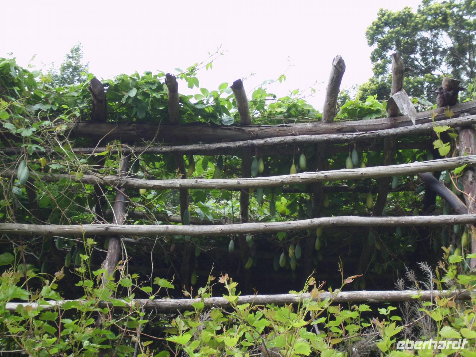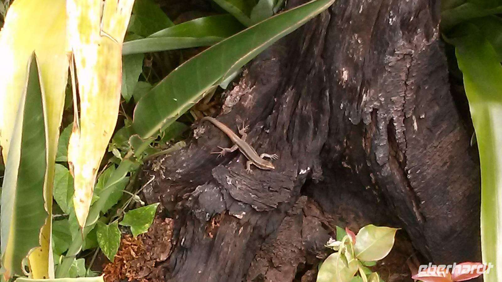 Wir lernten bei dieser Wanderung auch, dass die Papaya eine zweihäusige Pflanze ist, sprich: es gibt männliche und weibliche Pflanzen. Beide tragen Fürchte, bei der männlichen Papaya wachsen diese direkt am Stamm, bei der weiblichen hängen sie herunter. Auch haben männliche und weibliche Pflanze unterschiedliche Blätter.