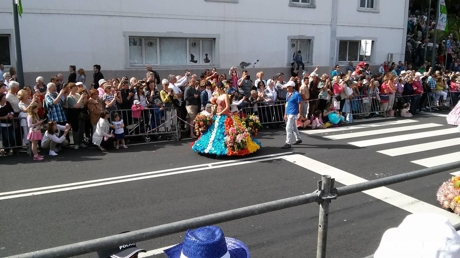 Bunt und blumengeschmückt zogen die neun Blumenwagen mit ihren noch bunteren und noch blumengeschmückteren Tänzern vorneweg und hintendrein an uns vorbei. Vom ungeborenen Kind - eine Frau zog hochschwanger mit im Zug - bis zur Seniorin war jedes Alter dabei, aber unter den Tänzerinnen und Tänzern gab es einen deutlichen Frauenüberschuss, mit zunehmenden Alter desto auffälliger. Die meisten Wagen spielten portugiesische Volksmusik oder Schlager und einige Teilnehmer waren sogar überzeugt, dass alle dasselbe Lied gespielt hätten. Soviel kann ich aber sagen: Das stimmt nicht!