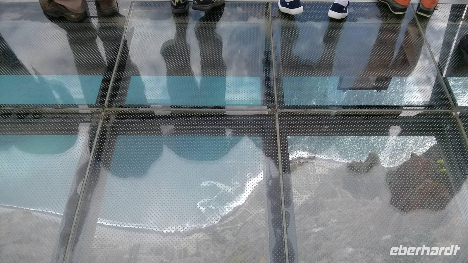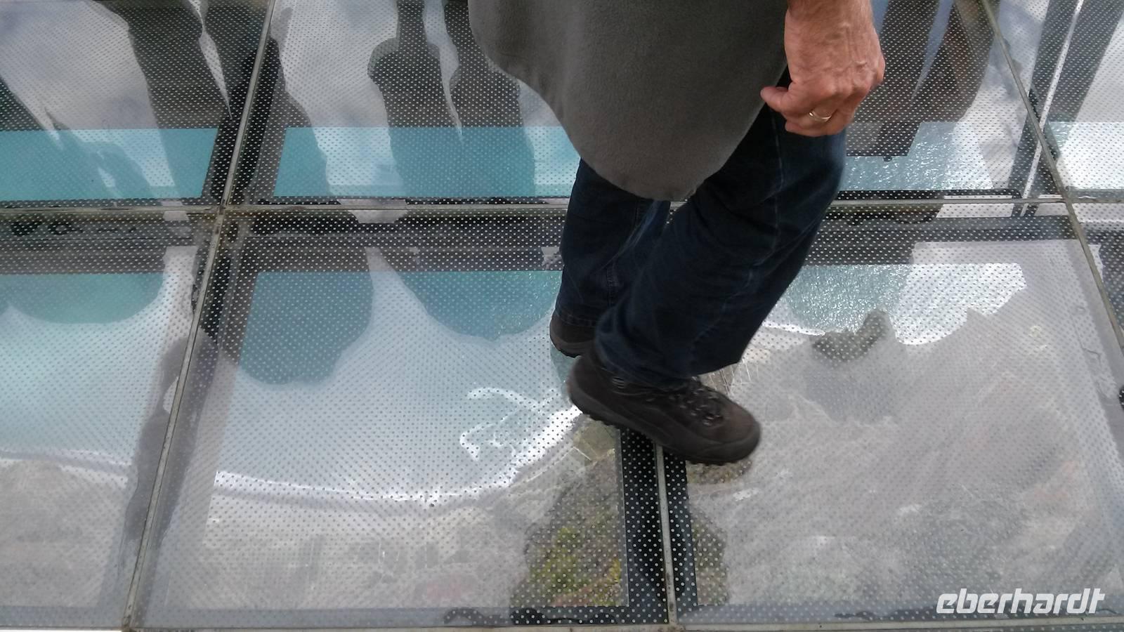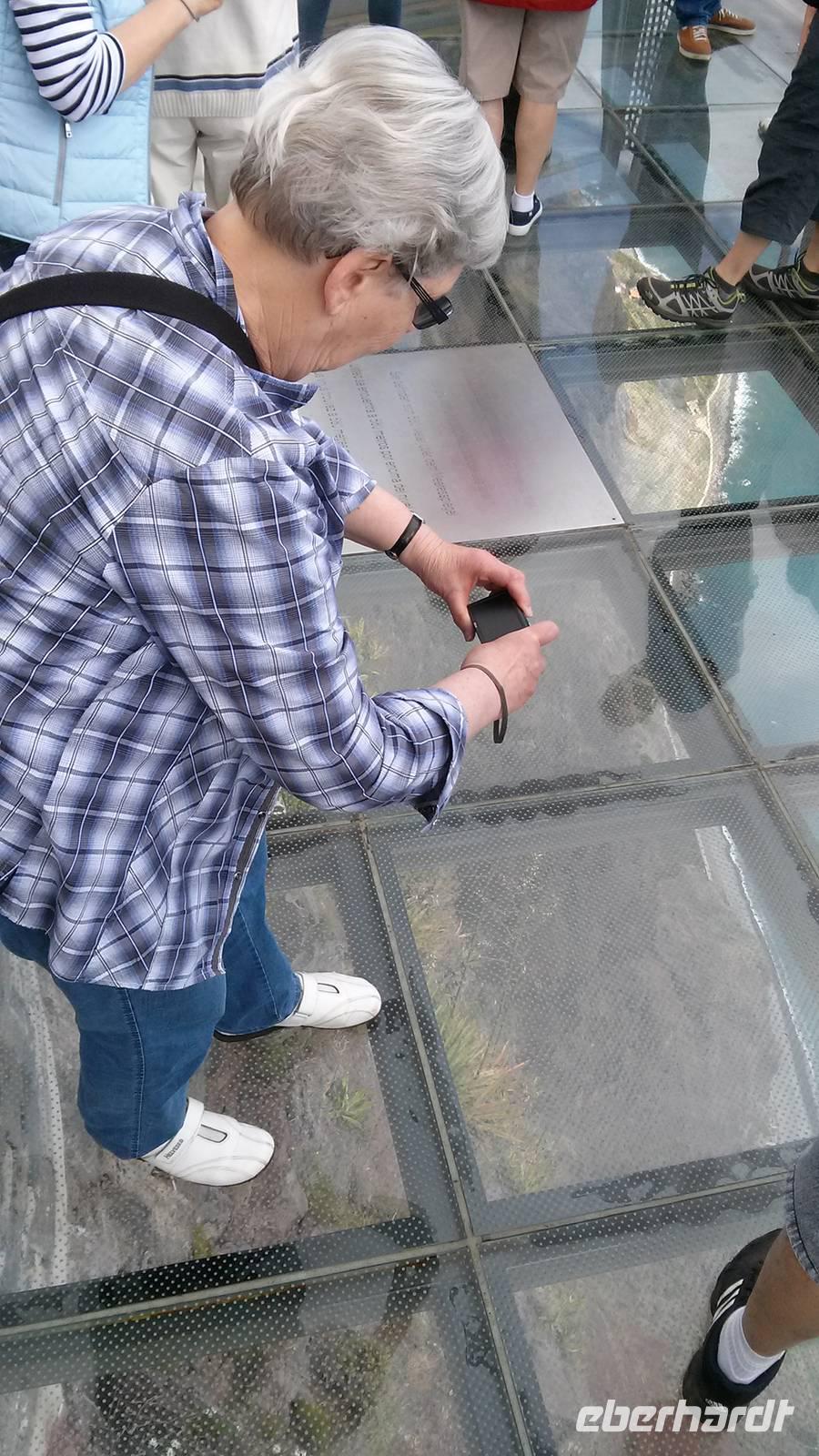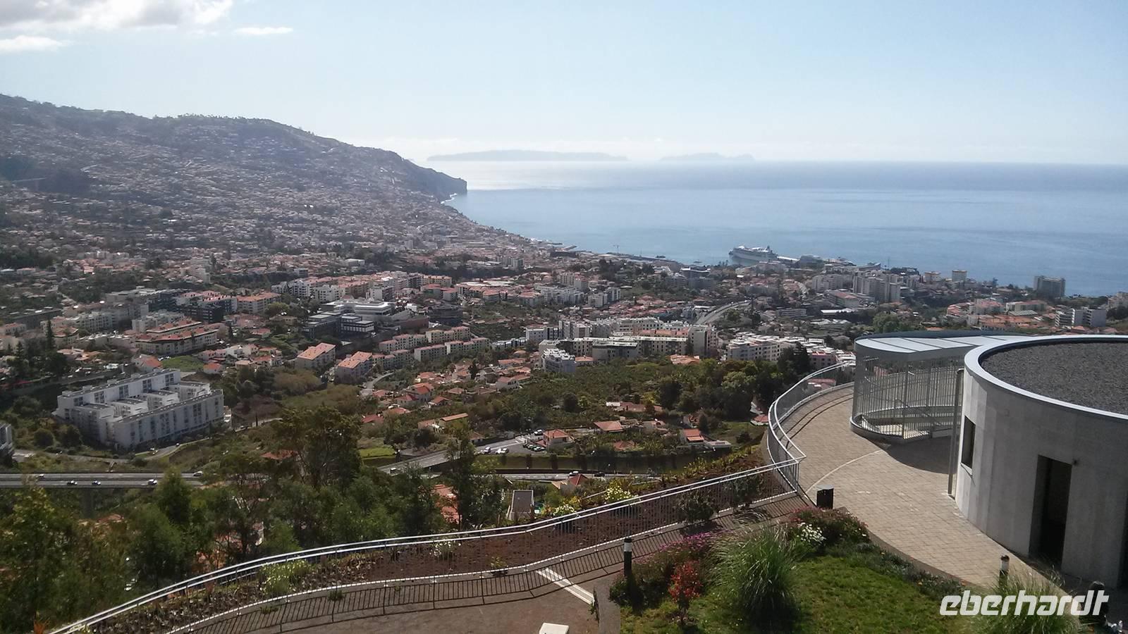 Höhepunkt des Tages war - sowohl im Erlebnis als auch geographisch gesehen - aber sicher die 580 m hohe Klippe am Cabo de Girão (Kap der Umkehr). Ähnlich wie beim berühmten Skywalk am Grand Canyon gibt es hier einen Balkon mit gläsernen Boden. Das Meer der Klippe ist an ihrem Fuß sofort mehrere hundert Meter tief. Für Bauern hat man dort einen Fahrstuhl gebaut, um die Terrassen, die auch hier angelegt worden sind, in einer besser vertretbaren Zeit als bisher zu erreichen. Neben Armutsauswanderung hat Madeira die meisten menschlichen Verluste wohl durch Abstürze von Klippen zu verschmerzen gehabt.