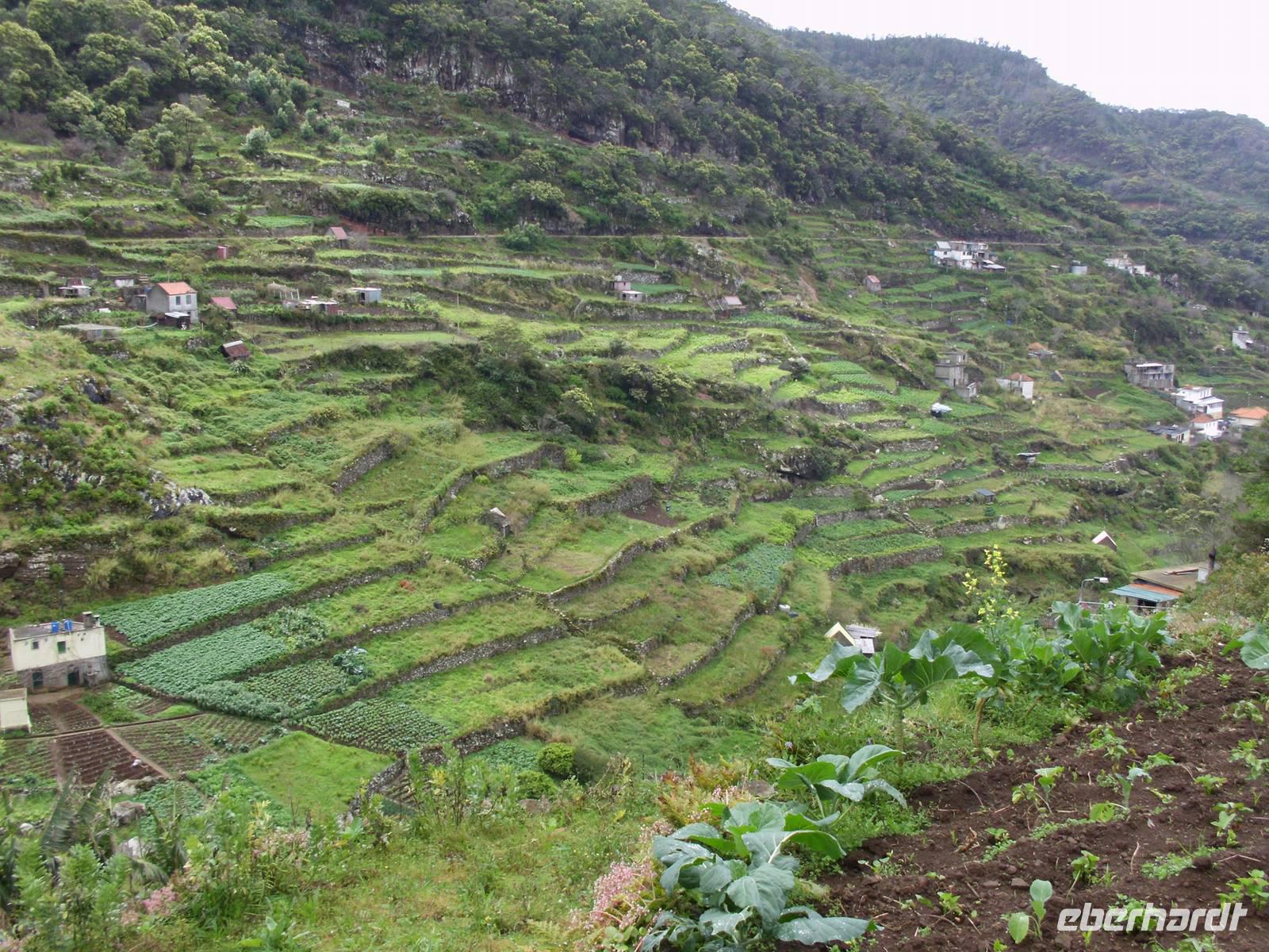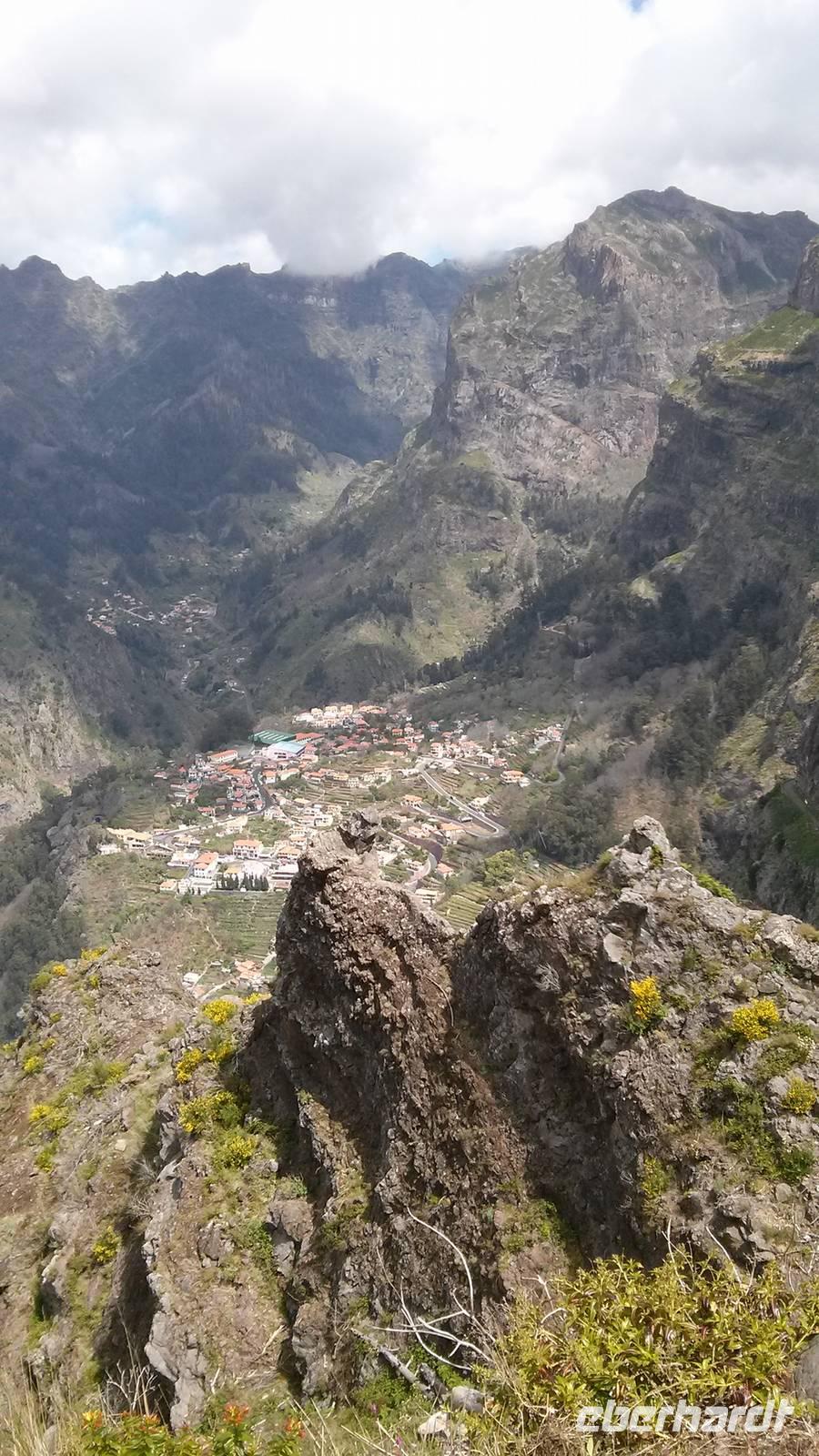 Über den Aussichtspunkt Pico dos Barcelos, der zwischen Funchal und Santo António, dem Geburtsort von „CR7" (= Cristiano Ronald) liegt, fuhren wir zur Eira do Serrado. Hier hat man einen spektakulären Ausblick ins Nonnental, den Corral das Freiras (eigentlich „Nonnenstall"). Hier oben existiert ein kleines Kastanienwäldchen und deswegen gab es auch ein Kastaniensüppchen zu Mittag.