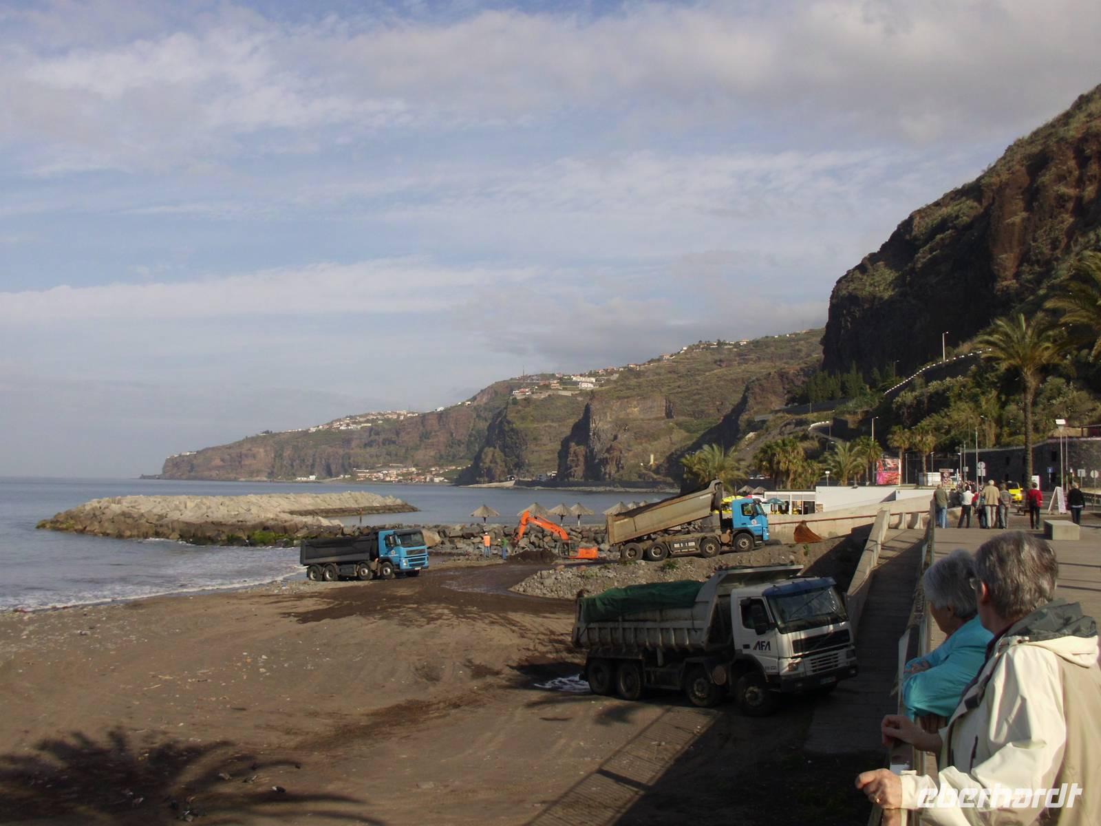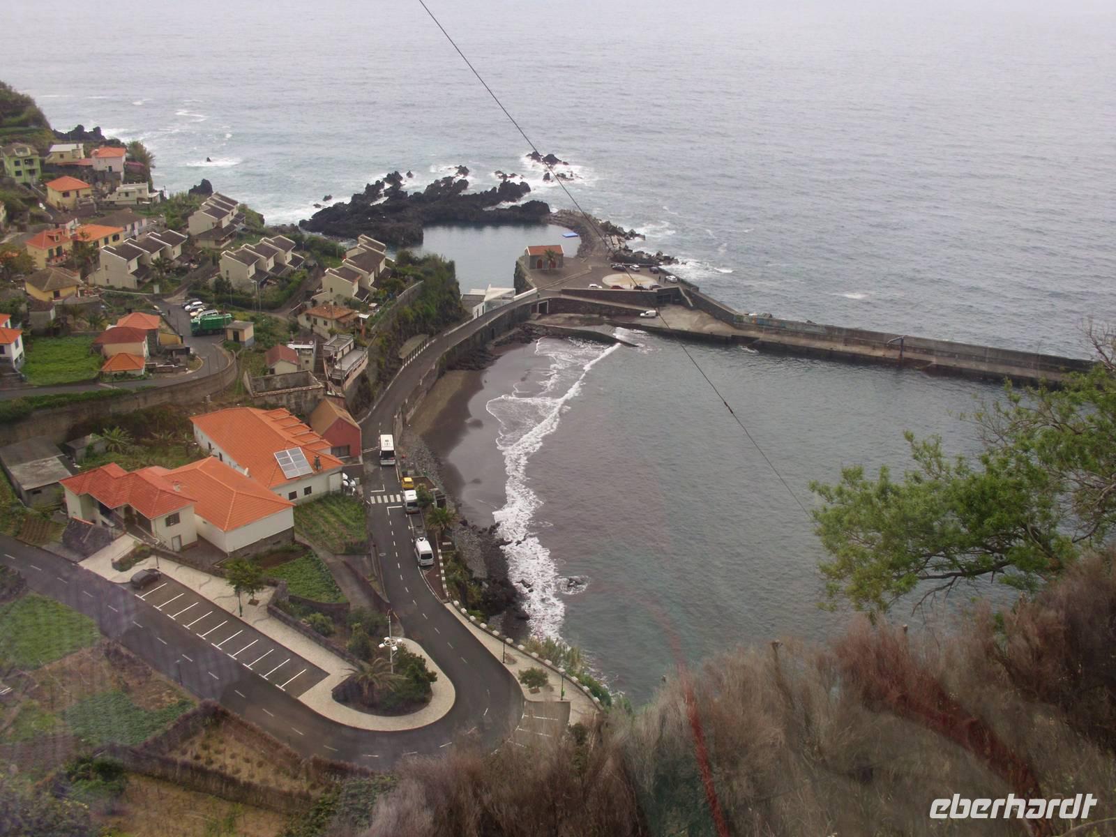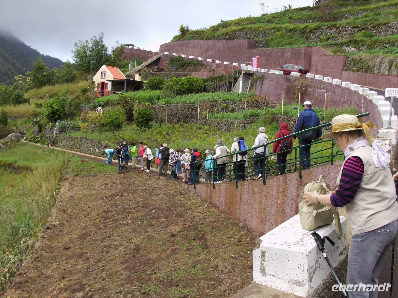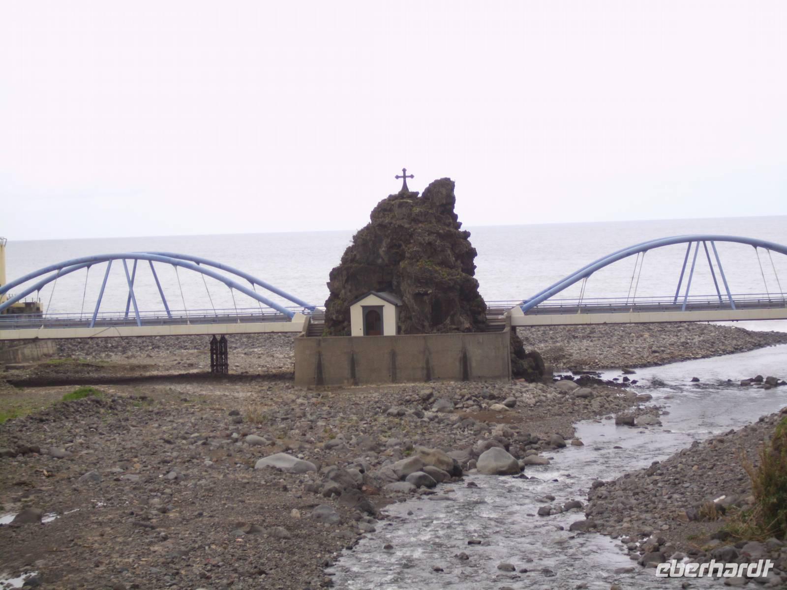 Unseren ersten Halt machten wir in Ribereira Brava, einem Ort an der Südküste, der mit 'Wildbach' zu übersetzen ist. Hier schauten wir uns die kleine Kirche an und flanierten durch den Ort. Besonderes Amüsement erregten Baggerarbeiten in der Mündung des namengebenden Wildbachs: Was an der rechten Mündungsseite ausgebaggert und auf LKW verladen wurde, wurde auf der linken Mündungsseite wieder aufgeschüttet. Sicherlich hatten diese Arbeiten einen tieferen Sinn, der sich aber dem zufälligen Zuschauer nur bedingt erschloss.
