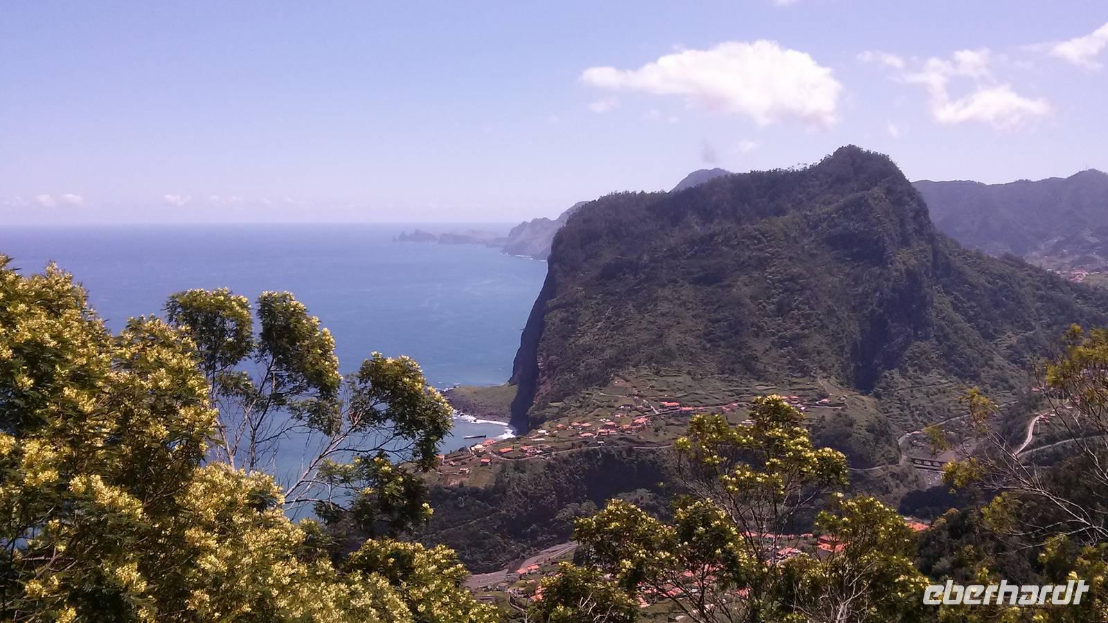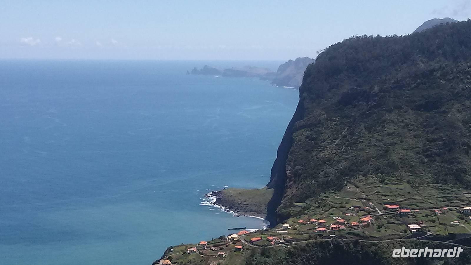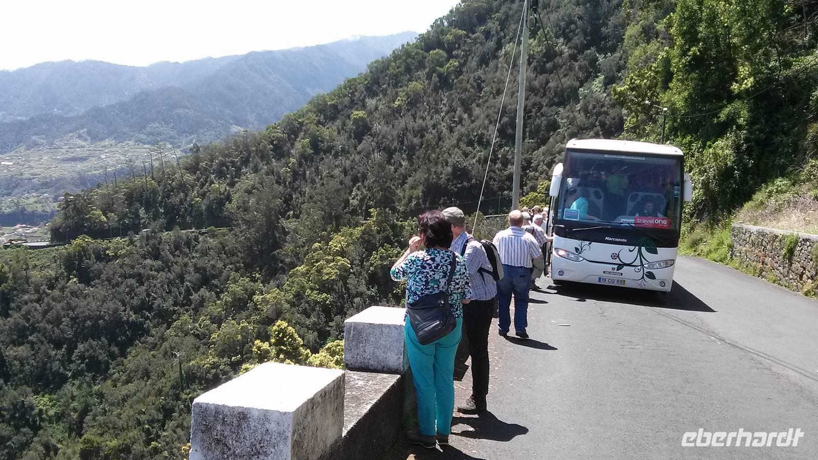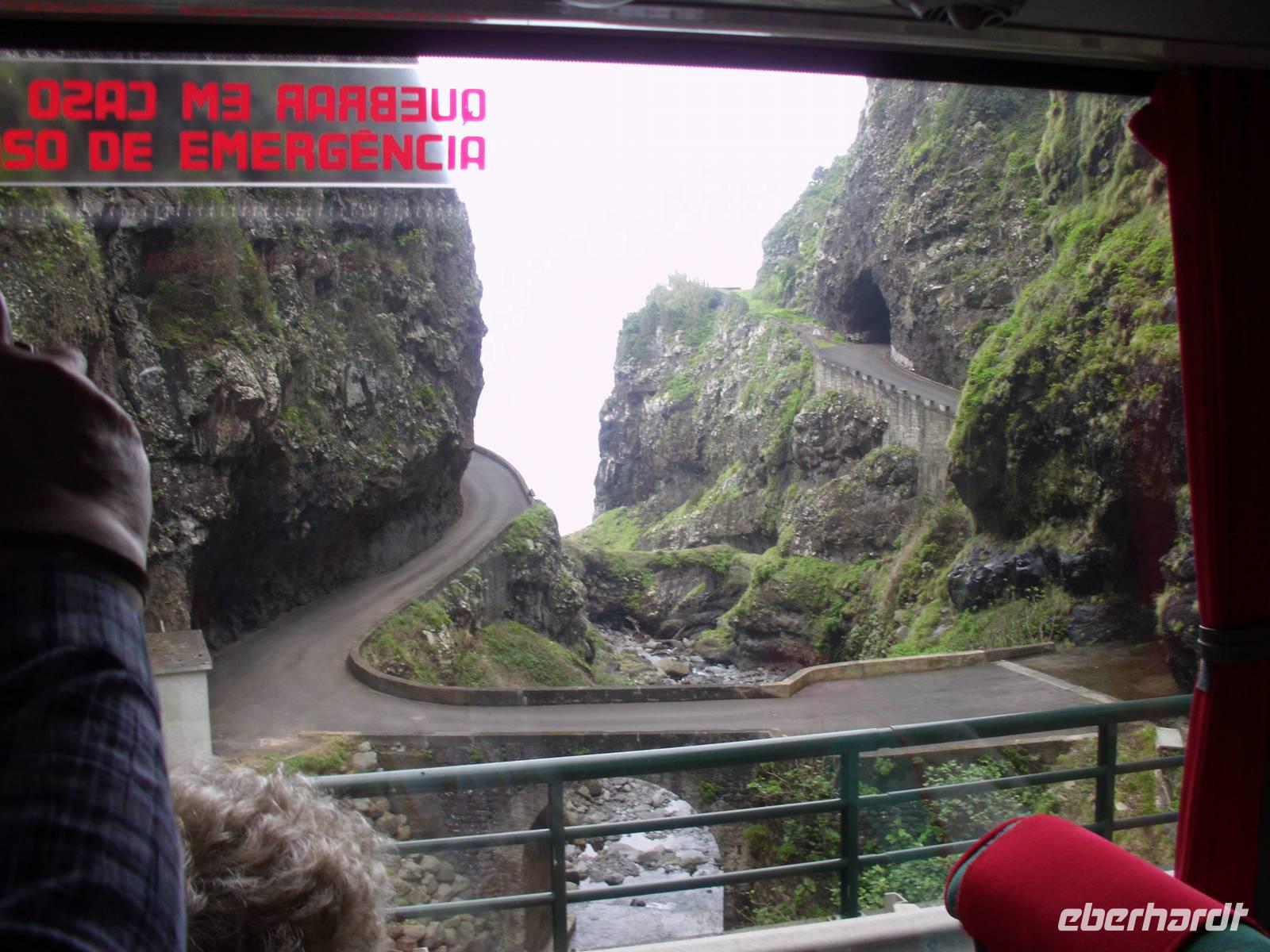Statt der für diesen Tag geplanten Osttour, empfahl Hélena uns aufgrund des Wetters, die erst für den vorletzten Tag anberaumte Westtour zu fahren, also die beiden Touren zu tauschen. Madeira ist zwar klein, keine sechzig Kilometer in Ost-Westausrichtung lang und keine dreißig in Nord-Südausrichtung breit, aber aufgrund seiner gebirgen Topographie und dem stets steif von Nord blasenden Passat kann sich das Wetter Madeira hinter jedem Berg ändern. Und so flohen wir aus dem wolkenverhangenen Osten in den sonnigeren Westen der Insel.