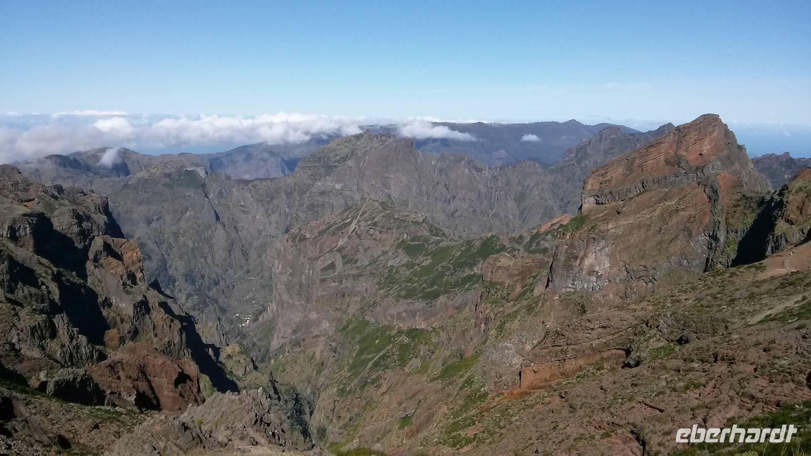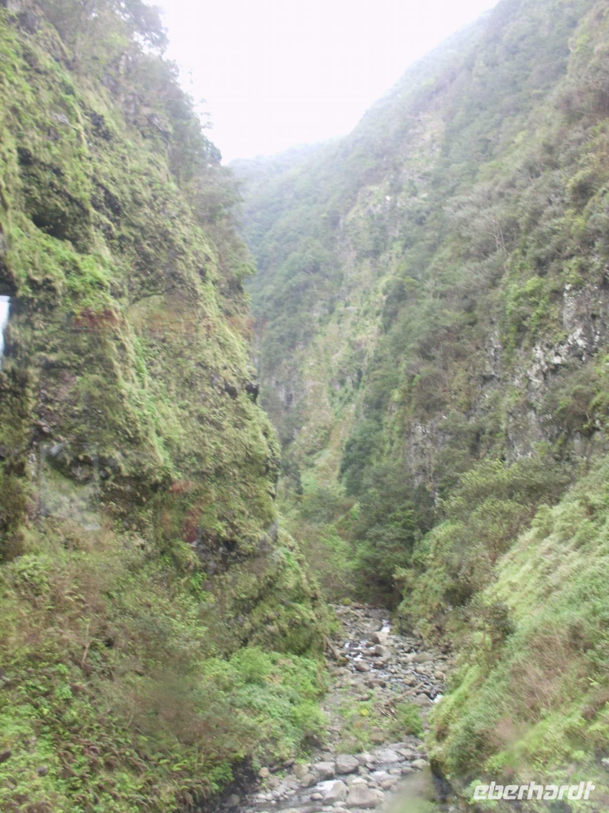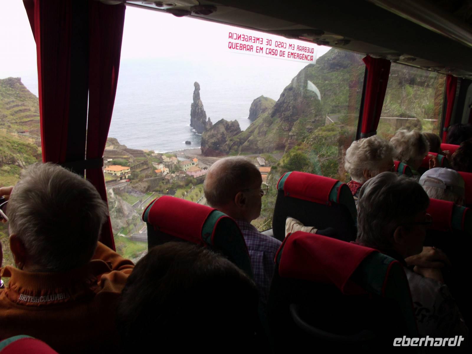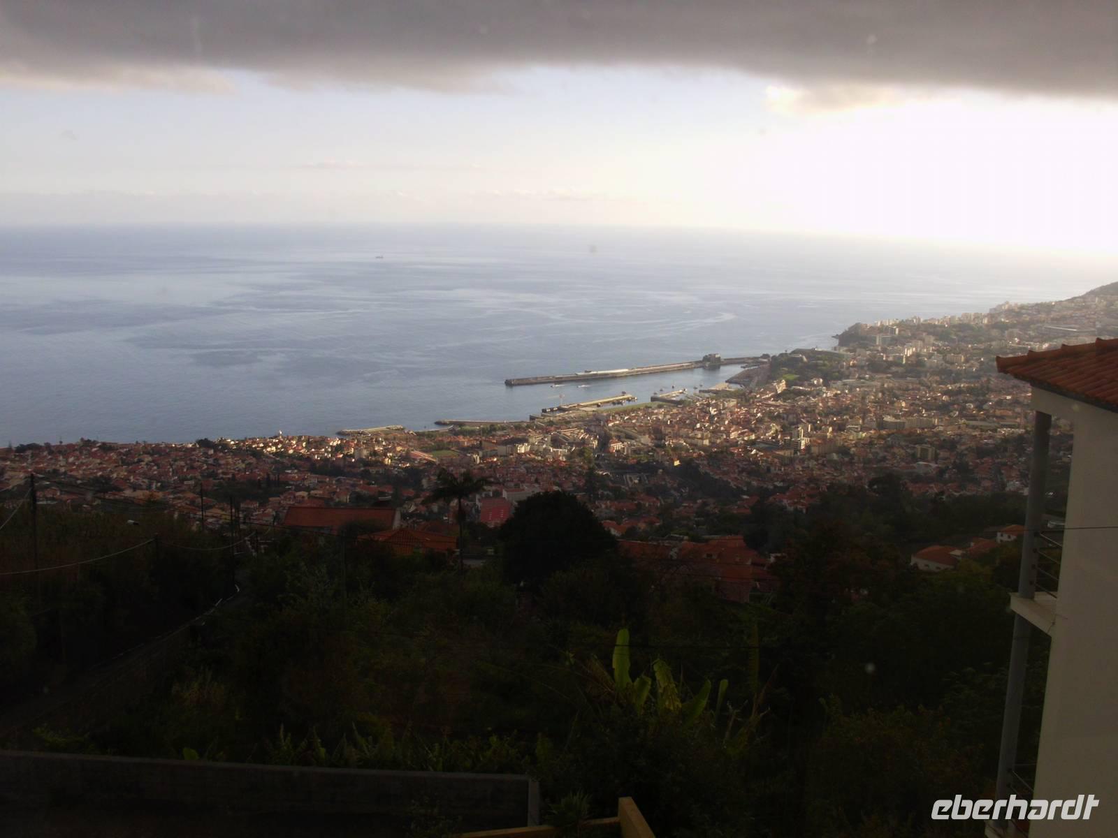 Statt der für diesen Tag geplanten Osttour, empfahl Hélena uns aufgrund des Wetters, die erst für den vorletzten Tag anberaumte Westtour zu fahren, also die beiden Touren zu tauschen. Madeira ist zwar klein, keine sechzig Kilometer in Ost-Westausrichtung lang und keine dreißig in Nord-Südausrichtung breit, aber aufgrund seiner gebirgen Topographie und dem stets steif von Nord blasenden Passat kann sich das Wetter Madeira hinter jedem Berg ändern. Und so flohen wir aus dem wolkenverhangenen Osten in den sonnigeren Westen der Insel.