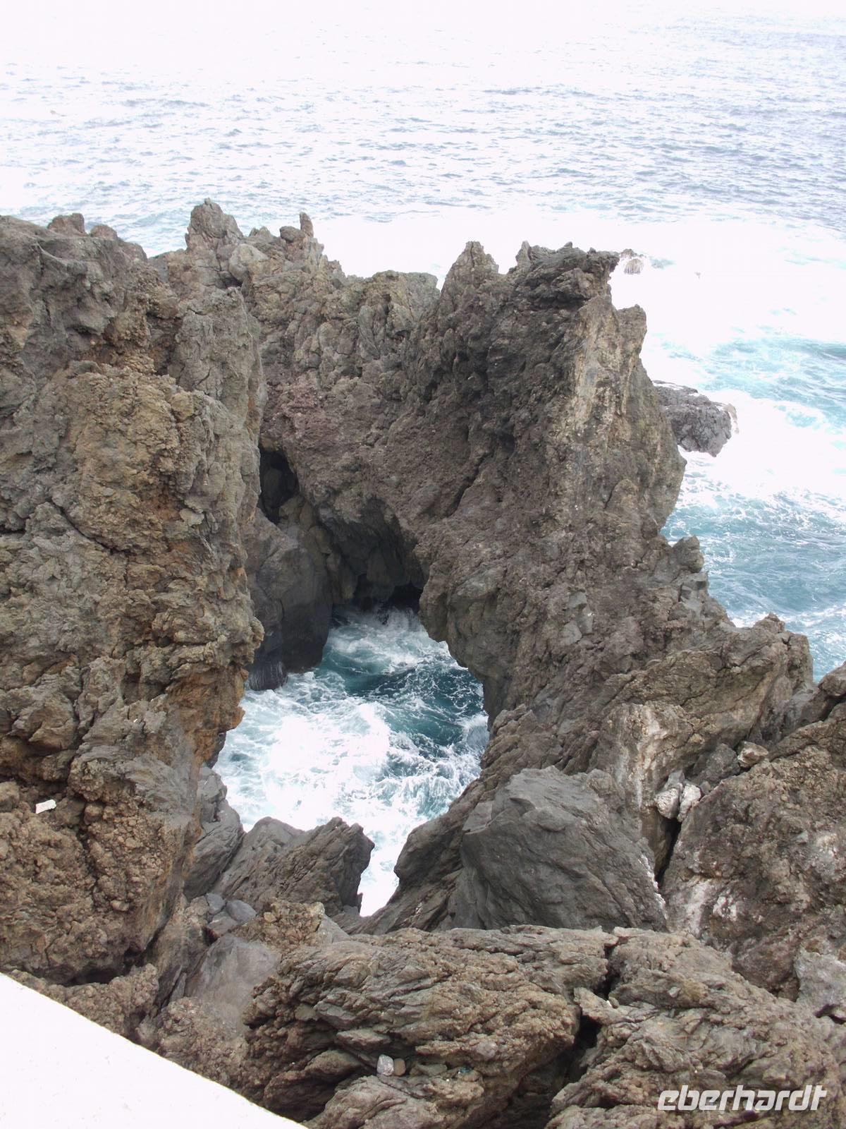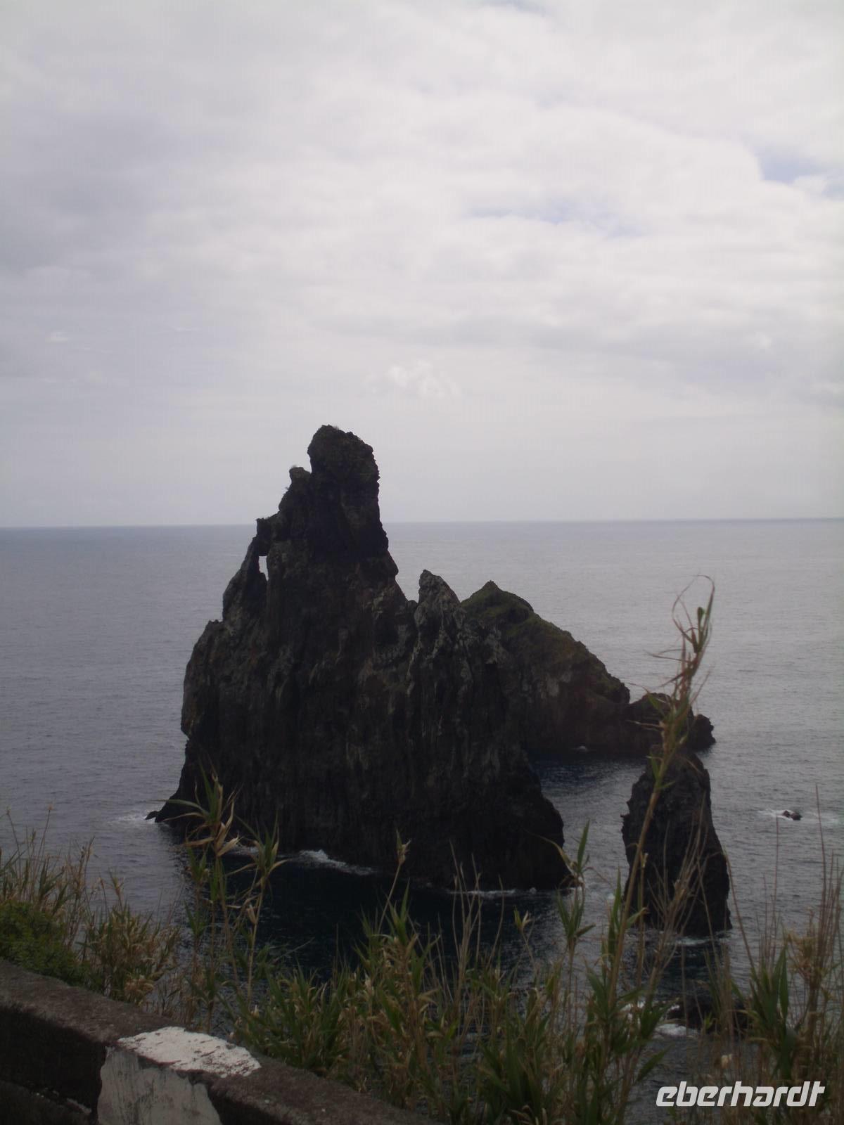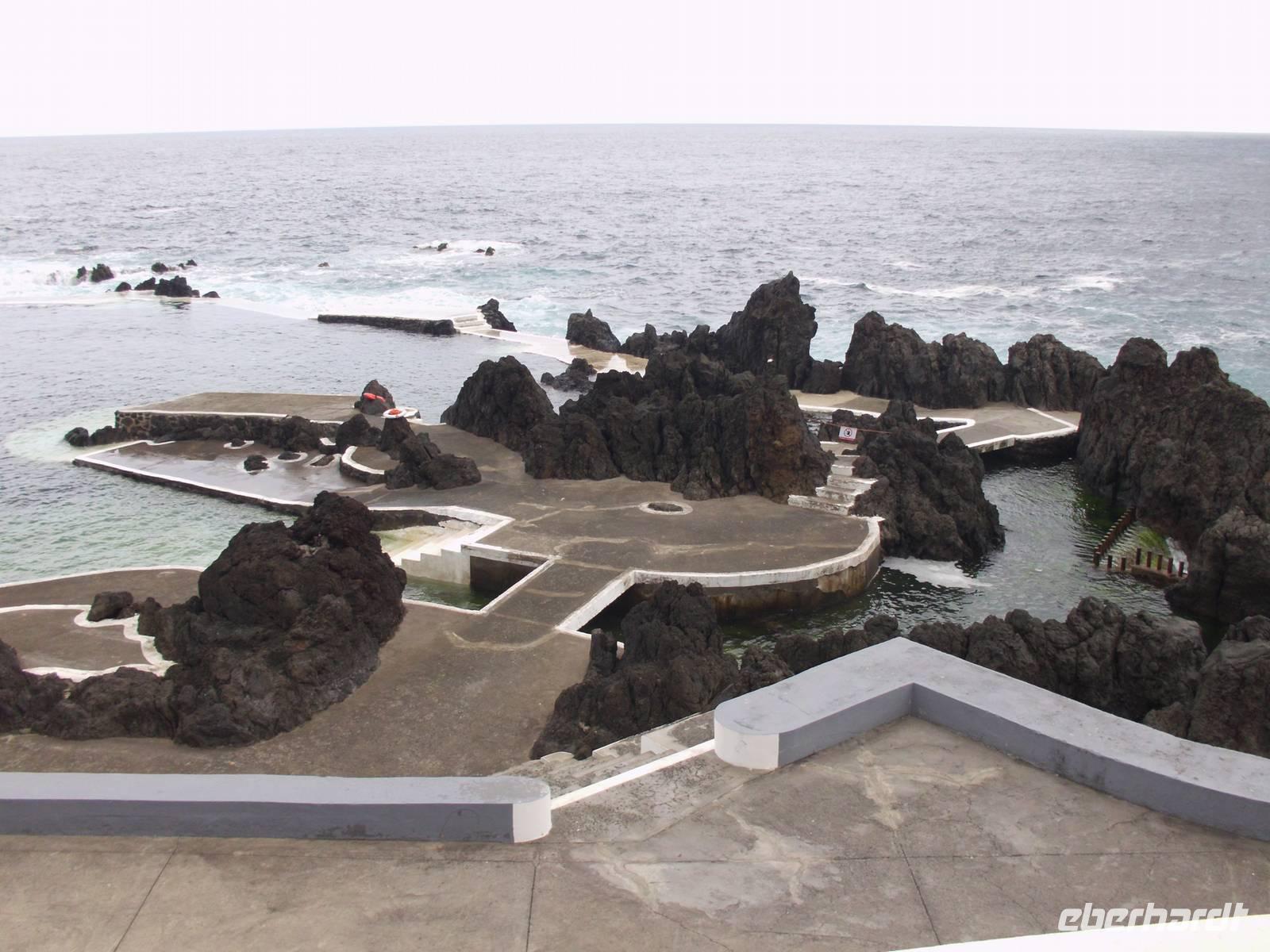 In Porto Moniz, an der Nordwestecke der Insel, wo wir auch unseren Espada genossen, flanierten wir anschließend die Strandpromenade entlang, vorbei an den, in vulkanische Basaltformationen eingelassenen Bädern, an Höhlen durch welche die Brandung donnerte und einem kleinen Piratenfort. Über Seixal, wo eine als „Hand Gottes" bekannte Basaltlavaformation ins Meer ragt, fuhren wir in Richtung der Boca de Encumeada.
