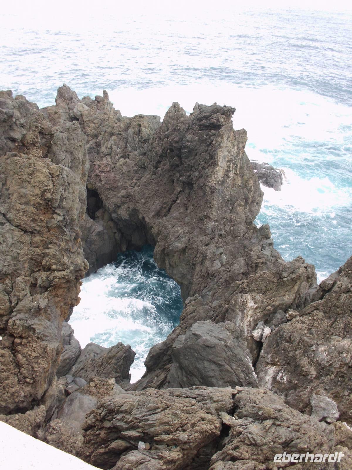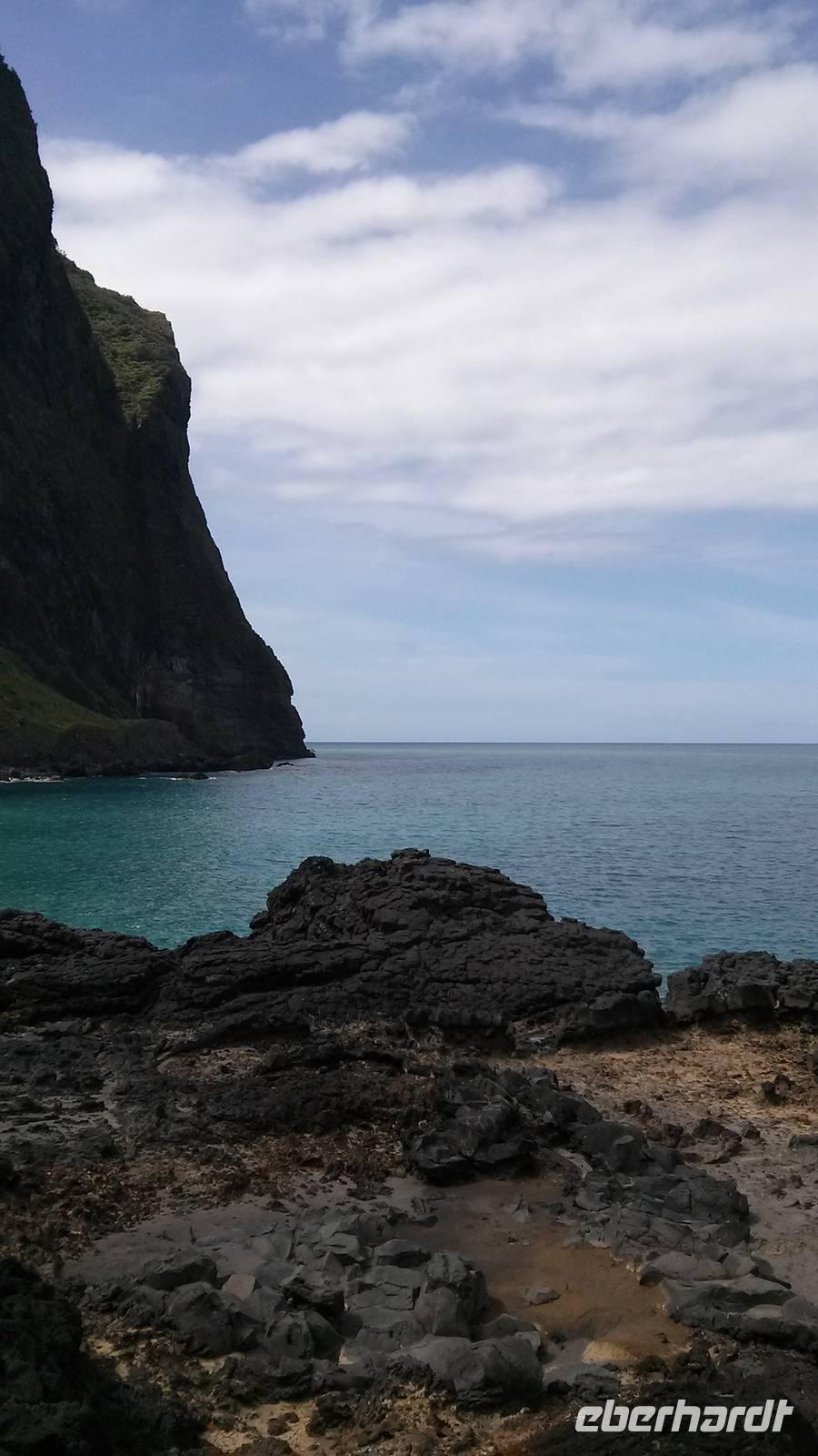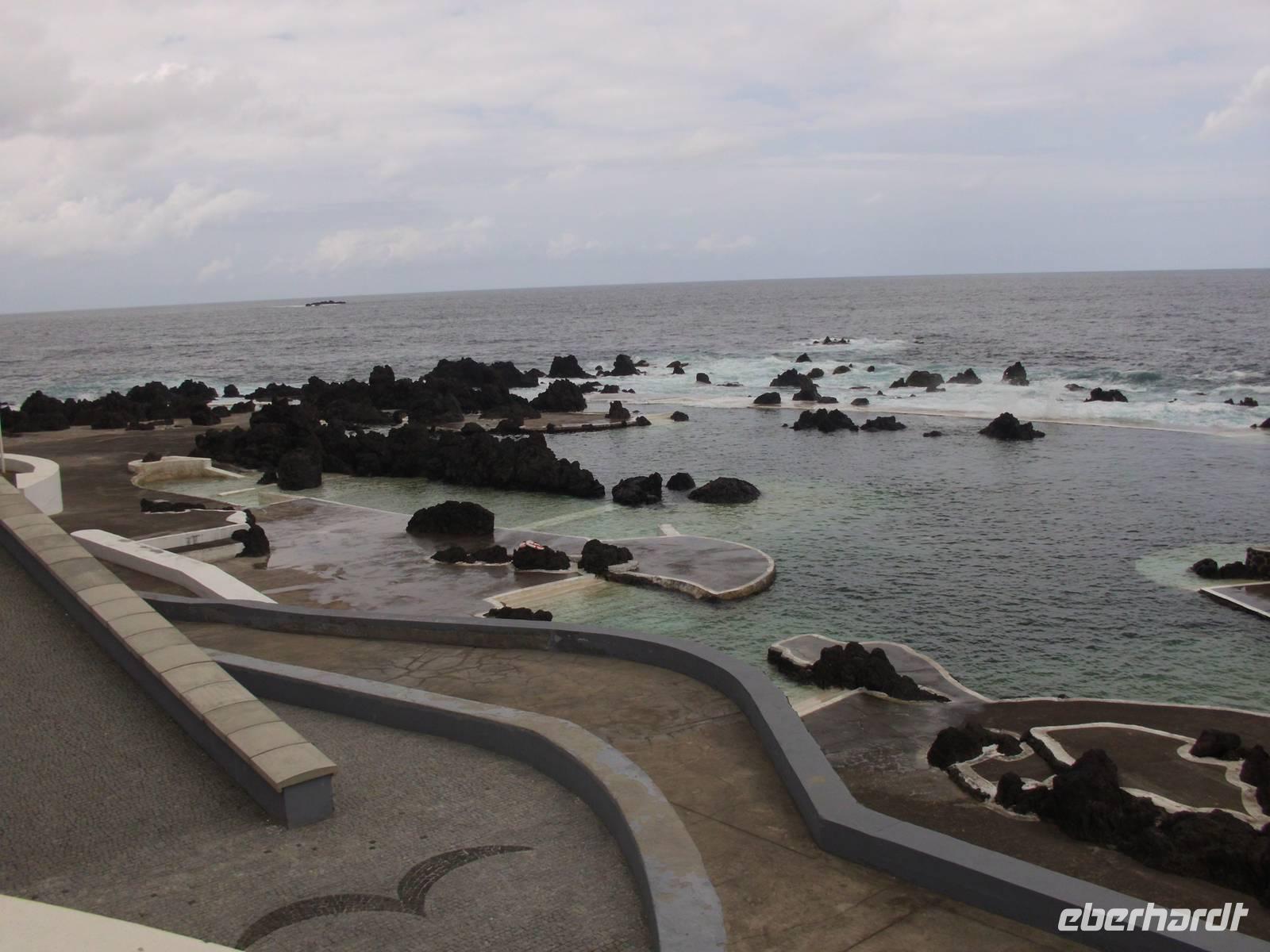 In Porto Moniz, an der Nordwestecke der Insel, wo wir auch unseren Espada genossen, flanierten wir anschließend die Strandpromenade entlang, vorbei an den, in vulkanische Basaltformationen eingelassenen Bädern, an Höhlen durch welche die Brandung donnerte und einem kleinen Piratenfort. Über Seixal, wo eine als „Hand Gottes" bekannte Basaltlavaformation ins Meer ragt, fuhren wir in Richtung der Boca de Encumeada.