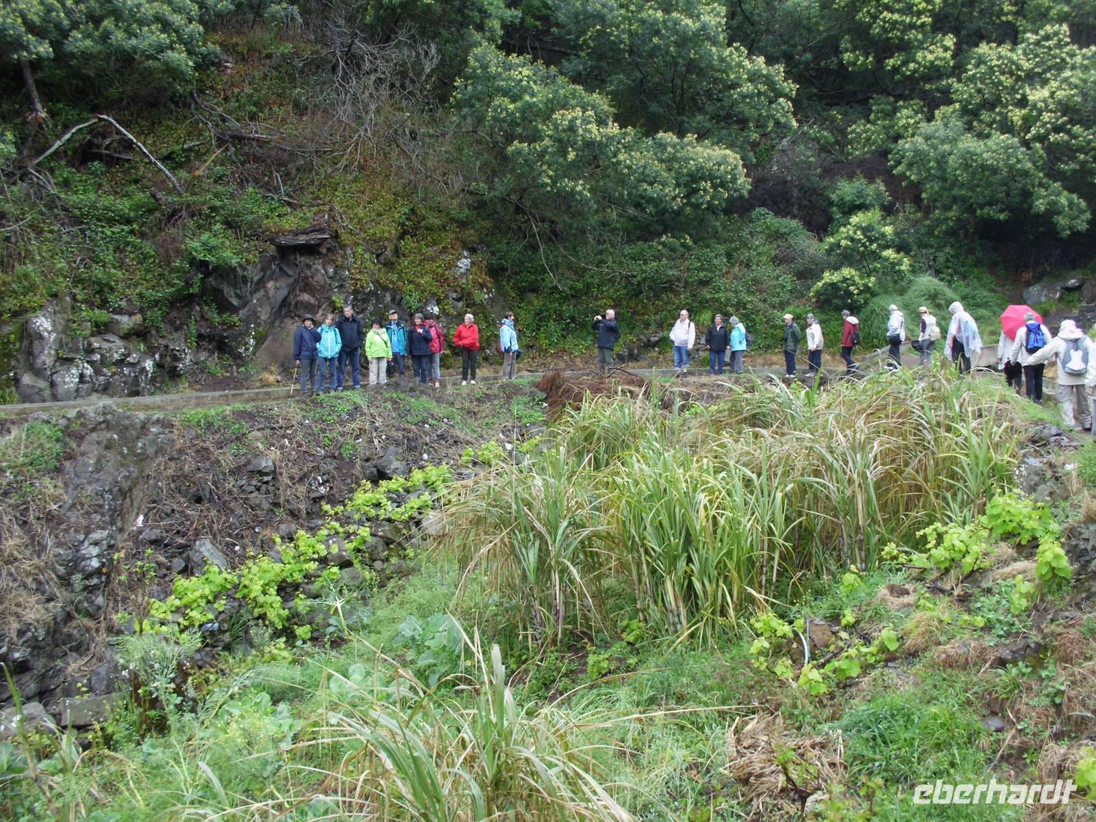 Im Ribeiro Frio, dem Tal des kalten Sturzbachs, machten wir eine Wanderung durch den madeirensischen Urwald zu einem Aussichtspunkt (Miradouro dos Balcões), von dem aus wir noch einmal den Pico de Arriero, diesmal von unten bewundern konnten. In Santana, mit seinen Weizenstroh bedeckten Häuschen, aßen wir zu Mittag. In Porto da Cruz besuchten wir eine Schnappsbrennerei, die weißen Rum noch mit einer Dampfmaschine aus dem 19. Jahrhunderte herstellte.