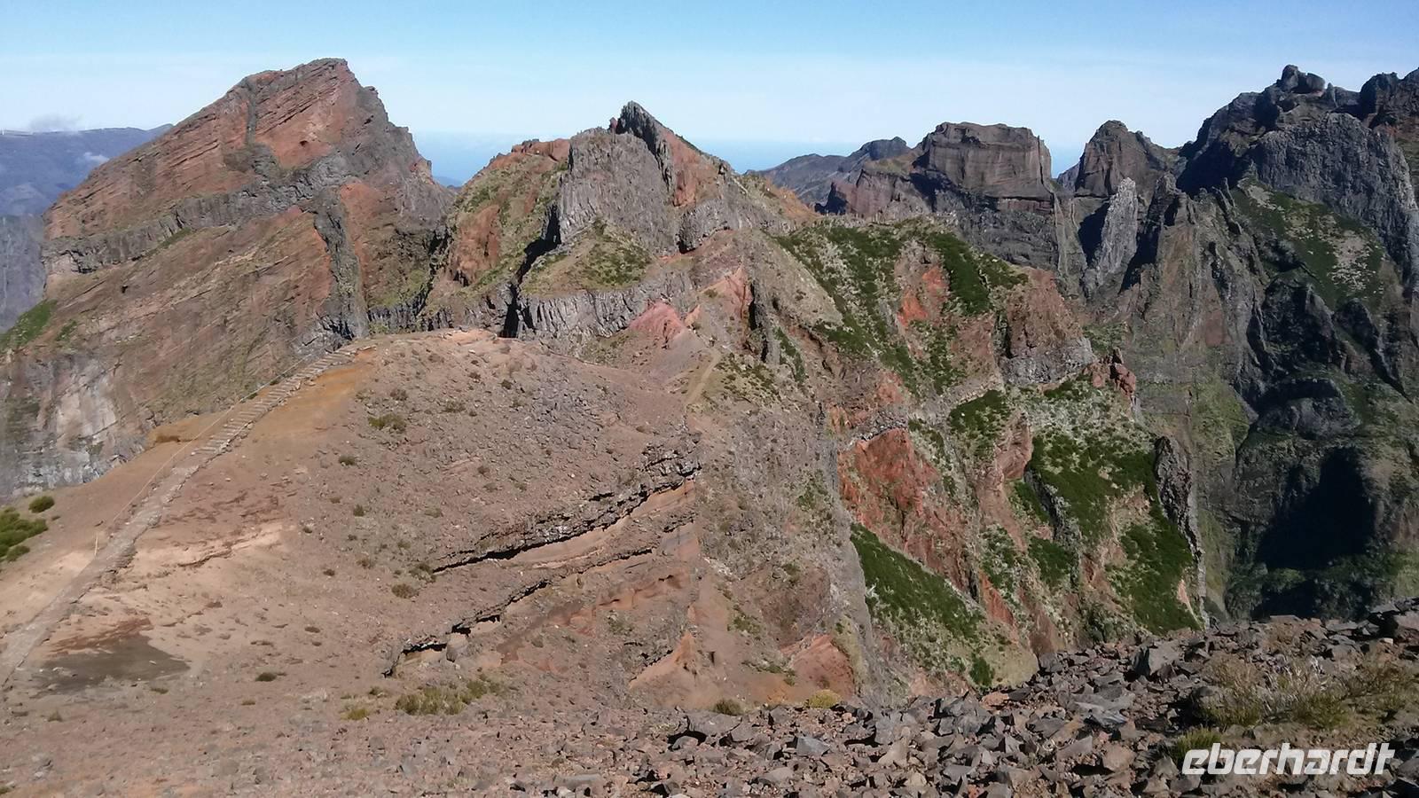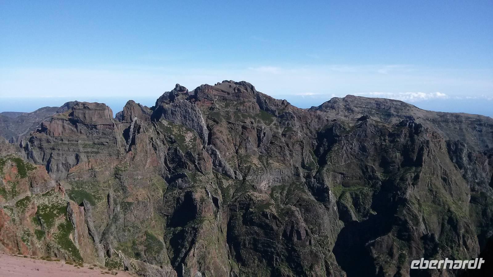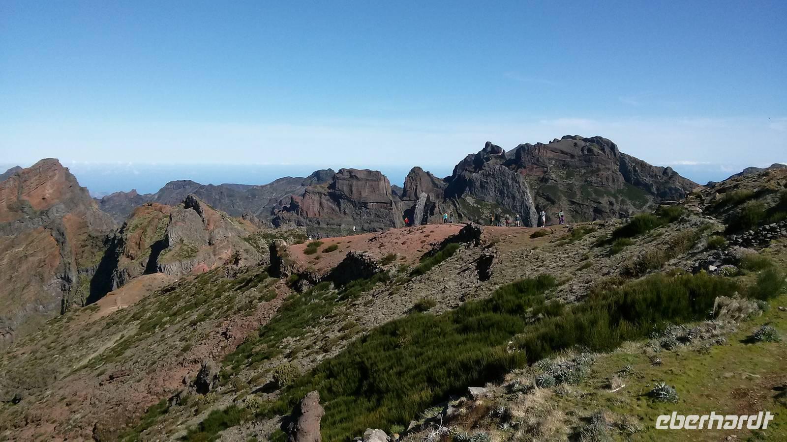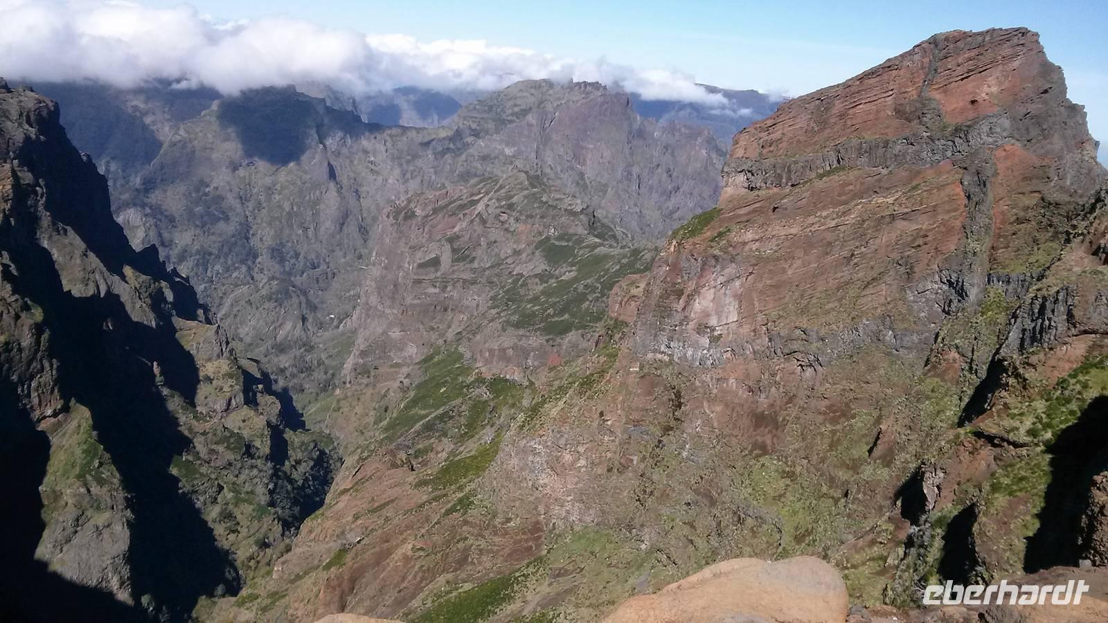Zunächst hatten wir einen kurzen Aufenthalt in der Korbflechterei in Camacha, wo Hélena uns die verschiedenen Arten des Korbflechtens und auch die verschiedene Bearbeitungsgüte des Holzes erklärte. Im Anschluss erklommen wir - im Bus - den Pico de Arriero, den mit 1818 m dritthöchsten Berg Madeiras, wo wir eine ganz spektakuläre Landschaft geboten bekamen.