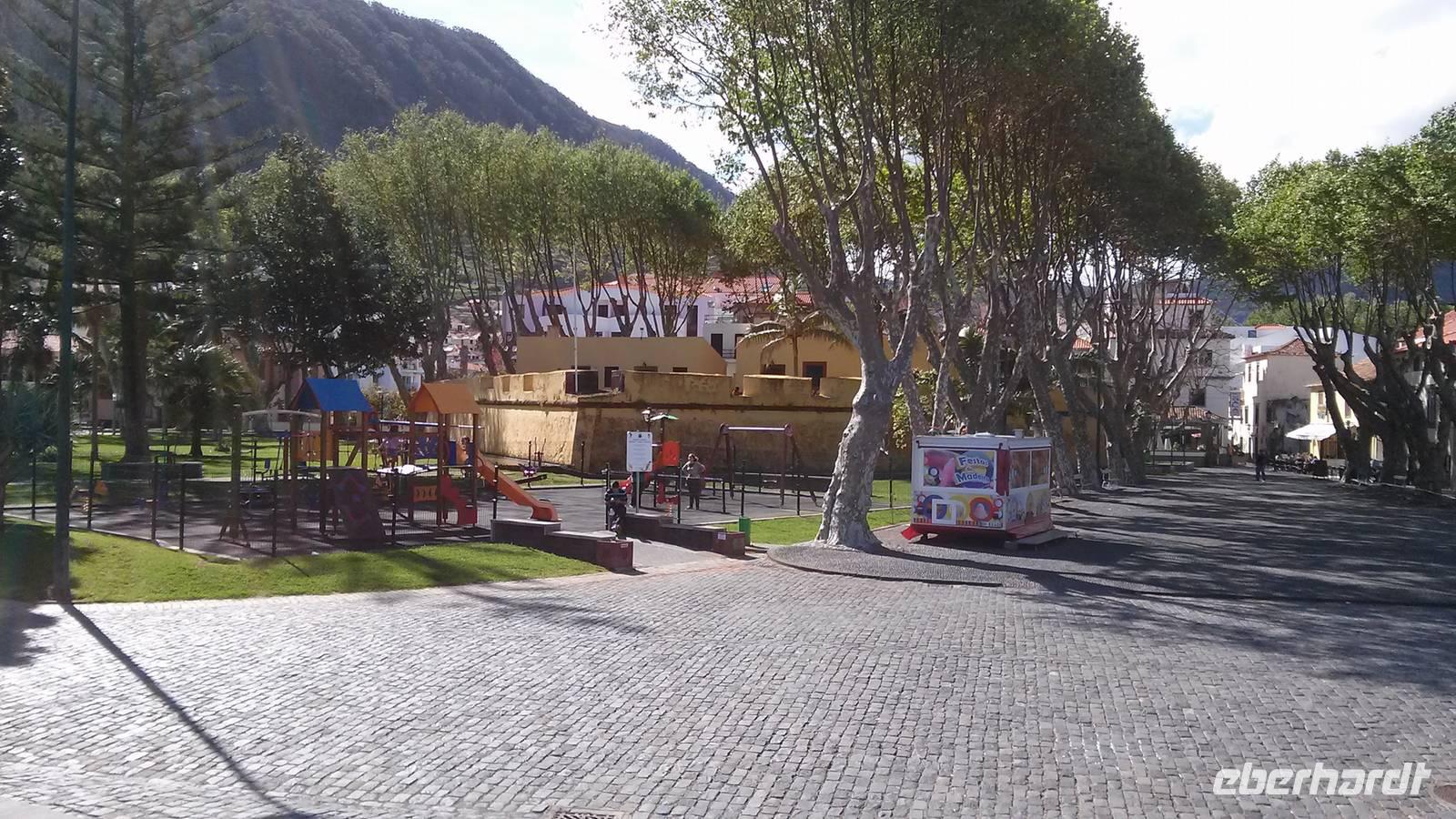 Schließlich fuhren wir zur Landungsbucht von Madeira, nach Machico, mit seinem kleinen Fort. Hier bließ uns ein steifer Ostwind ins Gesicht!