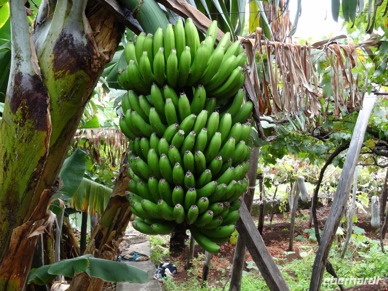 Bei unserem Spaziergang konnten wir einige Bauern bei der Arbeit beobachten. Wir bewunderten die kleinen Gärten, welche sie an den schrägen Abhängen anlegten. Die Schwere ihrer Arbeit konnten wir - selbst wenn wir es gesehen hatten- nur erahnen. Fatima gab uns einen Einblick in die Landwirtschaft und das Leben der Insel. Sie machte uns wiederholt auf die äußerst fruchtbaren Böden aufmerksam, wodurch unter anderem dreimal im Jahr Kartoffeln geerntet werden können. Auf den Feldern waren verschiedene Gemüsearten, Bananenstauden und zahlreiche andere Früchte zu bestaunen. Sehr oft machten wir einen Zwischenstopp, denn alle wollten die schönsten Aussichten über die Insel und die vielfältige Pflanzenwelt wenigstens als Foto mit nach Hause nehmen. Nach fast 7 Kilometern oder genau 14598 Schritten(bei einer Körpergröße von 1,75 Meter) hatten sich alle eine kleine Erfrischung verdient und mit vielen Erkenntnissen reicher fuhren wir zurück zum Hotel. Dort zogen einige Gäste dann im Pool ihre Bahnen, bummelten durch den Ort oder hielten - wie das so hier üblich ist- eine kleine Siesta ab.