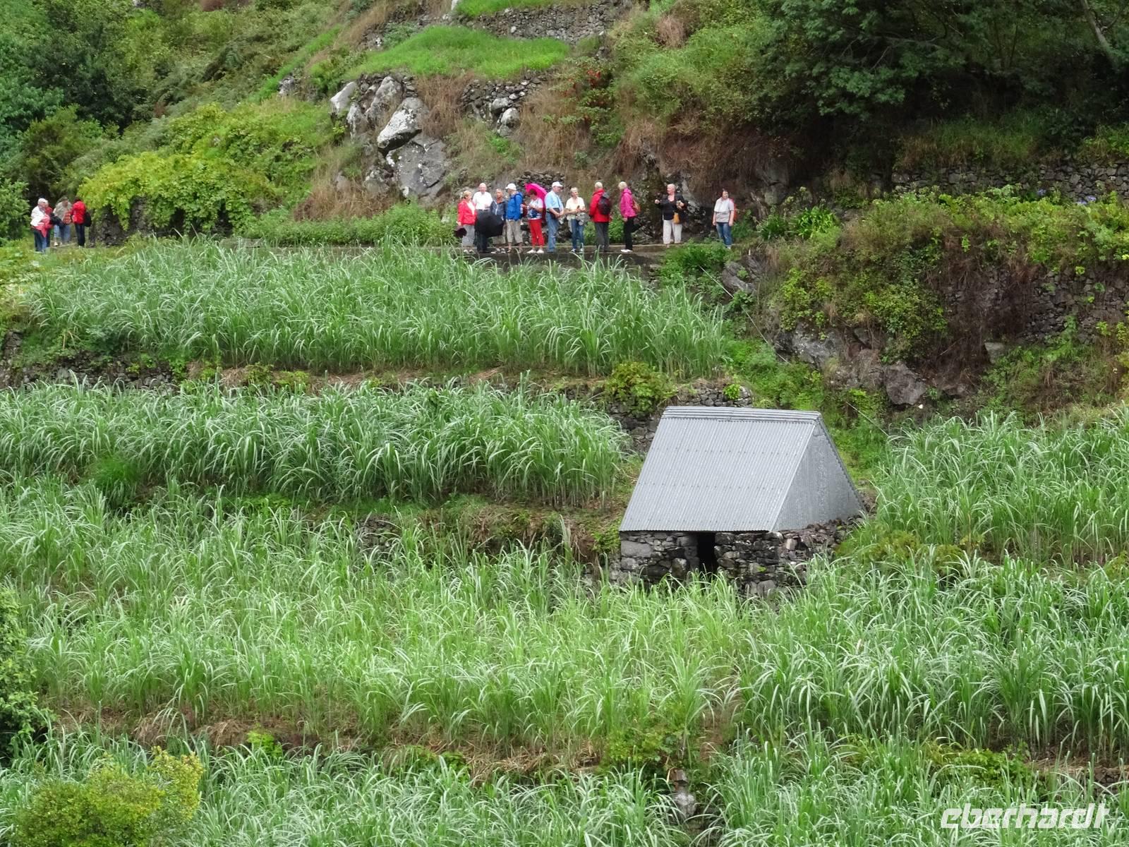 Zunächst brachte uns der Bus zum Ausgangspunkt der Wanderung oberhalb von Machico, der zweitgrößten Stadt Madeiras. Die Levadas sind künstlich angelegte und für Madeira charakteristische Bewässerungskänäle. Sie dienen dazu, die niedergelegenen Terrassenfelder mit Wasser zu versorgen. Heute umfasst dieses Bewässerungssystem Kanäle in einer Gesamtlänge von 2150 Kilometern. Entlang dieser Levadas schlängeln sich kleine Wanderwege, welche zu einem Spaziergang einladen. Natürlich für uns ein "Muss".