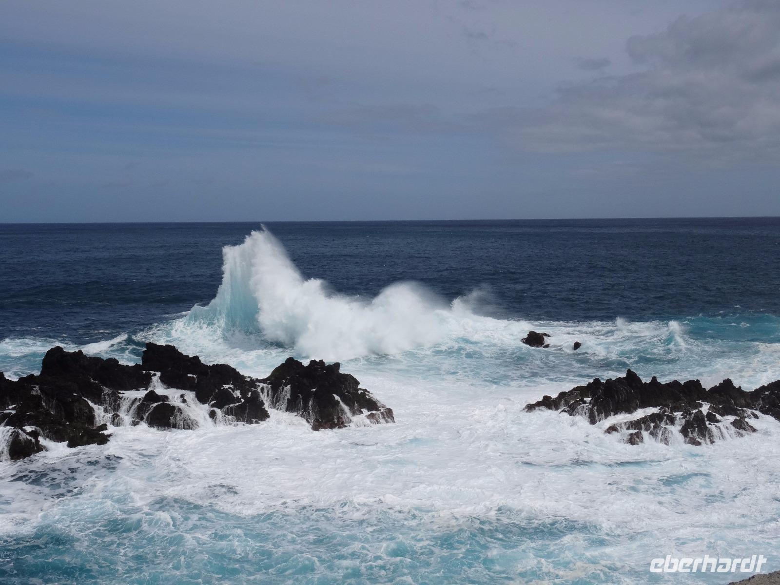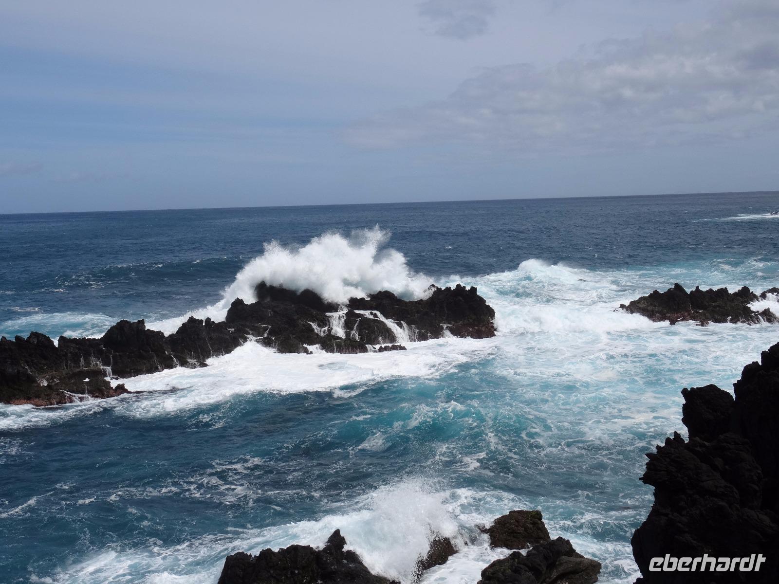 Nach einem Fotostopp mit Blick erster Klasse auf Porto Moniz, erreichten wir dann die Stadt im äußersten Nordwesten der Insel. Sie ist bekannt für ihre bezaubernd angelegten "Lava Pools". Das Meer zeigte sich heute von seiner stürmischen Seite und lieferte so bei leichtem Sonnenschein wundervolle Fotomotive . Wir waren so gefesselt, dass wir am liebsten noch geblieben wären, "aber der Wagen der rollt"...