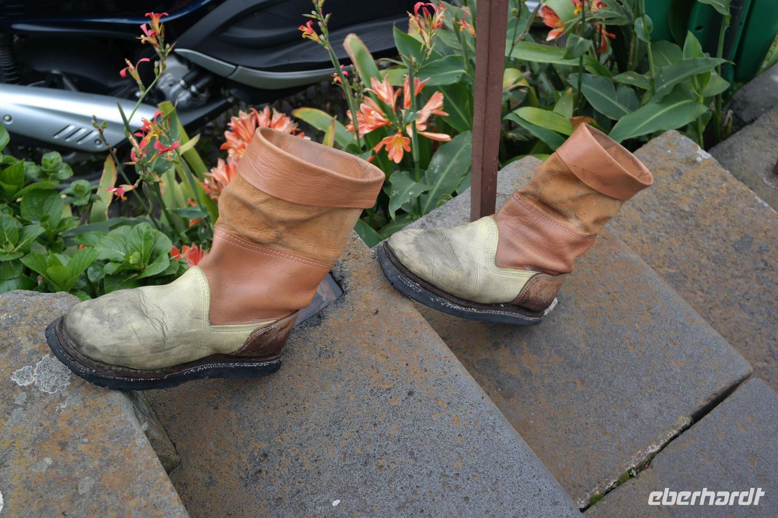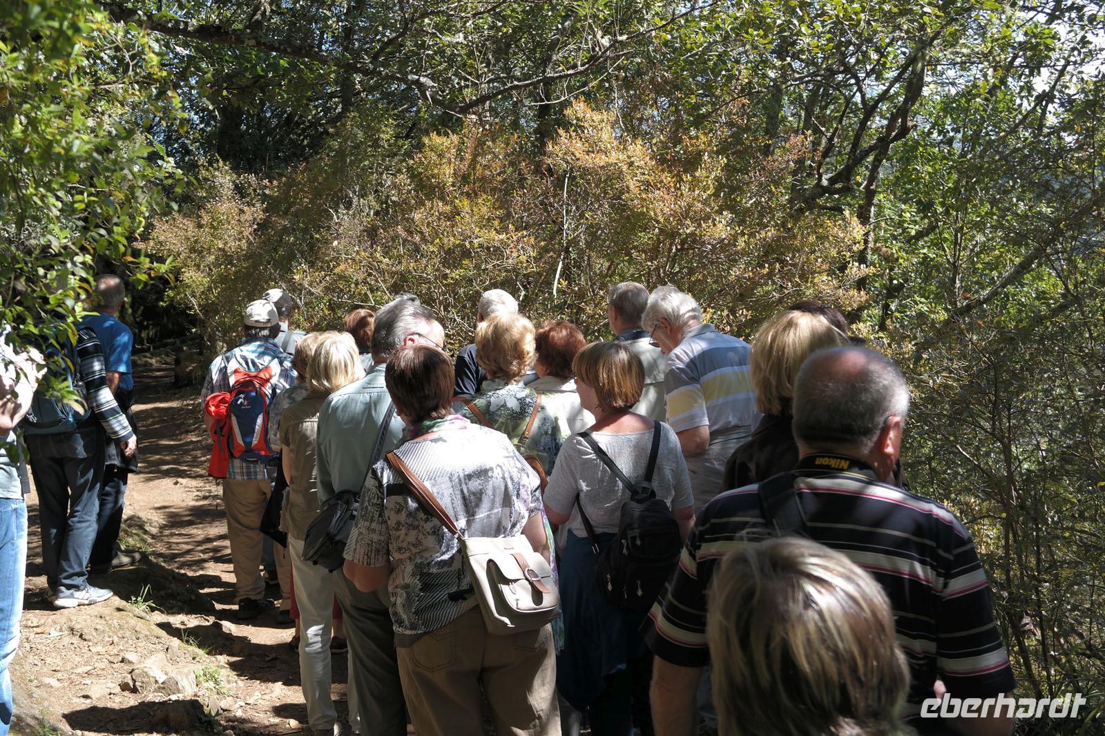 Für heute haben wir uns eine schöne Wanderung entlang einer Levada vorgenommen. Unweit von Machico im Osten der Insel bestaunen wir die üppigen Terrassenfelder und Mini-Gärten, die in mühe-voller Handarbeit gepflegt werden. Die „Luxusvegetation" lässt uns vor Neid erblassen - hier wächst alles, wirklich alles (außer Zitrusfrüchte), wird doppelt so groß und Gemüse erfreut mit bis zu drei Ern-ten im Jahr. Wir sind fasziniert und nach durchschnittlich 2 Stunden am Ziel der Wanderung. Die „Nachhut" lässt es gemütlicher angehen und erreicht respektabel den vereinbarten Treffpunkt