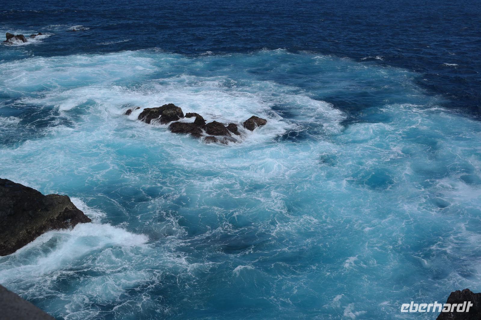 Auf dem Weg zu unseren heutigen Höhepunkten erzählt uns Marko wieder viel vom „normalen" Leben der Madeirenser. Auch der Zusammenhalt der Generationen und innerhalb der Familie steht auf der Insel hoch im Kurs. Über die Feiertage ist es üblich, die Familie zu „besichtigen" . Wir besichtigen „Ribeira Brava" mit der wunderschönen Kirche des Hl.Benedikts, fahren wunderschöne Serpentinen zum Encmeada-Pass hinauf, genießen bei strahlender Sonne das Hochplateau „Paul da Serra" und landen um die Mittagszeit im schroff-bizarren Felsen- und Lava-Labyrinth Porto Moniz. Der Atlantik ist heute eher ruhig, dafür lassen die starken Regenfälle der letzten Tage den „Brautschleier" und weitere Wasserfälle umso beeindruckender die Berge hinab in Richtung Meer schießen. Bei einem kleinen Madeira-Wein und Honigkuchen läuten wir den Abschied ein. Marco und Paolo (auch MarcoPolo) haben alles gegeben, uns die kleine Insel Madeira in unseren Herzen zu verewigen. Am Abend gönnen wir uns noch einmal die leckeren Spezialitäten aus der guten Küche Madeiras und beschließen unseren Aufenthalt mit Poncha (nicht Poncho - das war das Dings zum Anziehen!!).