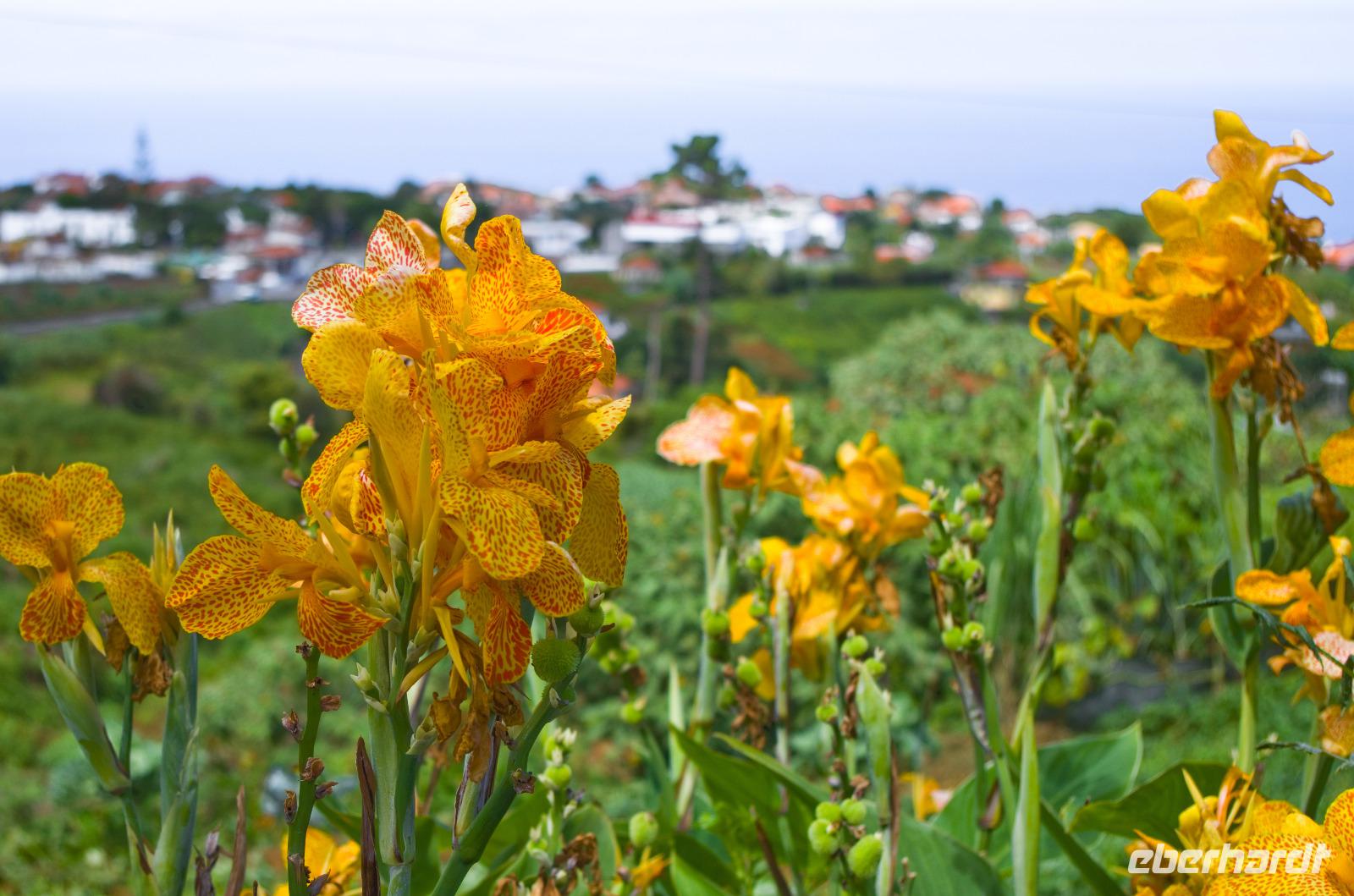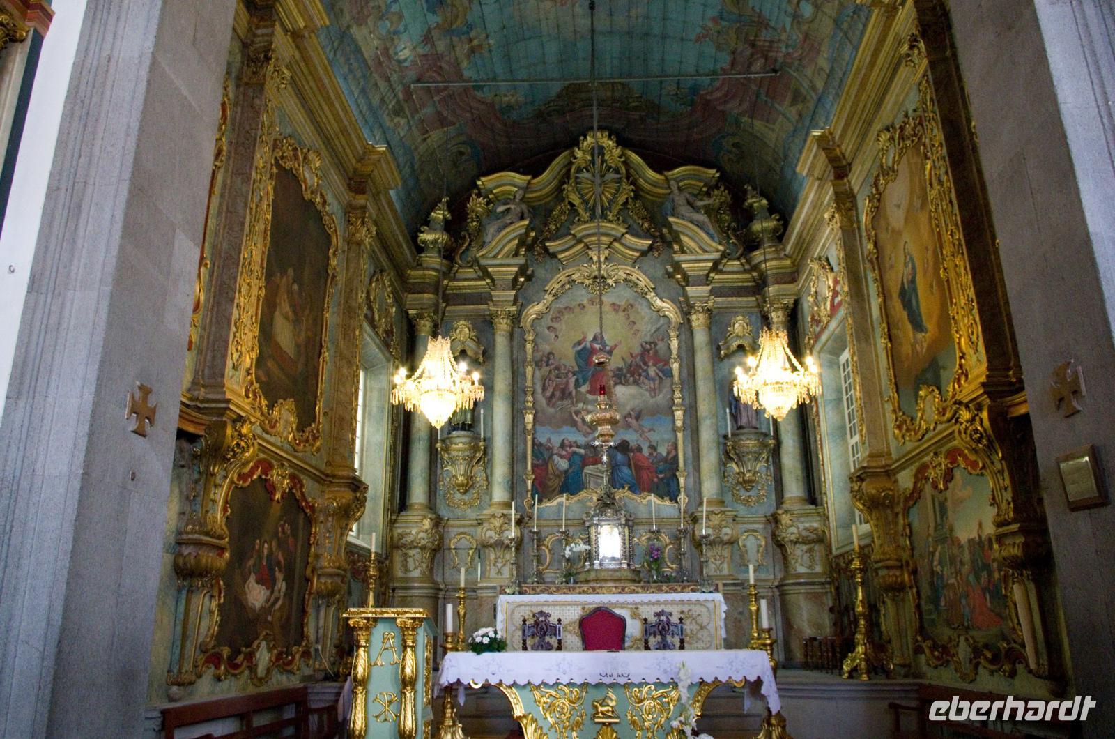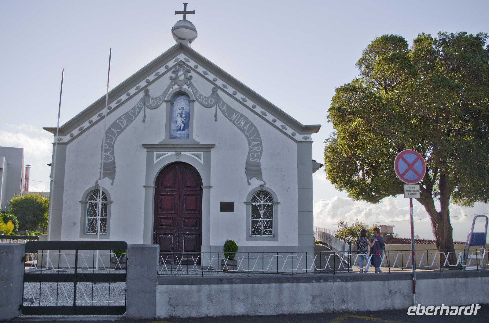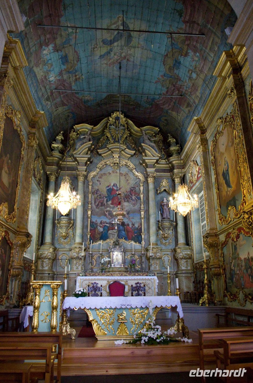 Von Seixal aus fahren wir weiter in Richtung Sao Vicente. Nun zieht sich die Steilküste ein Stück weit vom Meer zurück und öffnet sich zu einem breiten Tal, durch das der Rio do Sao Vicente fließt. Wir biegen in das Tal ein und nach ein paar hundert Metern erreichen wir den idyllischen Ort Sao Vicente. Helena führt uns zur schönen Kirche Igreja do Sao Vicente, deren Besuch sich allein wegen der vergoldeten Holzschnitzereien und Azulejos im Kirchenraum lohnt. Die den Kirchplatz umgebenen Häuser wirken fast wie von einer Postkarte entnommen - sauber und weiß gestrichen erstrahlen sie im Sonnenlicht und sind mit Blumen und Verzierungen geschmückt. Wir verabschieden uns von der Nordküste bei einem Bummel durch das pittoreske Örtchen Sao Vicente.