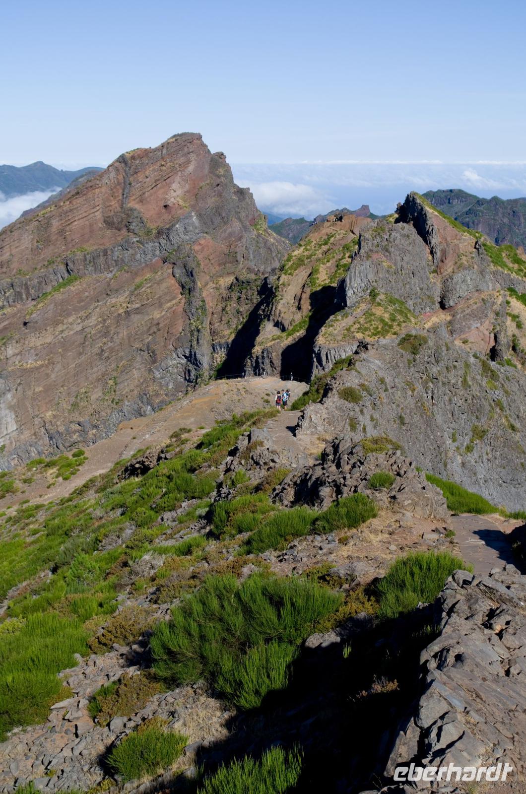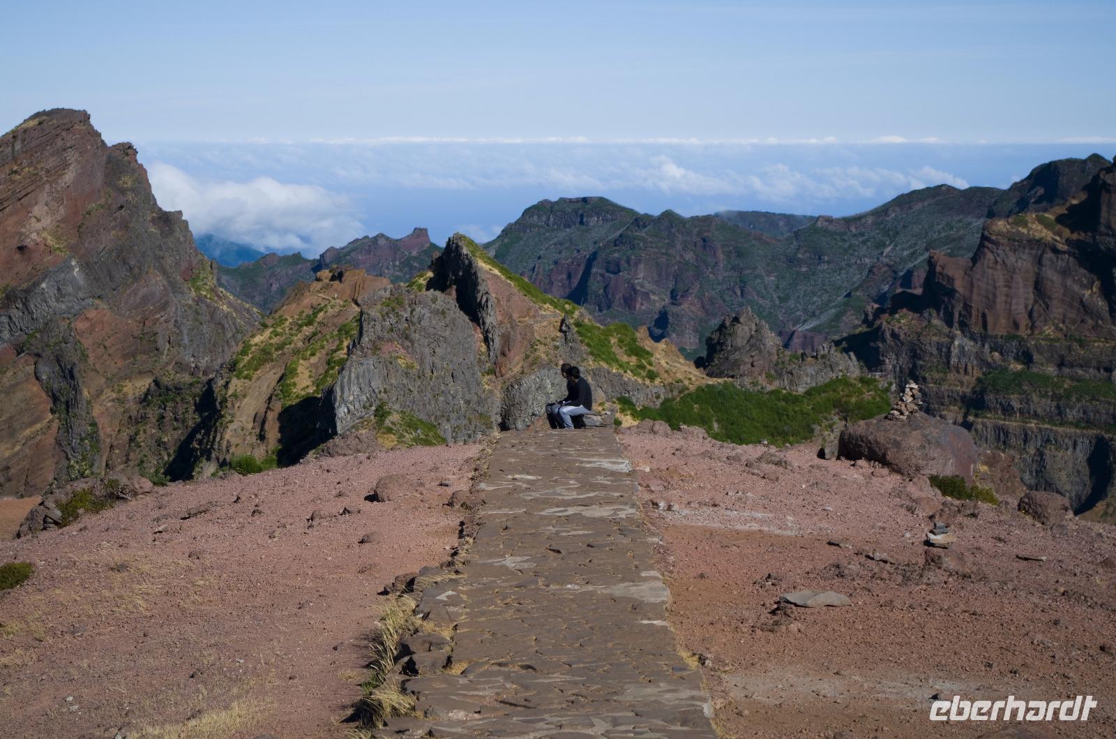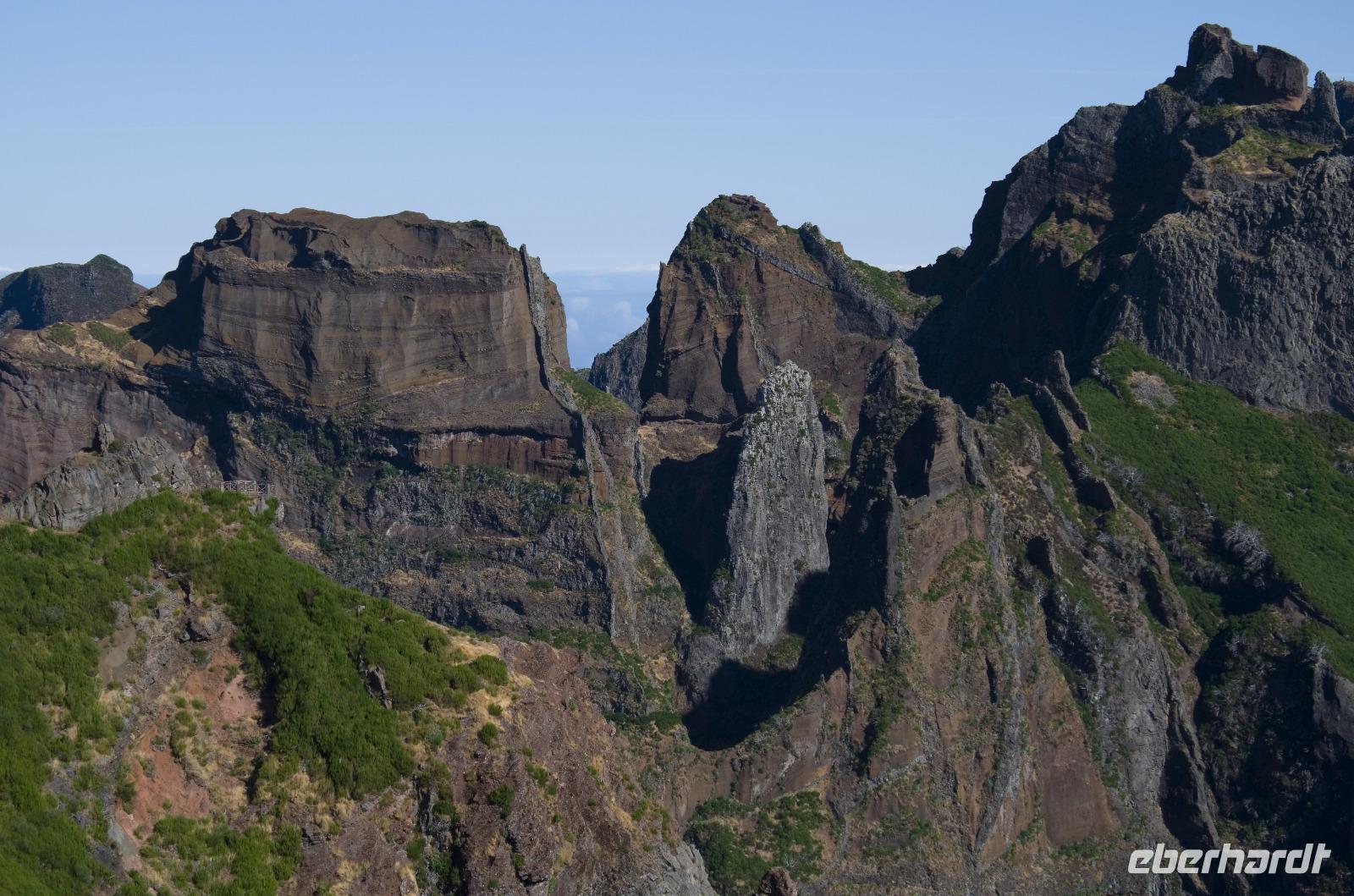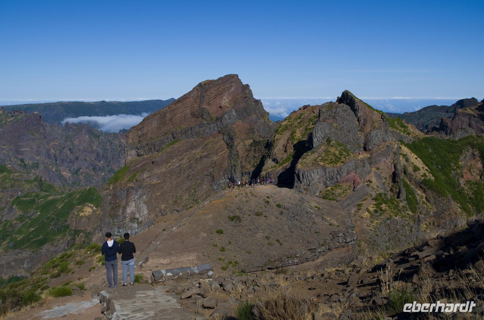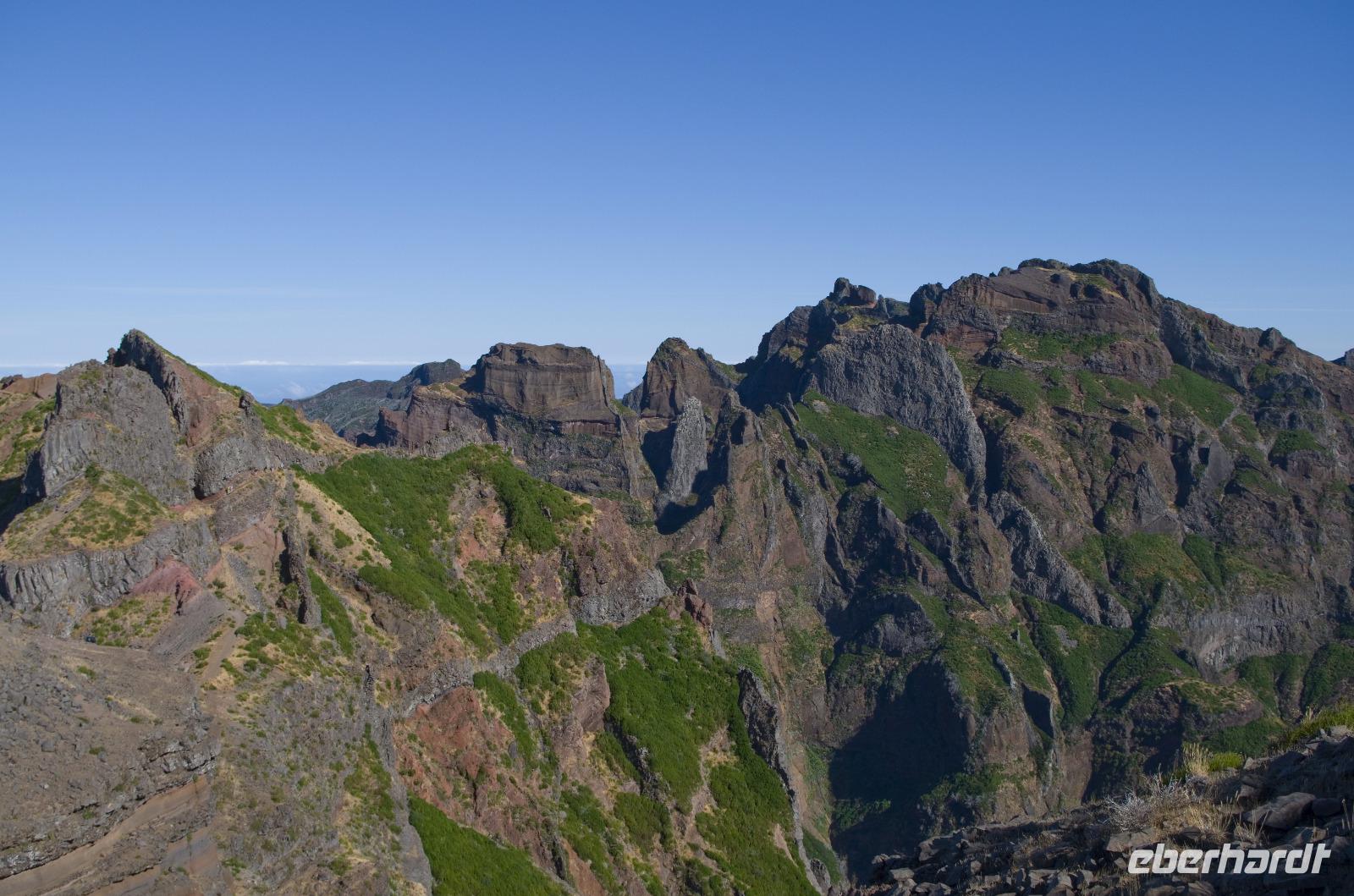 Weiter geht unsere Fahrt durch Wälder und Naturreservate nach Pico de Areiro, dem zweithöchsten Berg Madeiras. Helena steckt uns mit ihrer Begeisterung für das tolle Wetter an, denn wir haben eine ungetrübte Aussicht über die ganze Insel bei strahlendem Sonnenschein. So sehen wir auch schon heute aus der Ferne unsere Ziele der nächsten Tage: die Hochebene Paul de Serra, das Nonnental und die Nordküste Madeiras.