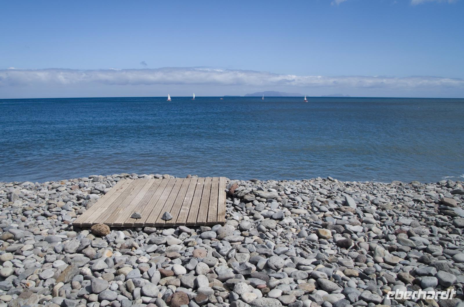 Wir laufen entlang der Rua de Mercado zur Bucht von Machico und spazieren entlang der Uferpromenade. Hier gibt es einen weniger besuchten schwarzen Steinstrand und in östlicher Richtung einen künstlich angelegten weißen Sandstrand. Nach unserem Bummel kehren wir in die Stadt zurück und besuchen die Kirche Nossa Senhora da Conceicao, in welcher sich das Grab von Tristao Vaz Teixeira befinden soll. Ihm selbst ist eine Statue auf dem Platz vor der Kirche gewidmet.