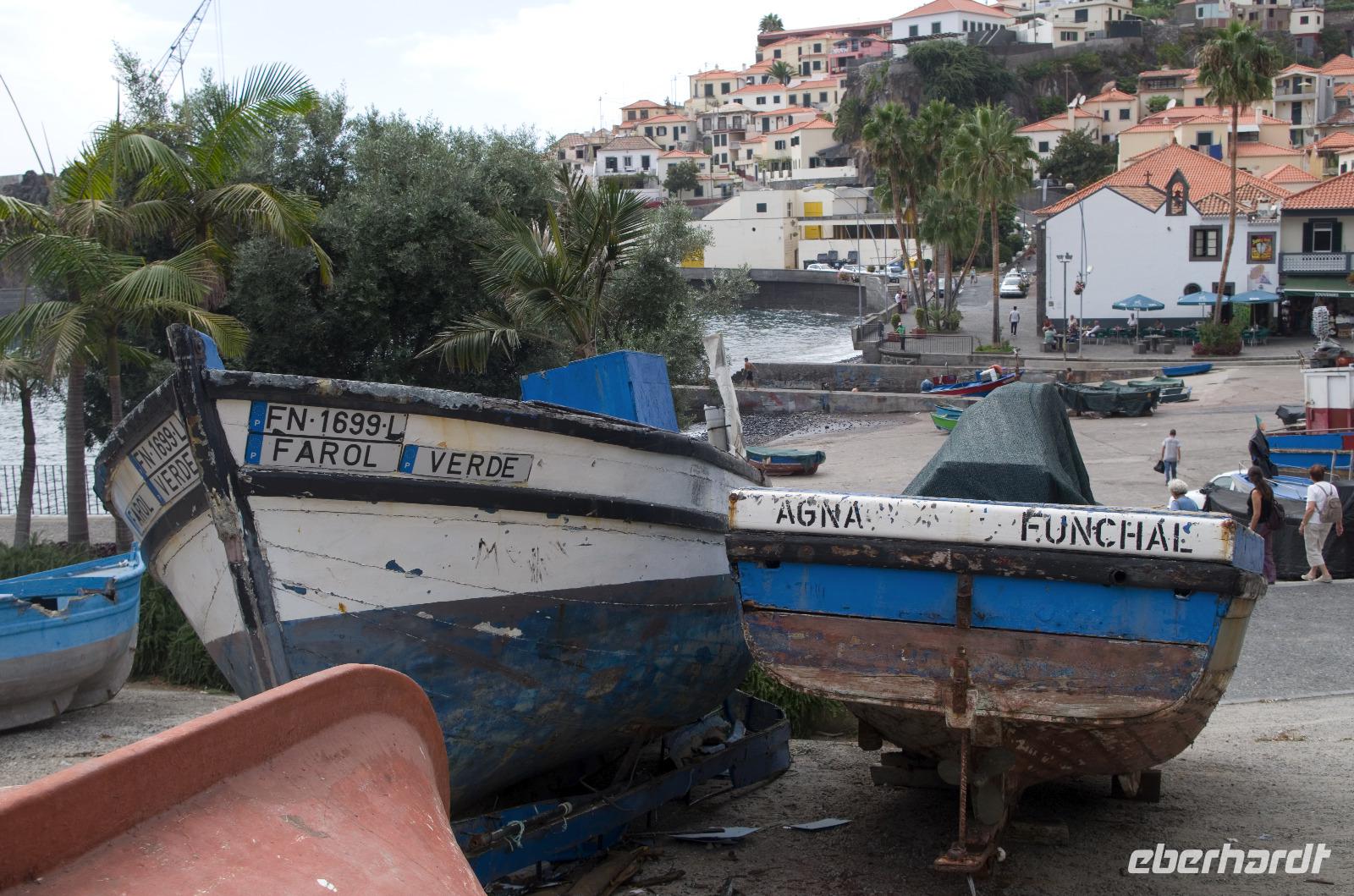 Wir überstehen diese Abenteuer alle unbeschadet und setzen unseren Weg fort. Francisco bringt uns nun zu seinem Heimatort Camara de Lobos, ein altes malerisches Fischerdörfchen an der Südküste Madeiras. Hier sehen wir den Fischern beim nachmittäglichen Kartenspielen und den Kindern beim Wellenreiten zu. Pittoresk liegen die Fischerboote vor uns in der Bucht, denn die Fischer fahren erst kurz vor Mitternacht aufs Meer, um den begehrten Degenfisch aus den Tiefen des Meeres zu holen. Wir besuchen die Kirche, in der die Fischer alltäglich ihr stilles Gebet an Maria, Fatima oder den heiligen Antonius richten und um einen guten Fang und eine glückliche Heimkehr bitten. Gleich neben der Kapelle sind die urigen Bars, in denen die Fischer das Erhören ihrer Gebete feiern, bevor sie nach Hause zu ihren Familien gehen. In einer solchen Bar genießen wir eine beliebte Erfrischung mit dem exotischen Namen Nikita - so exotisch wie der Name sind auch die Zutaten des Getränks: Weißwein, Bier, Ananassaft und Vanilleeis oder in der alkoholfreien Variante mit Kokosmilch, Ananas, Maracujasaft und Vanilleeis. Mit Blick auf den Hafen und umringt von Fischern mit ihren Familien schmeckt uns Nikita gleich doppelt so gut.