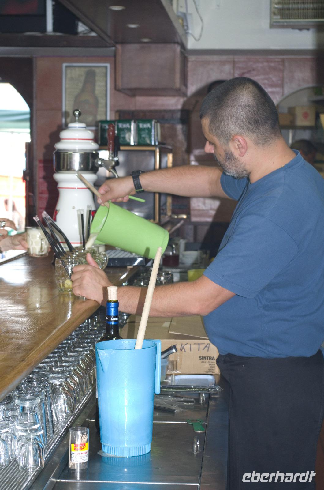 Am Abend treffen wir uns für das Spezialitäten-Abendessen Espetata, einem auf offenem Feuer gegrilltem Fleischspieß, im Restaurant A Central. Wir werden vom Besitzer persönlich mit einem Glas Madeira Wein begrüßt. Die Espetatas werden auf Metallgestängen aufgehängt und mit einer kleinen Zange Stück für Stück vom Spieß genommen. Dazu gibt es Knoblauchbrot, Salat oder Gemüse, Kartoffeln und Reis mit schwarzen Bohnen. Am Nebentisch sitzen Gäste des Kreuzfahrtschiffes AIDA, die ihren Landgangausflug sehr zu genießen scheinen und so kommen wir schnell ins Gespräch. Wir freuen uns, dass wir im Gegensatz zu ihnen die Insel nicht morgen schon wieder verlassen müssen und darauf stoßen wir zum Abschluss mit einem Glas vom madeirensischen Zuckerrohrschnaps an. A nossa!
