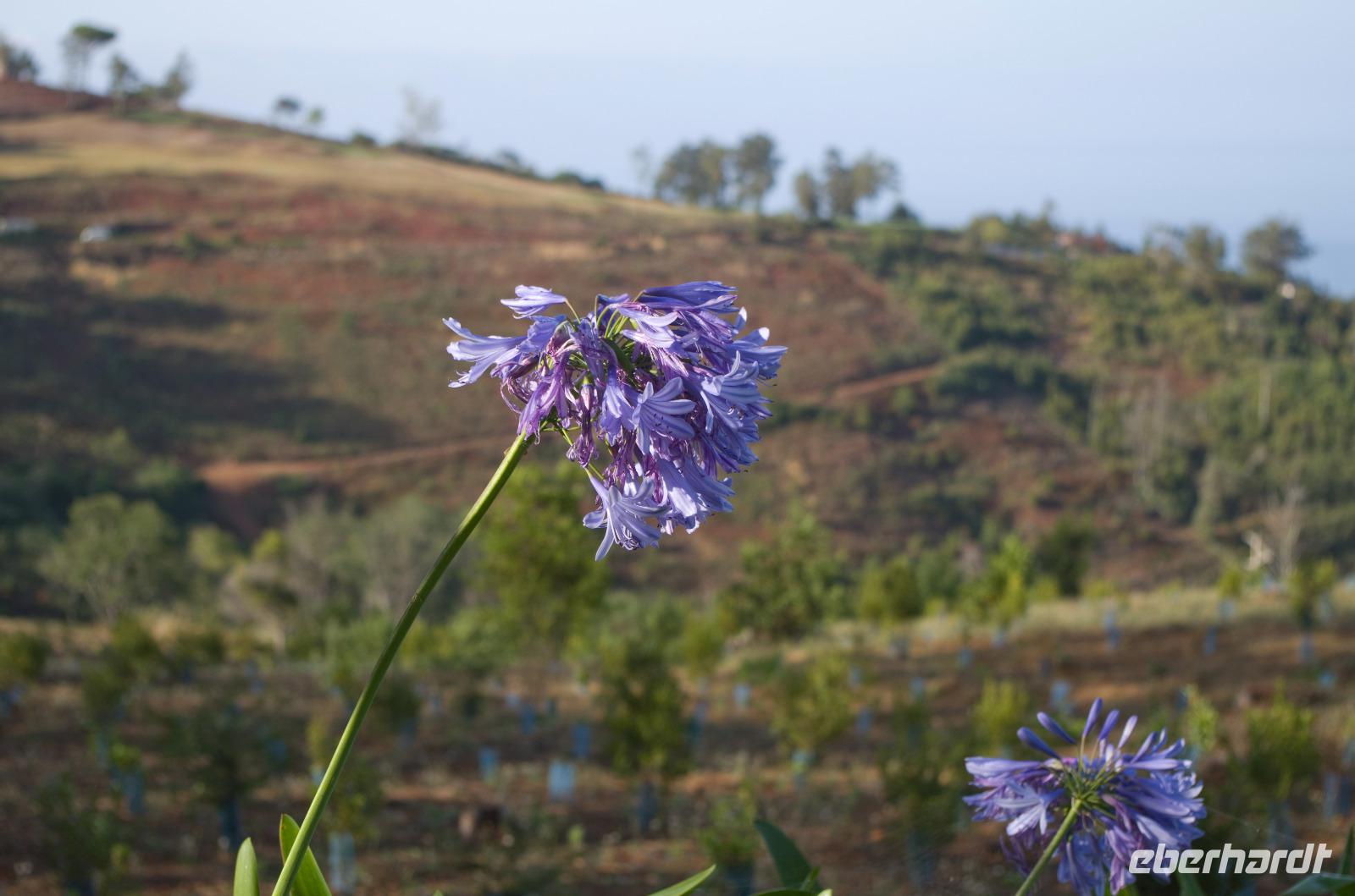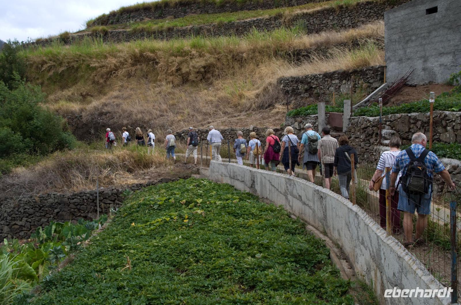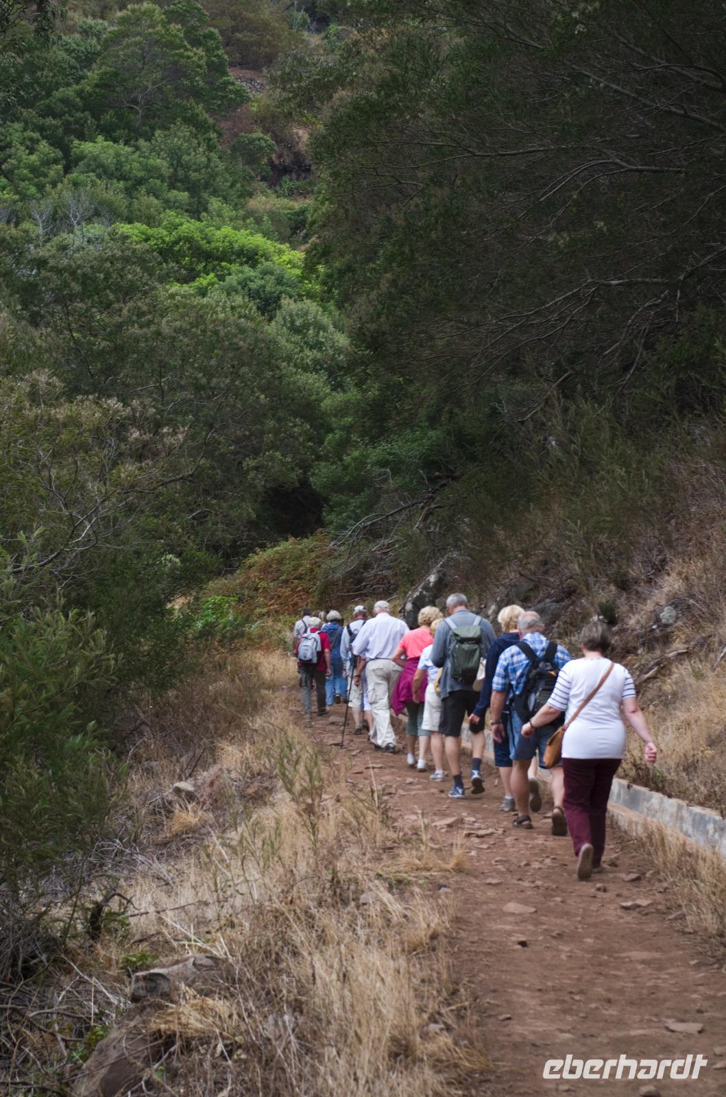 Doch nun wollen wir nicht länger Bus fahren, sondern die schöne Natur per pedes erkunden. Im Tal Ribeiro Frio beginnen wir unsere kleine Wanderung in der Nähe der Forellenzuchtstation. Wir wandern entlang einer Levada, einem typischen Wasserweg Madeiras, zum Aussichtspunkt Balcoes, wo wir uns wahrlich wie auf einem himmlichen Balkon fühlen, mit einer weiten Aussicht auf die uns umgebenden Berge und Täler. Zum Abschluss dieser Wanderung trinken wir einen erfrischenden Poncha, der von einer einheimischen Familie im Tal frisch für uns zubereitet wurde.