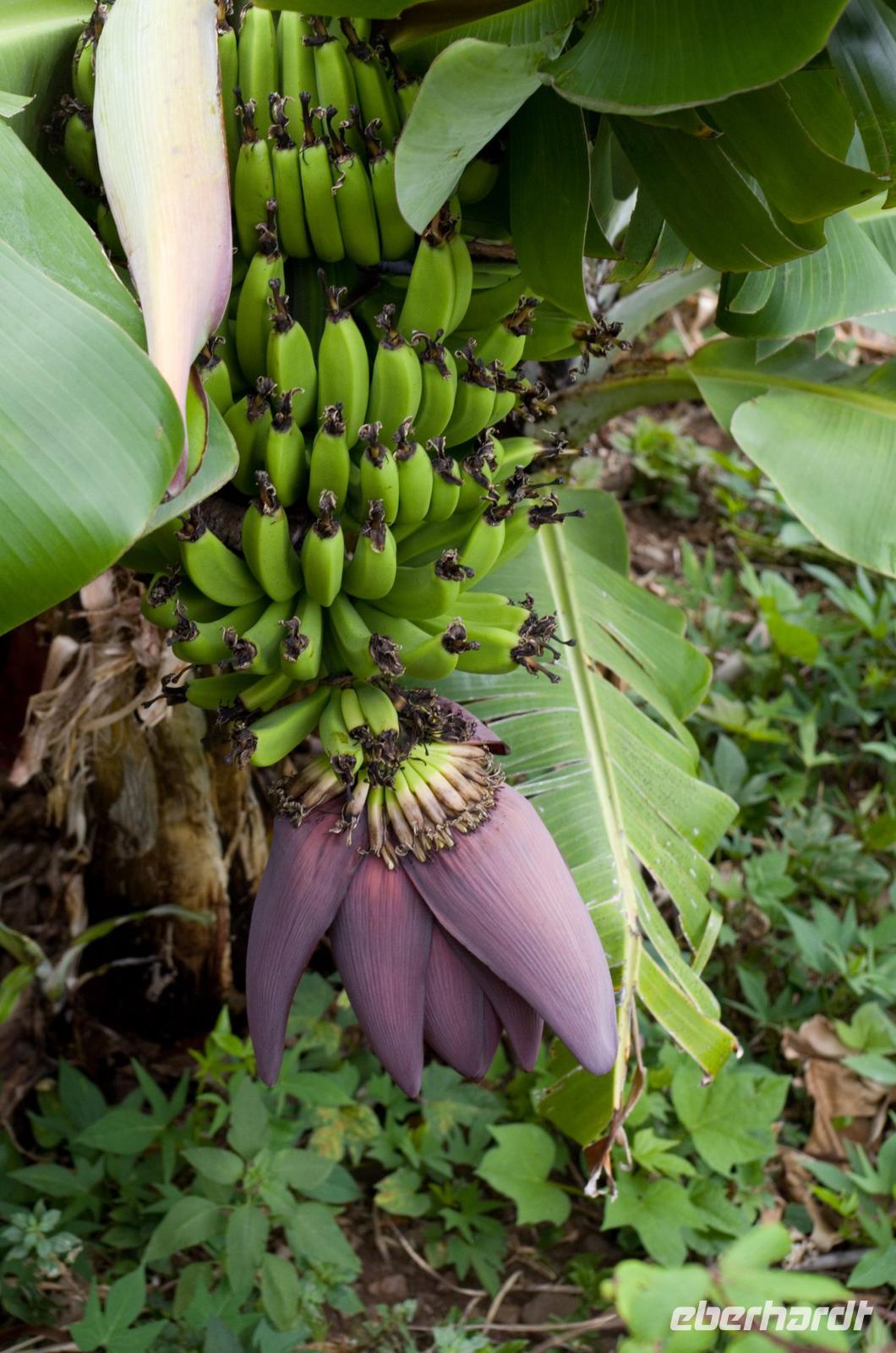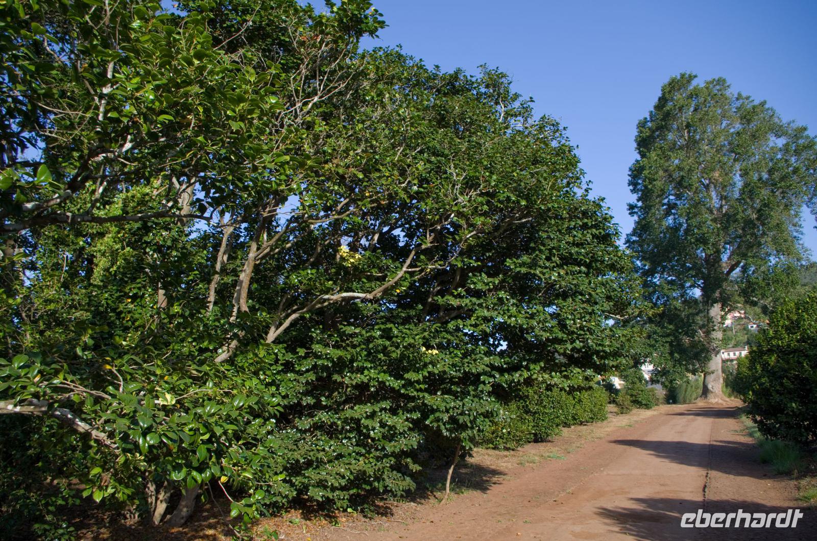 Der Vormittag steht uns heute zur freien Verfügung, doch der Großteil der Gruppe entscheidet sich für eine fakultative Wanderung im Osten der Insel. In einem kleinen Örtchen oberhalb von Machico beginnt unser Weg entlang der sprudelnden Levadas, terrassenförmigen Weinhängen, grünen Wäldchen und kleinen Bauernhütten. Der Himmel ist heute meist bedeckt, doch ab und an blitzt die Sonne durch, sodass wir ein lebendiges Spiel aus Licht und Schatten auf den Hügeln und Hängen entlang unseres Wanderweges erleben. Da der Weg zwar schmal, doch relativ eben ist, kommen wir ohne große Anstrengungen gut voran. In den Wasserkanälen finden wir schimmernde Muscheln und entlang des Pfades allerlei interessante Pflanzen. Kannten Sie vorher einen Dieselbaum?