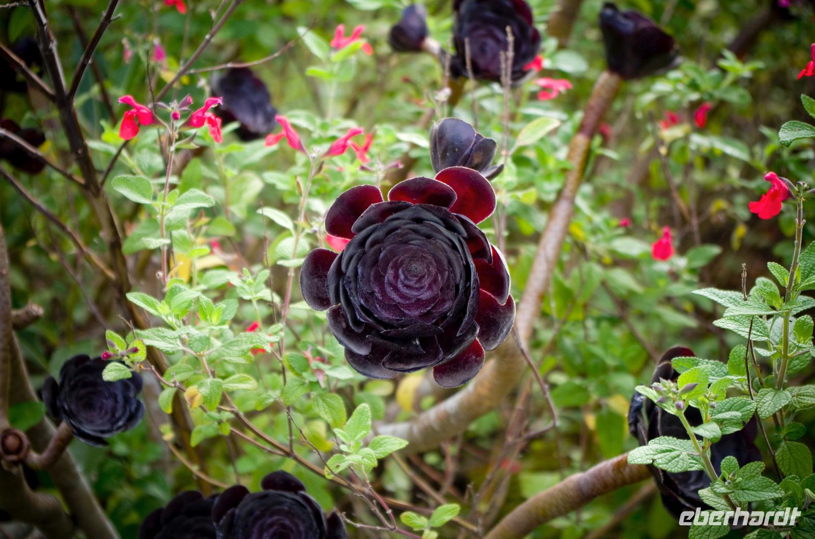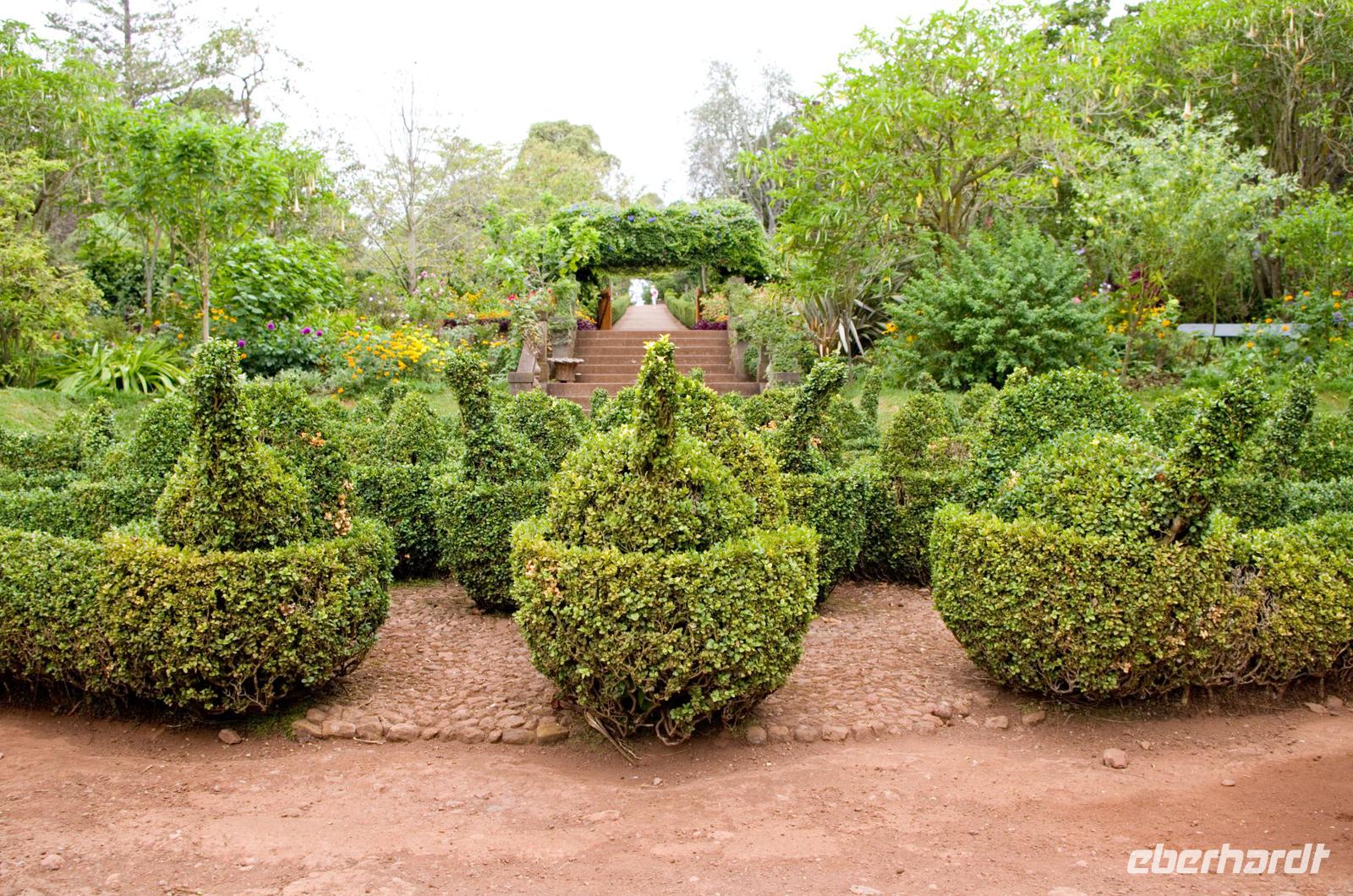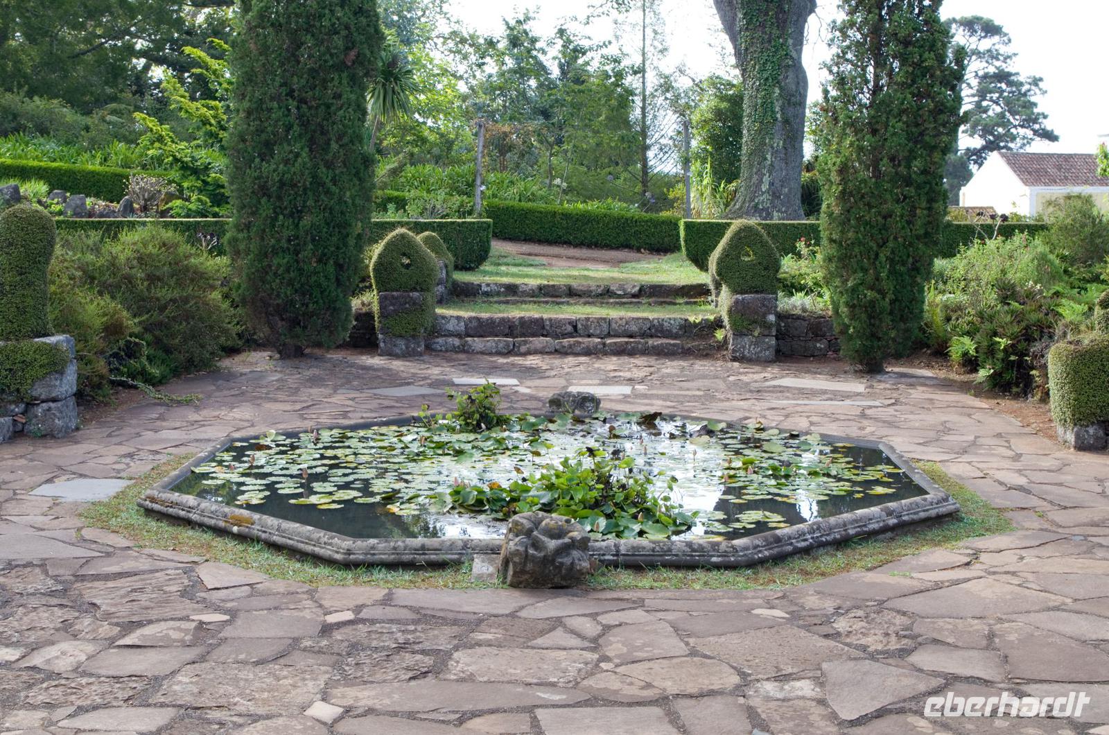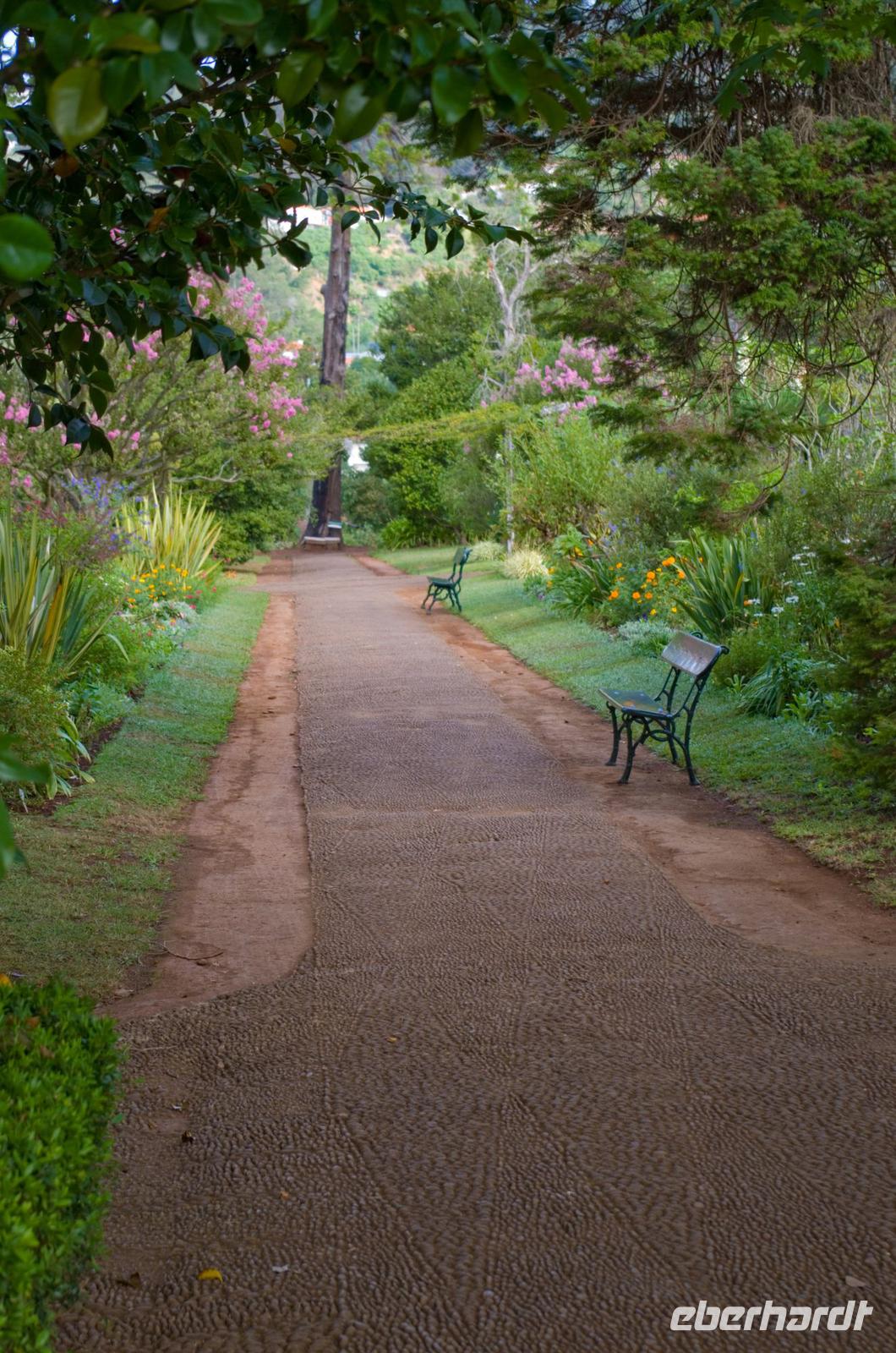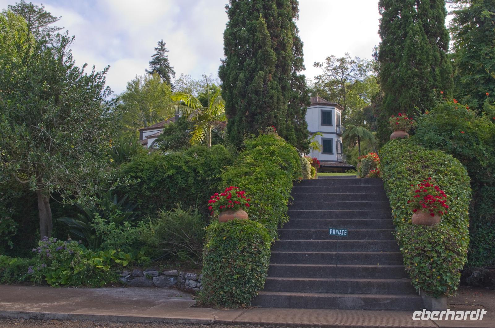 Der heutige Tag steht unter dem Motto „Die Gärten Madeiras" und führt uns zunächst durch steile Straßen und enge Gassen zu den Palheiro Gardens, eine subtropische Gartenanlage 500 Meter über dem Meeresspiegel zwischen Funchal und Camacha. Die Anlage wird von den Einheimischen auch Blandy's Garten genannt, da die Familie Blandy 1885 das Gelände vom hoch verschuldeten und spielsüchtigen Grafen von Carvalhal erwarb. Sie ließ neben dem Herrenhaus des Grafen ein zweites großes Herrenhaus errichten, dass die Familie bis heute bewohnt. Um diese Villa rankt sich ein wunderschöner englischer Garten, durch den wir mit Helena spazieren. Es scheint als kenne sie jede Pflanze und jeden Baum auf dem gesamten Gelände. Das Herrenhaus des Grafen dient heute als Hotel, besonders beliebt bei internationalen Golfspielern, die den Charakter des Anwesens und den nahegelegenen Golfplatz besonders schätzen.