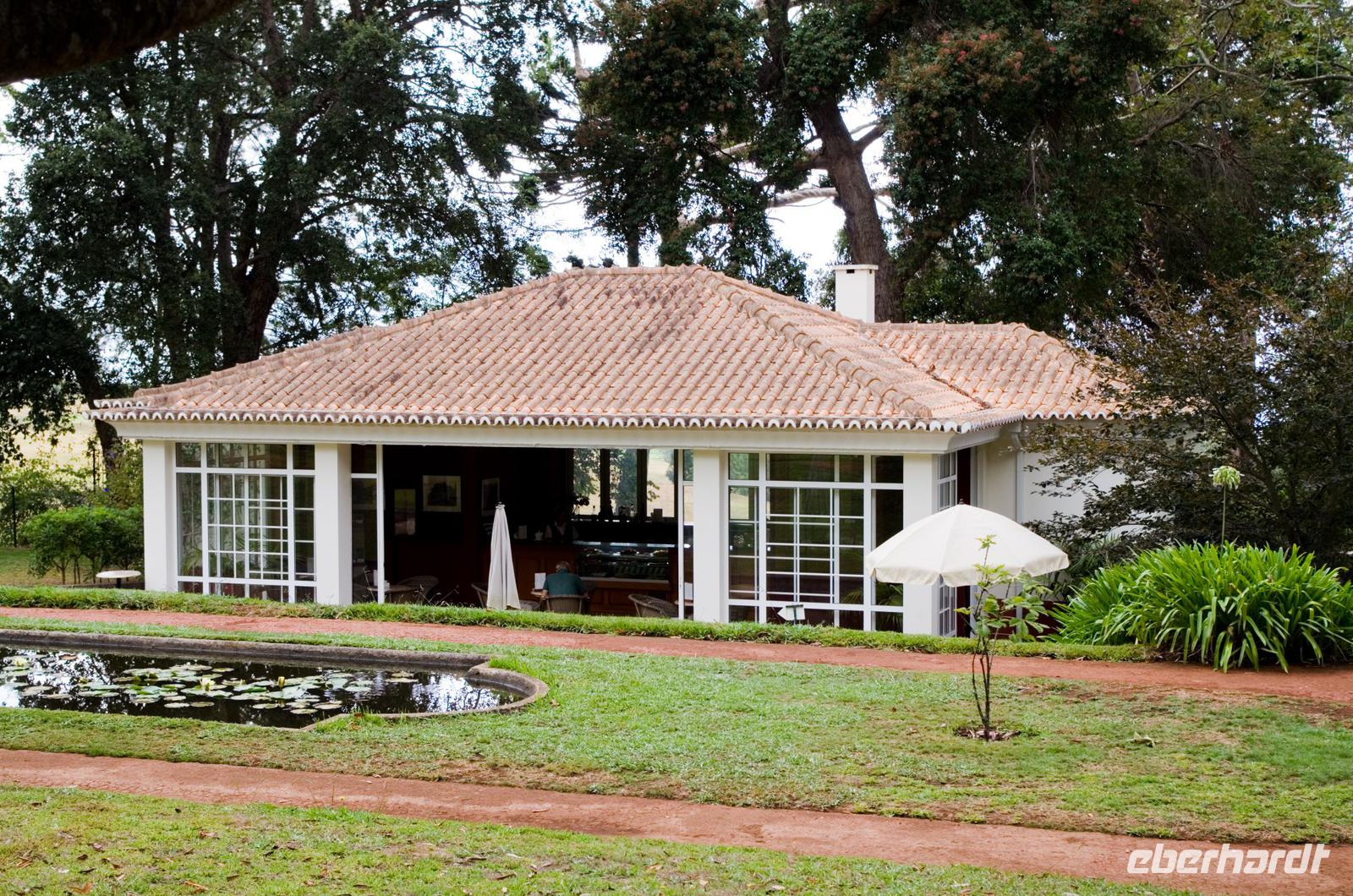 An der Snackbar Jacaré legen wir eine wohlverdiente Rast ein, bevor wir uns an den kurzen aber steilen Abstieg wagen. Dort unten im Tal können wir schon unseren weißen Bus mit den grünen Ranken und unseren Busfahrer Francisco erkennen, der uns nun wieder zu unserer Quinta Splendida bringt.