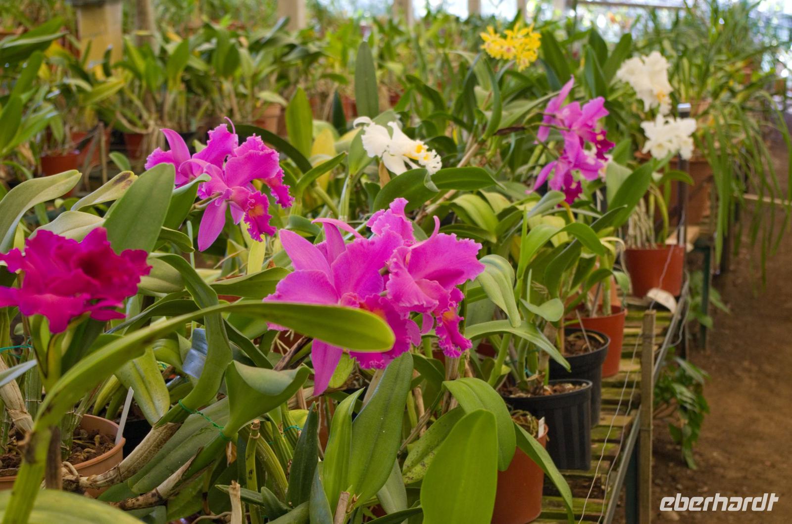 Da der Jardim Orchidea in Funchal leider dem Waldbrand zum Opfer gefallen ist, besuchen wir heute eine private Orchideensammlung und Züchtung in der Quinta Boa Vista. Patrick, der Besitzer, führt uns durch seine Gewächshäuser und zeigt uns seltene Exemplare seiner Sammlung. Wir kommen aus dem Staunen nicht mehr hinaus, hier gibt es sogar Orchideen, die am Morgen nach Vanille und am Nachmittag nach Schokolade duften. Der Blick von der blumenumrankten Terrasse hinab auf Madeiras Hauptstadt ist allein schon einen Besuch wert. Patrick, ein leidenschaftlicher Botaniker, gibt uns viele nützliche Tipps für die heimische Orchideen-Pflege und verrät mir, dass meine Lieblingsorchidee in der Sammlung eine Züchtung seiner Mutter ist. Sie habe noch keinen Namen, aber wenn ich das nächste Mal zu Besuch komme, wird er mir einen nennen können.