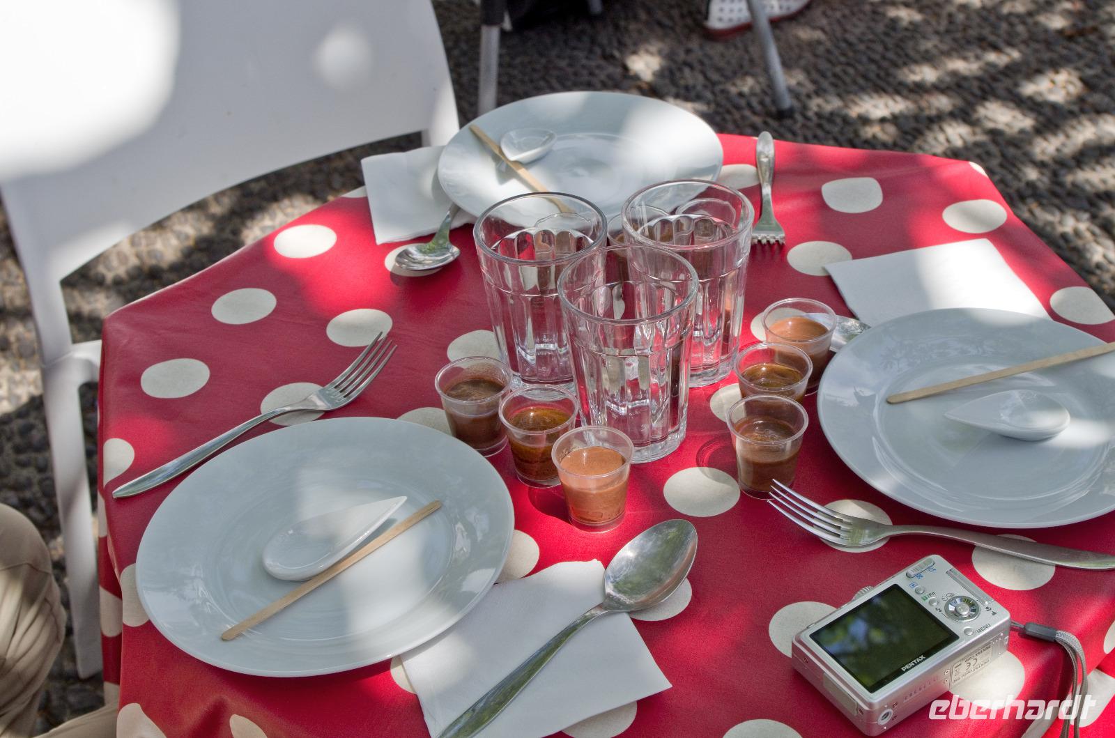 Stattdessen machen wir uns auf den Weg zu Maria Joao und ihrem Kräutergarten. Dort werden wir zu einem kulinarischen Vergnügen der Extraklasse geladen: Maria Joao stellt mit ihren Kräutern und Früchten handgemachte Schokolade her und lädt uns zu einer Verkostung ein. Auf einer Terrasse im Schatten von grünen Bäumen und blühenden Frangipani bekommen wir Madeira-Wein, Zuckerrohrschnaps und Likör gereicht, die mit edler Schokolade ergänzt werden. Zum jeweiligen Getränk gibt es zwei Tafeln einer passenden Schokolade. Den krönenden Abschluss dieser süßen Versuchung bildet ein Schokoladen-Fondue mit frischen Früchten und selbstgebackenem Schokoladenkuchen. Wahrlich,ein wahrer Hochgenuss!