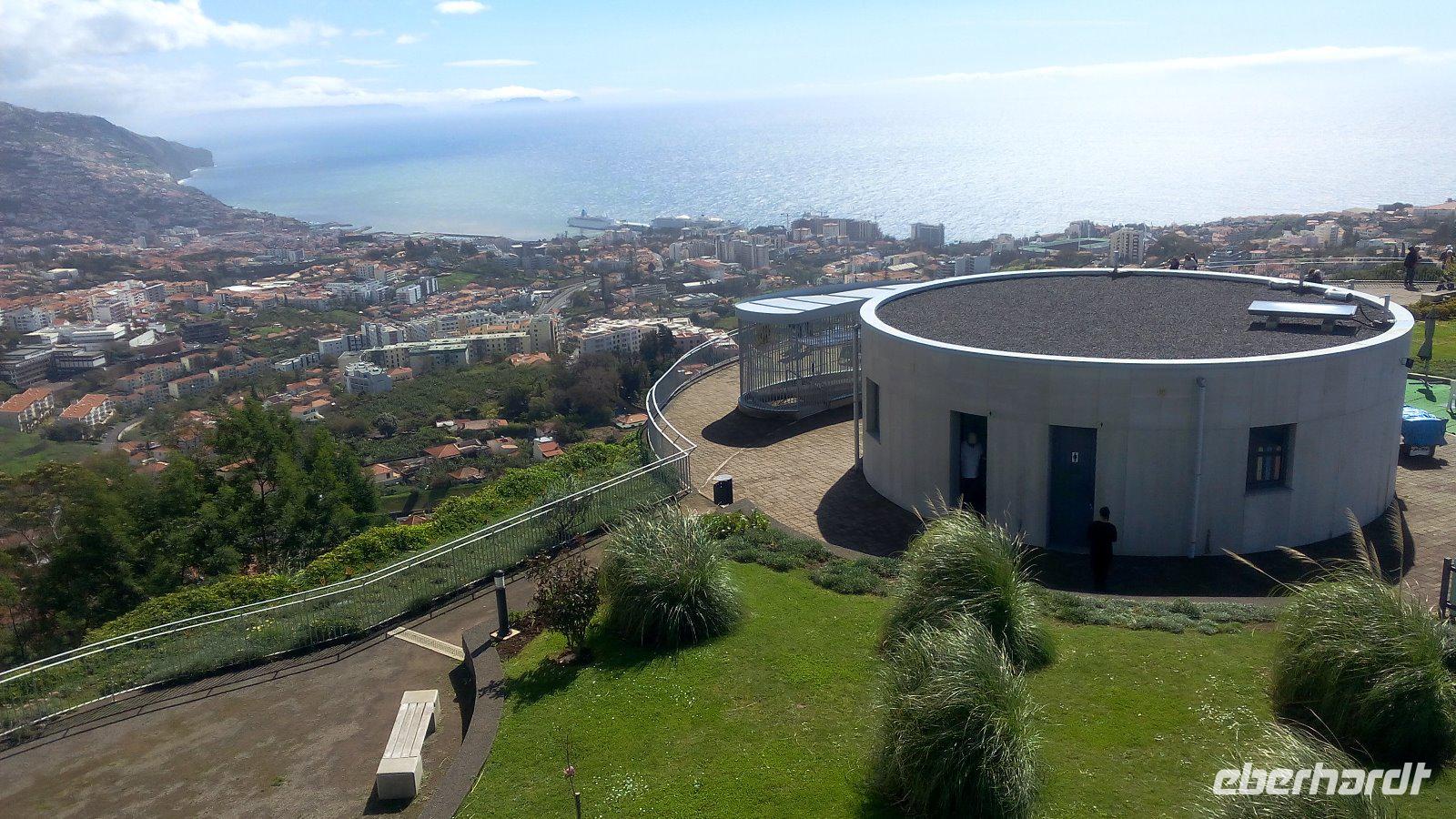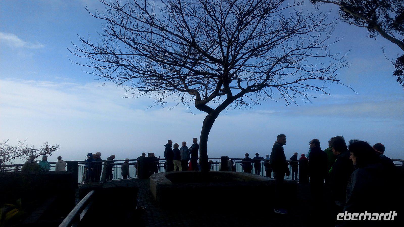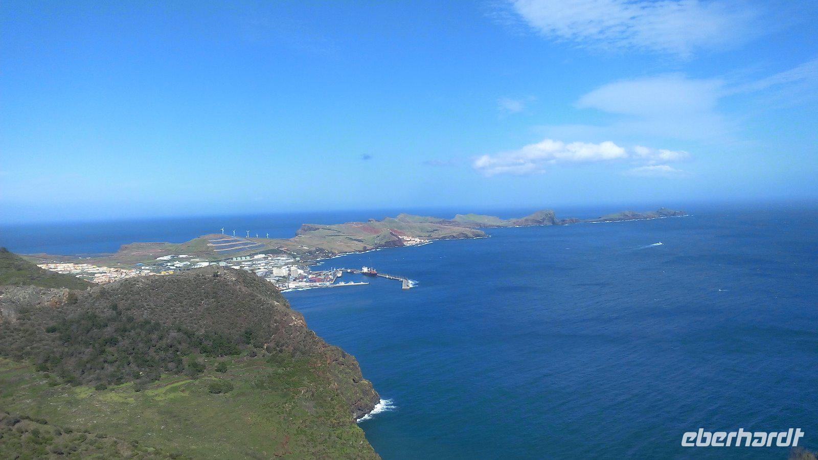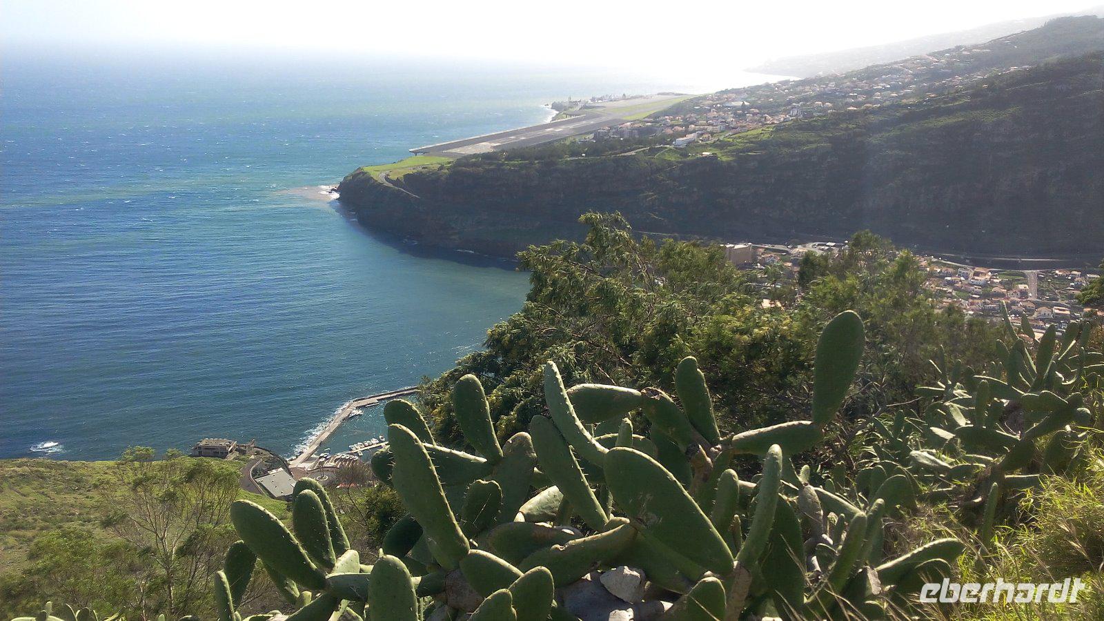 Unsere Fahrt zurück, führt uns entlang der Ostküste. Wir fahren über den Portela Pass und am Aussichtspunkt genießen wir die Sonne und den tollen Blick in die Berge. Anlass hier auch das Nationalgetränk den, Poncha zu probieren. Nach dieser Rast fahren wir Richtung Machico. Unser Ziel ist der Aussichtspunkt Pico do Facho, mit seiner 322m hohen Kuppel. Von hieraus haben wir einen überragenden Blick über die Bucht von Machico . Der Pico do Facho heißt übersetzt Fakelberg, er hat seinen Namen von den Holzfeuern, die dort früher zur Warnung vor Piraten entzündet wurden.
