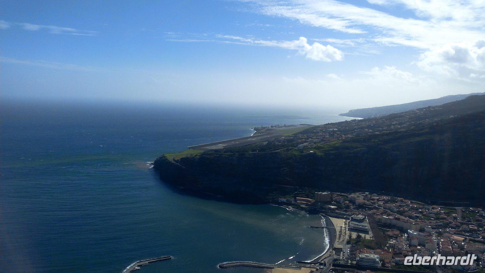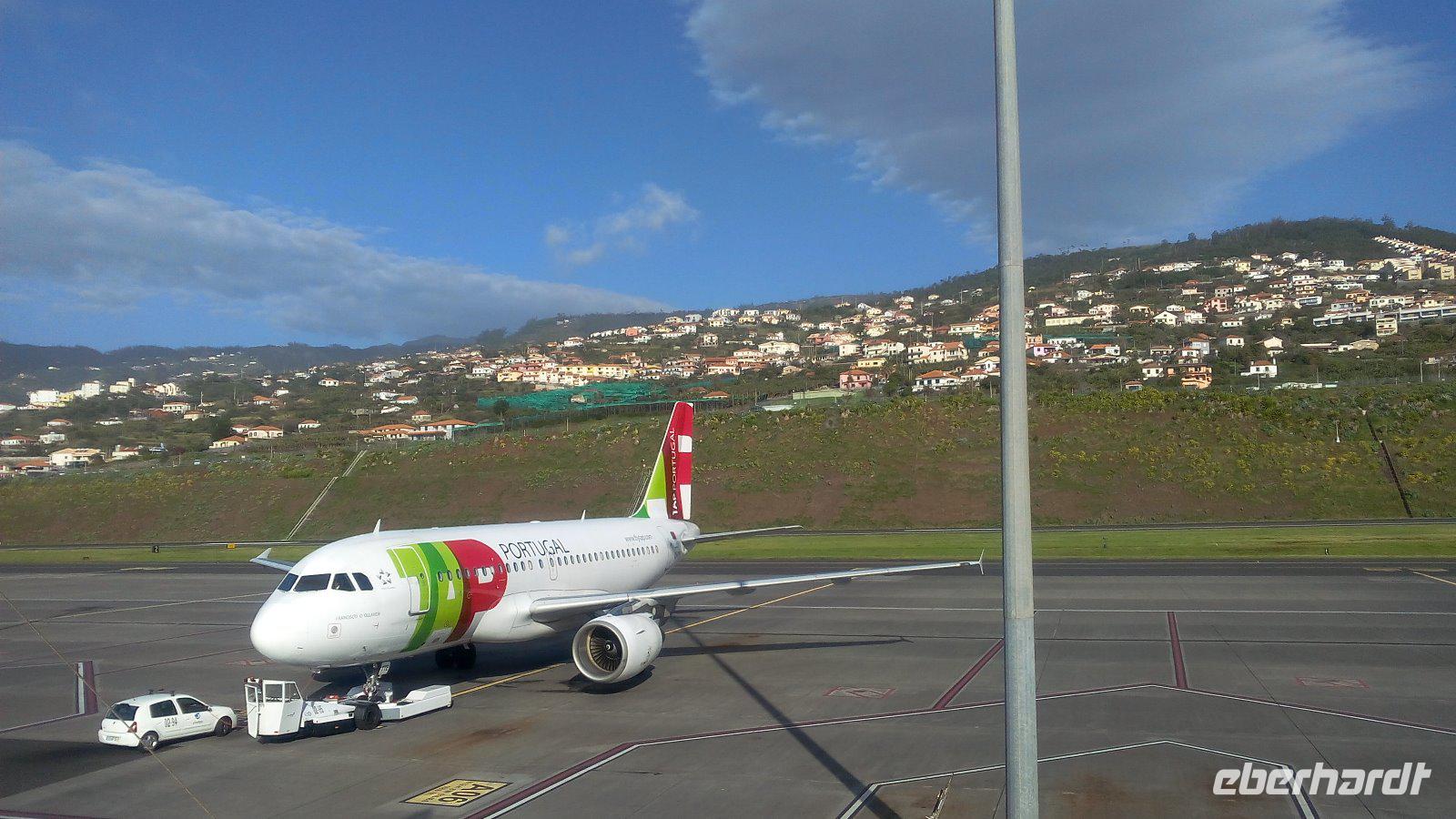 Wir treffen uns in einer kleinen Gruppe, wieder am Flughafen und nun beginnt auch unsere Reise. Wir fliegen mit der Germania von Dresden nach Funchal. Rund 4 Stunden und 40 Minuten. Unser Flug von Dresden ging Richtung Stuttgart, dann über die Schweiz, Richtung Bern und den Genfer See. Nachdem wir über die Pyrenäen flogen, ging es Richtung Lissabon und dann ca. 1000 km über den Atlantik bis zur Insel Madeira.