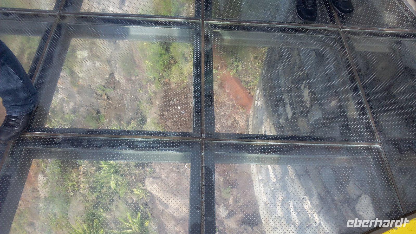 Nach dem Frühstück warten Bruno und Marco wieder auf uns. Wir haben heute eine gute Sicht und fahren als Erstes zu einer der steilsten Klippen Europas der -Cabo Girao - Auf der Fahrt dahin und später immer wieder, bewundern wir den Straßenbau auf der Insel. Wir kommen schnell zur Steilklippe, die 580 Meter aus dem Meer hochragt. Wir stehen auf der gesicherten Plattform und blicken in die schwindelerregende Tiefe. Danach fahren wir weiter