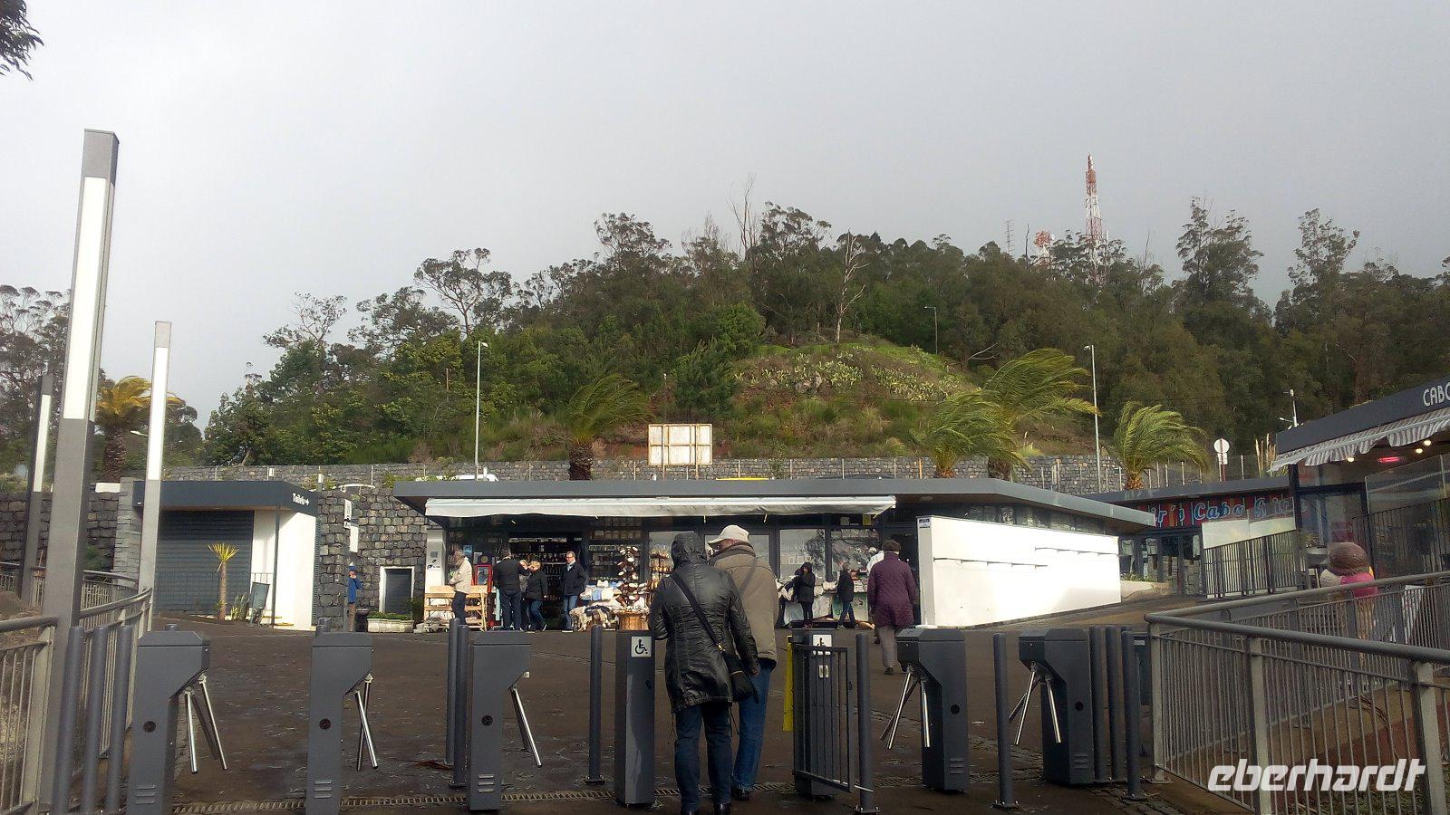 Mit dem Bus fahren wir nach unserer Schlittenfahrt Richtung Nonnental (Curral das Feiras), der einstige Zufluchtsort der Nonnen. Der Ort entstand, als sich Mönche vor französischen Seeräubern versteckten. Der Weg verläuft sehr kurvig und ist teilweise sehr schmal. Bruno meistert die Fahrt mit Bravur. Auf der Aussichtplattform angekommen, bietet sich wiederum die beeindruckende Bergwelt auf Madeira. Das Produkt von Nonnental sind Kastanien, wir probieren Kastanienkuchen, es gibt aber auch Kastanienlikör oder auch Kastanien Suppe. Der lokale Likör heißt Ginja, der aus Kirschen oder auch Kastanien hergestellt wird und probiert wird.