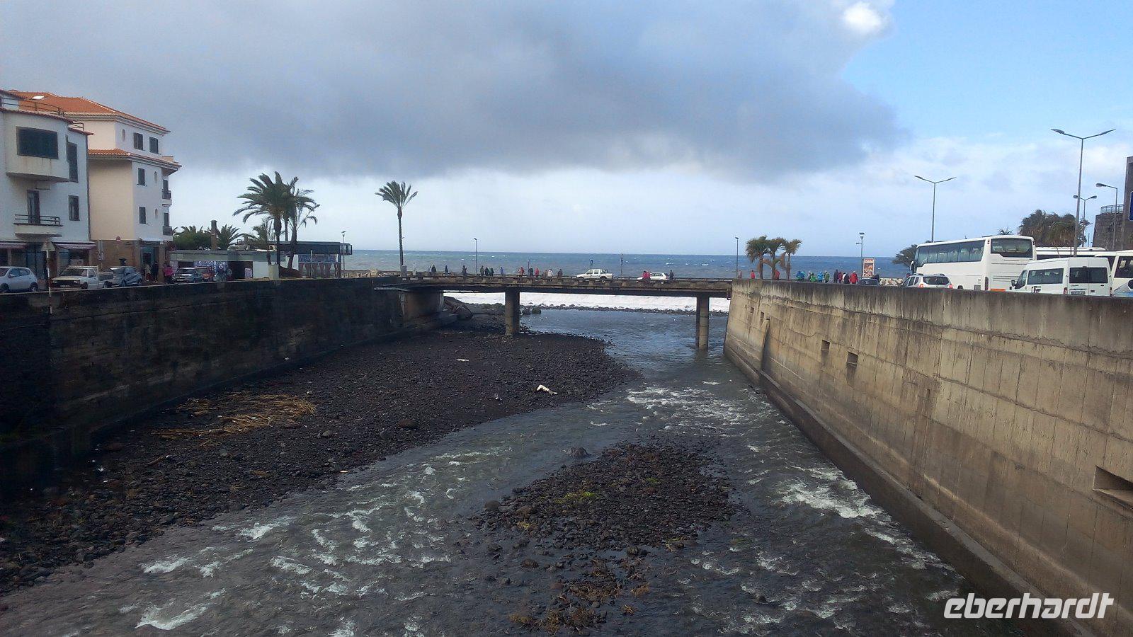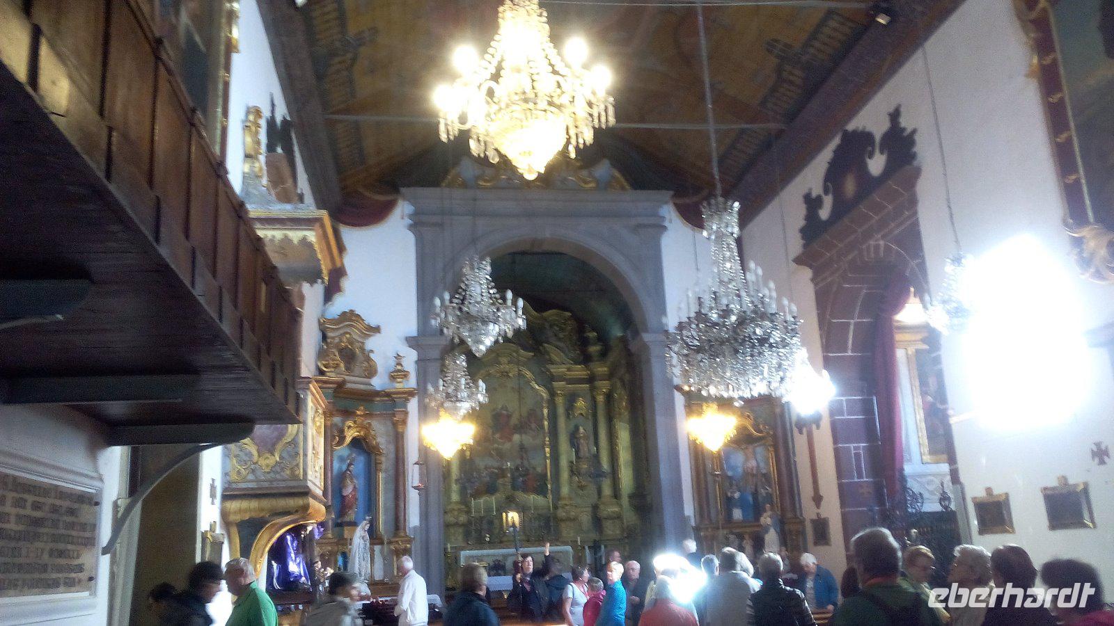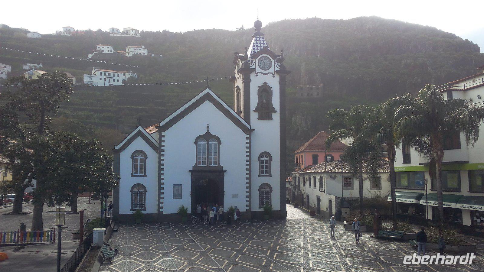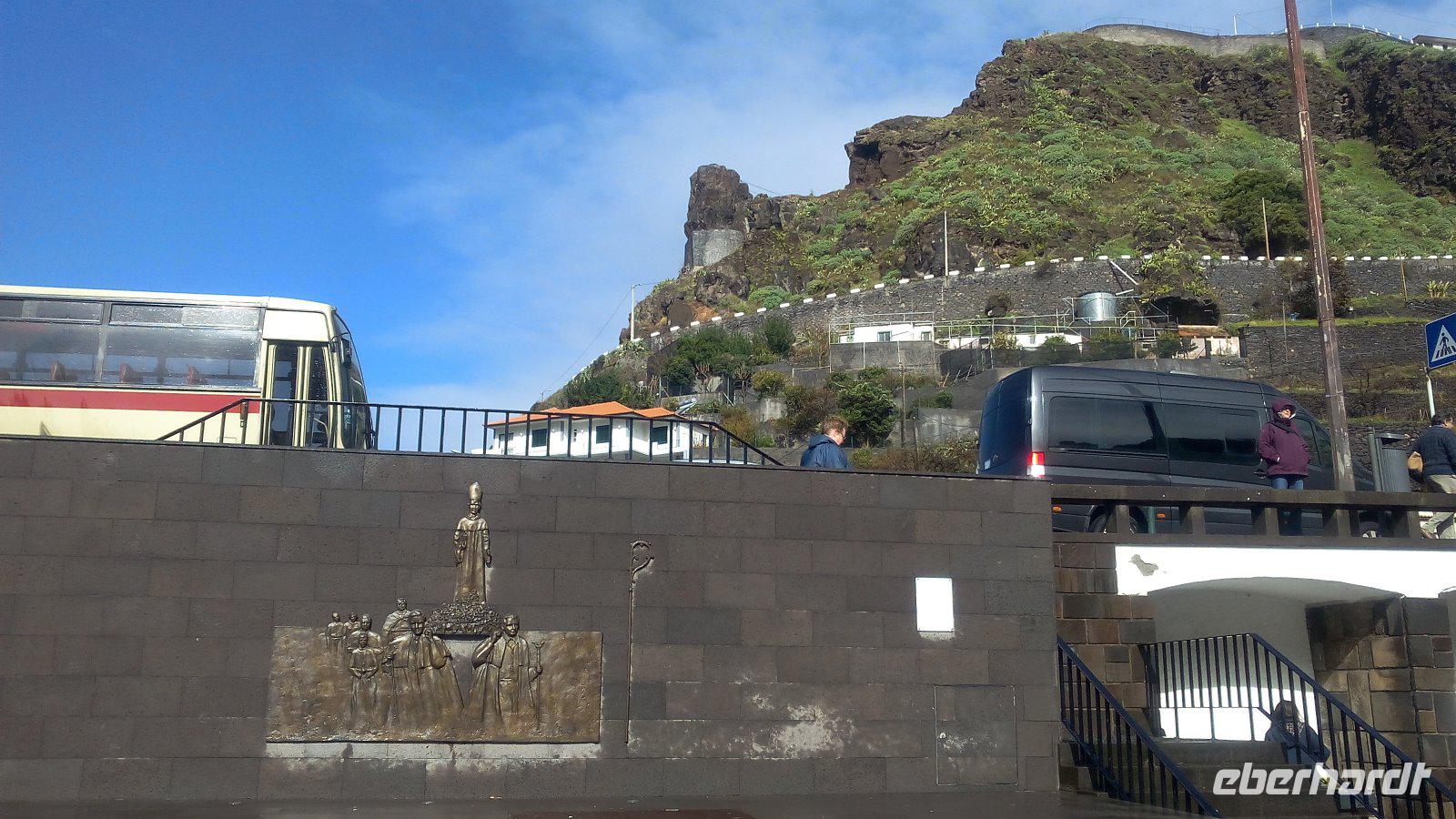 Richtung Westen und haben einen Aufenthalt in Ribeira Brava. Ein besinnliches Plätzchen an der Mündung des "Wilden Flusses". Der Ort wurde nach dem Fluss benannt wild (brava) fließender Fluss (ribeira). Wir sehen die Kirche Forte Sao Bento in der ein Gottesdienst stattfindet. Anschließend nutzen wir die Zeit für einen Bummel. In den engen Gassen finden wir die Händler, die uns ihre landestypischen Erzeugnisse wie z.B. die Stickereien, gestrickte Socken und Pullover, Leder-und Korbwaren anbieten.