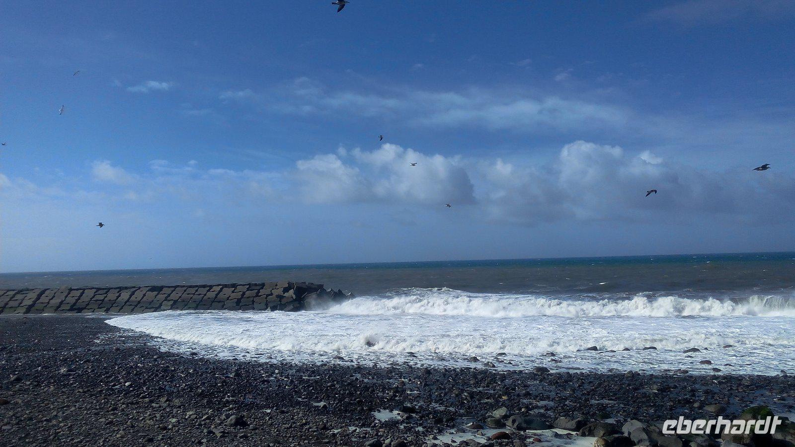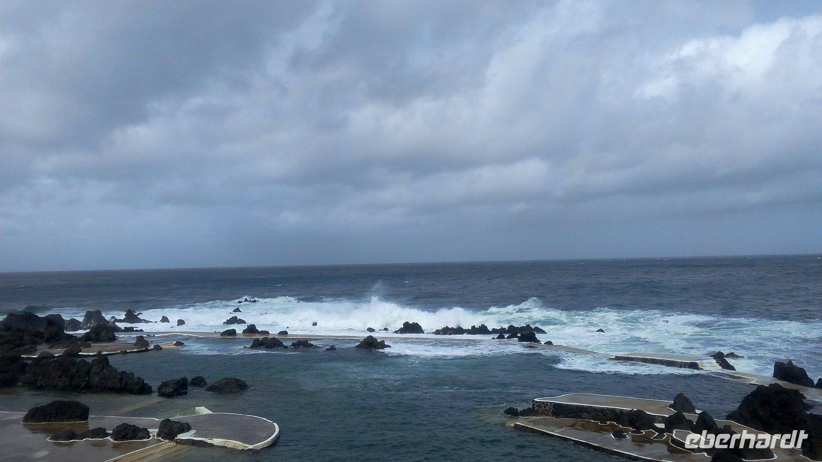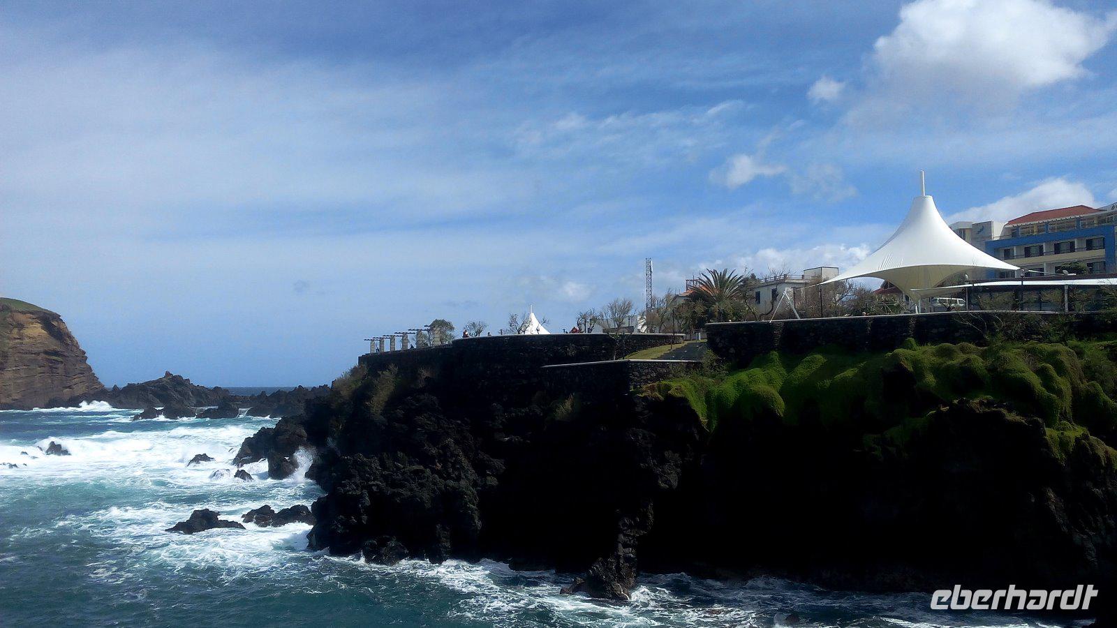 Gegen Mittag erreichen wir Porto Monitz am Atlantik. Wir nehmen uns zwei Stunden Zeit, In den Lavapools können wir leider nicht baden, da diese geschlossen sind. Aber bei einem Guten Essen und den hiesigen Wein wird uns die Zeit nicht lang. Danach beginnen wir mit unserer Rückfahrt und halten am Brautschleier -einem Wasserfall und danach in