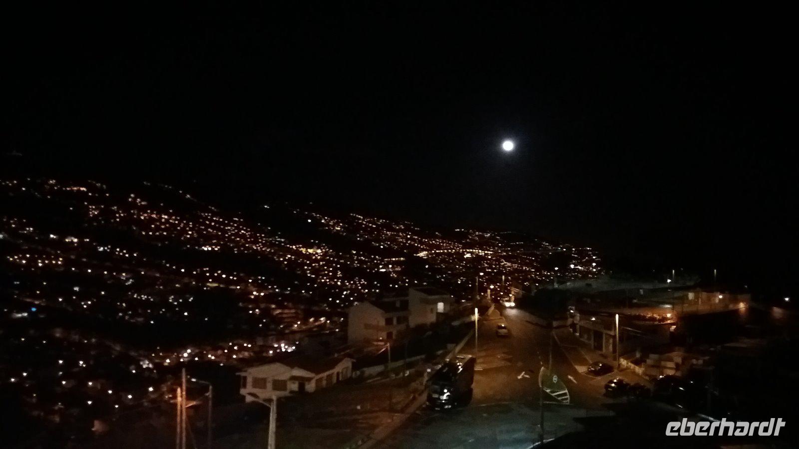 Bevor wir zurück zum Hotel fahren, werden wir noch auf die Terrasse des Restaurants geführt.Wir haben einen tollen Blick auf die beleuchtete Stadt Funchal.