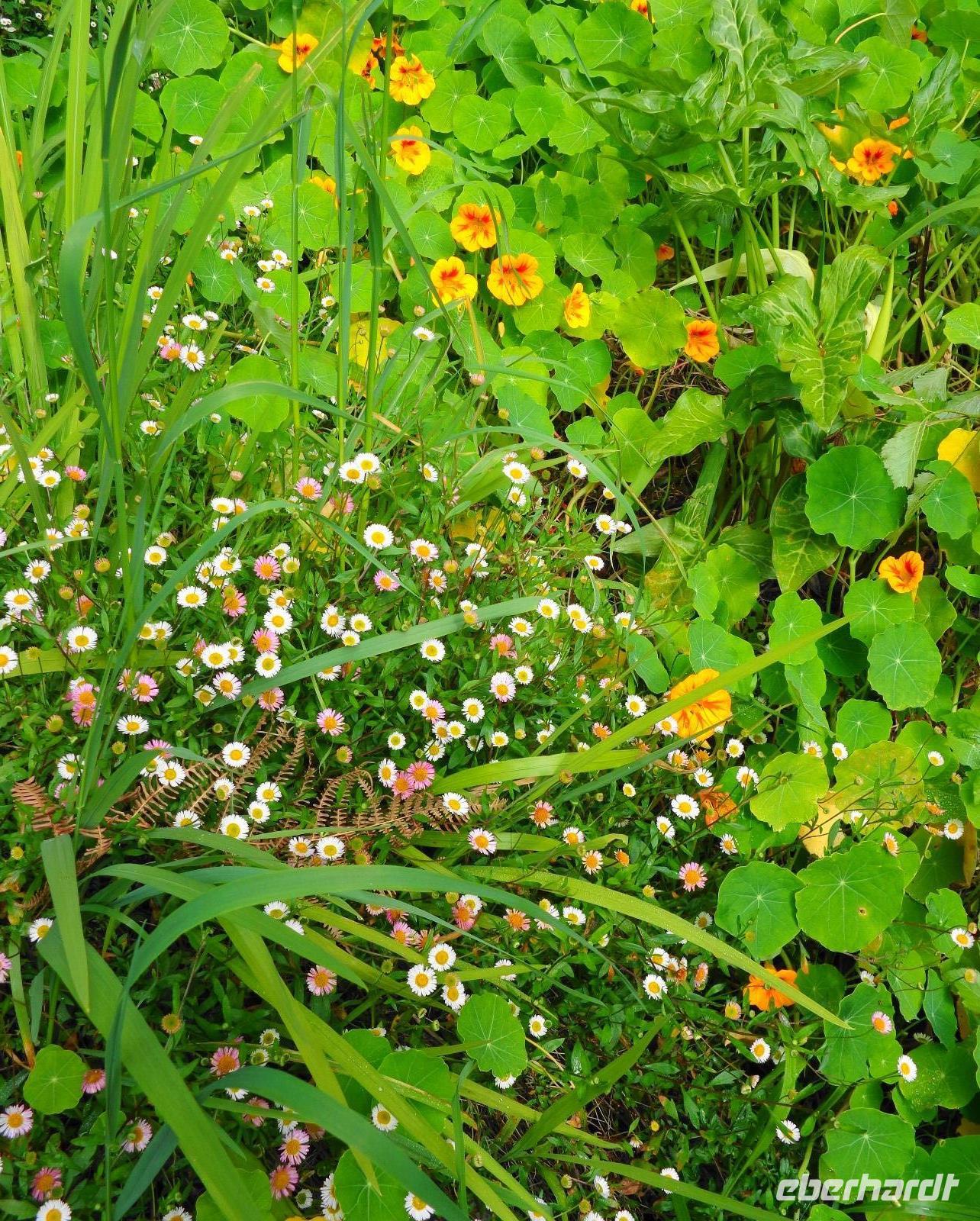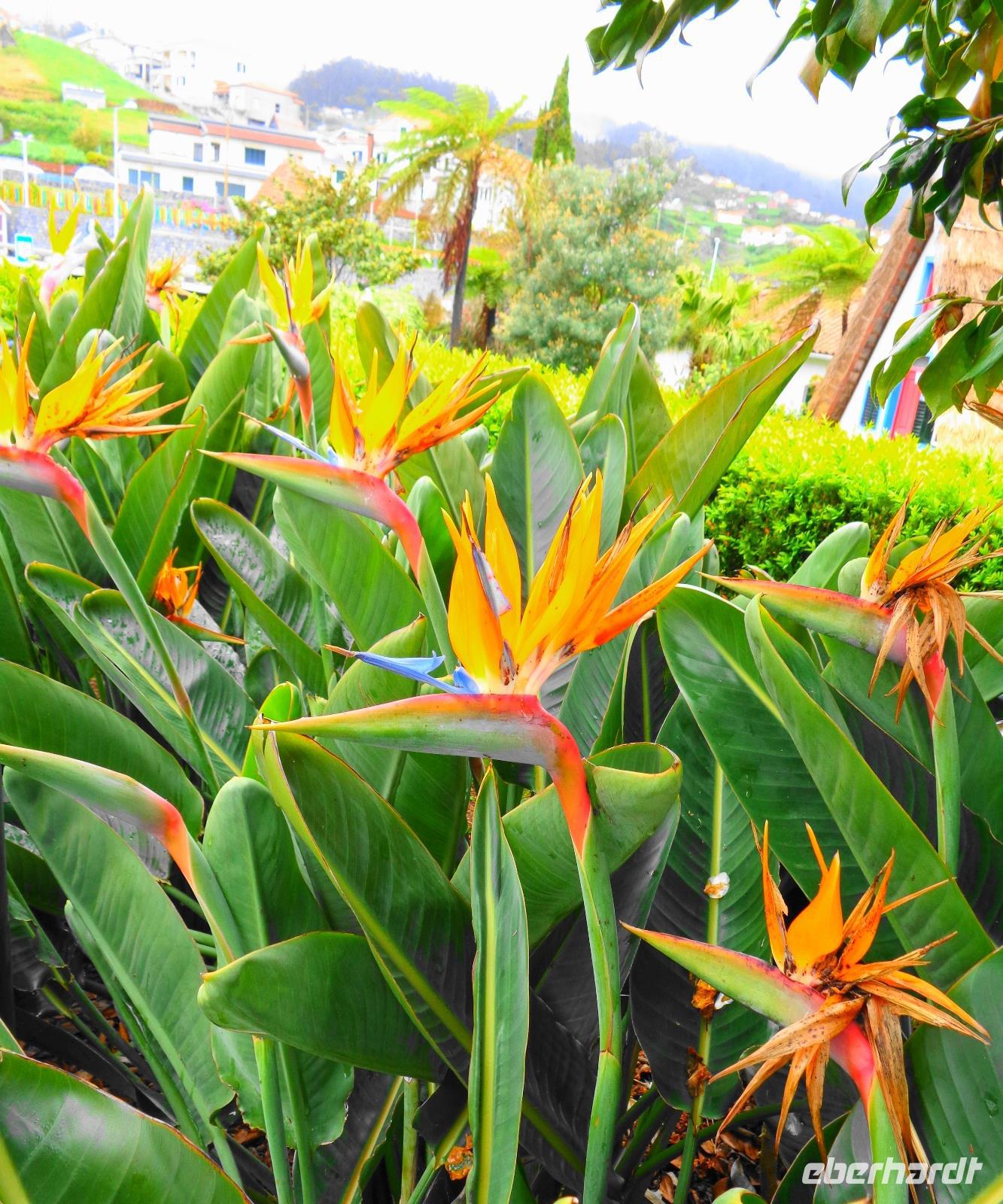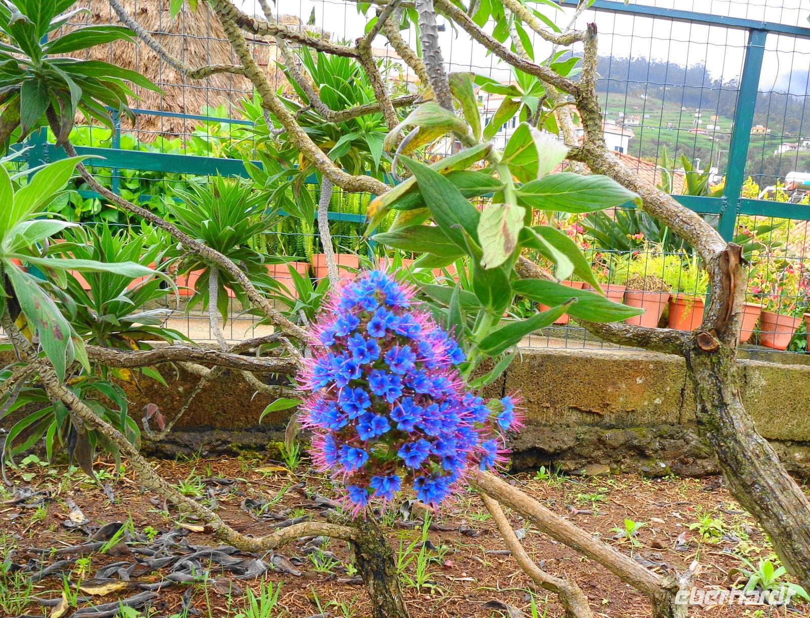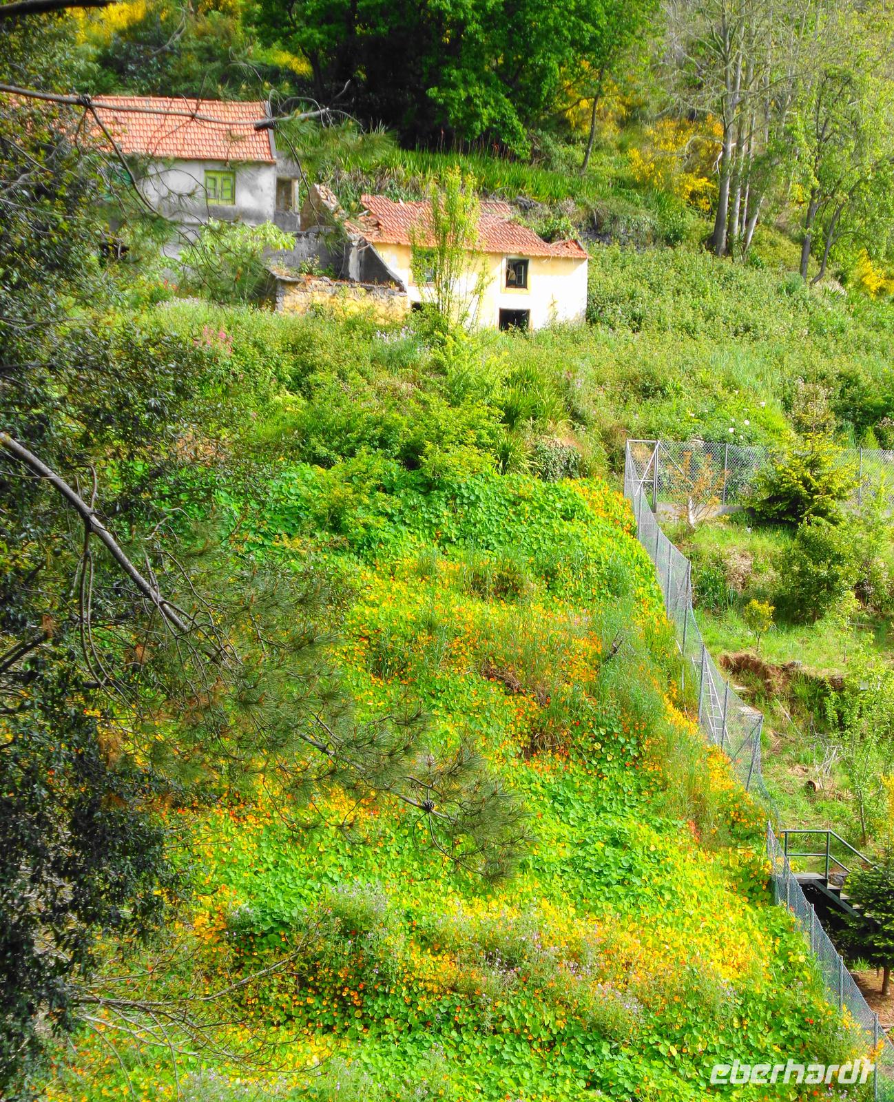 Entlang der Wege konnten wir die unermessliche Vielfalt der madeirensischen Pflanzenwelt bestaunen, die uns Teresa sachkundig erläuterte. Wir kamen auch an kleinen Bauernhöfen und ihren farbenprächtigen Nutz- und Ziergärten vorbei, wo wir Papayas und Maracujas bestaunten.
