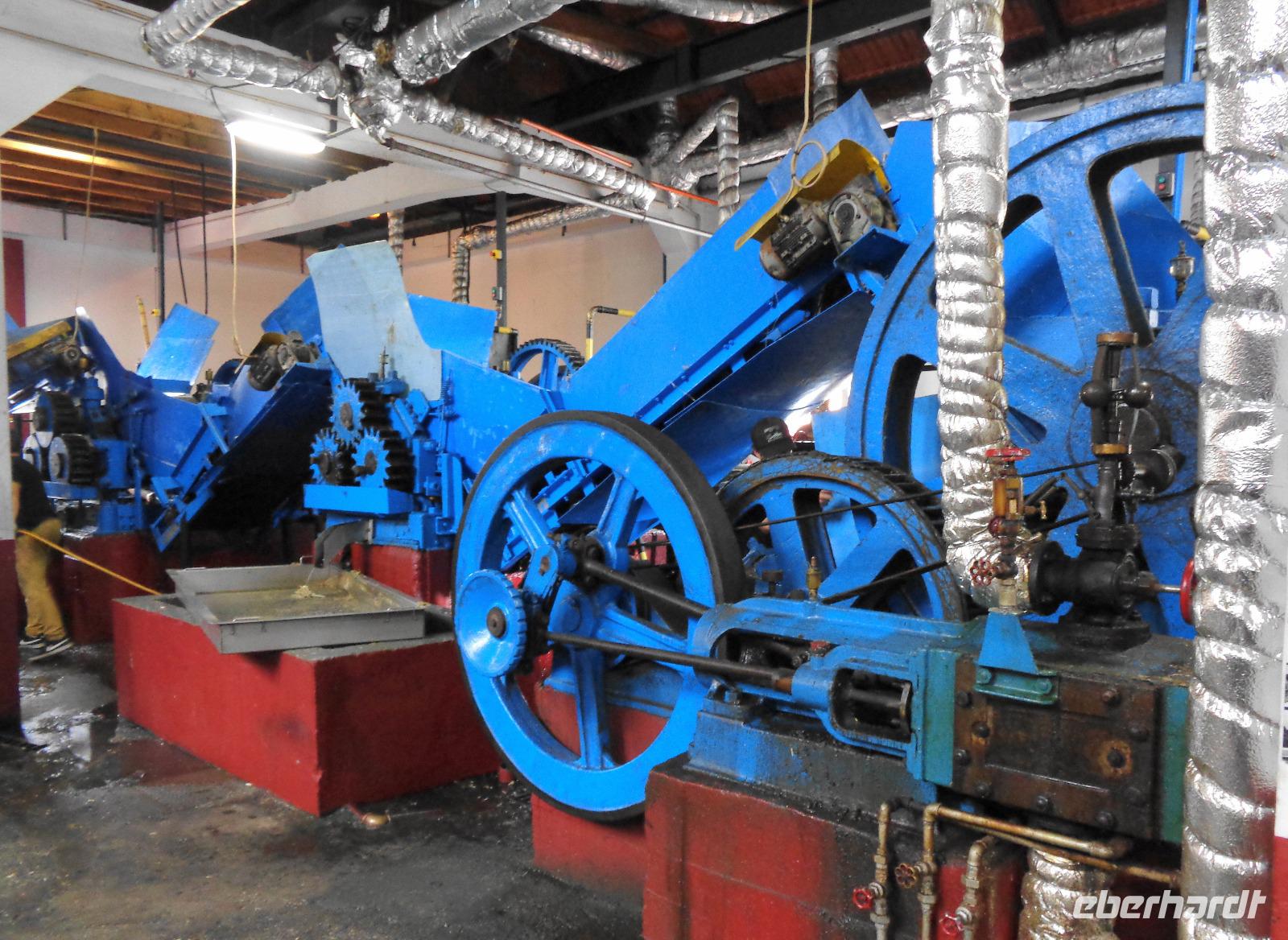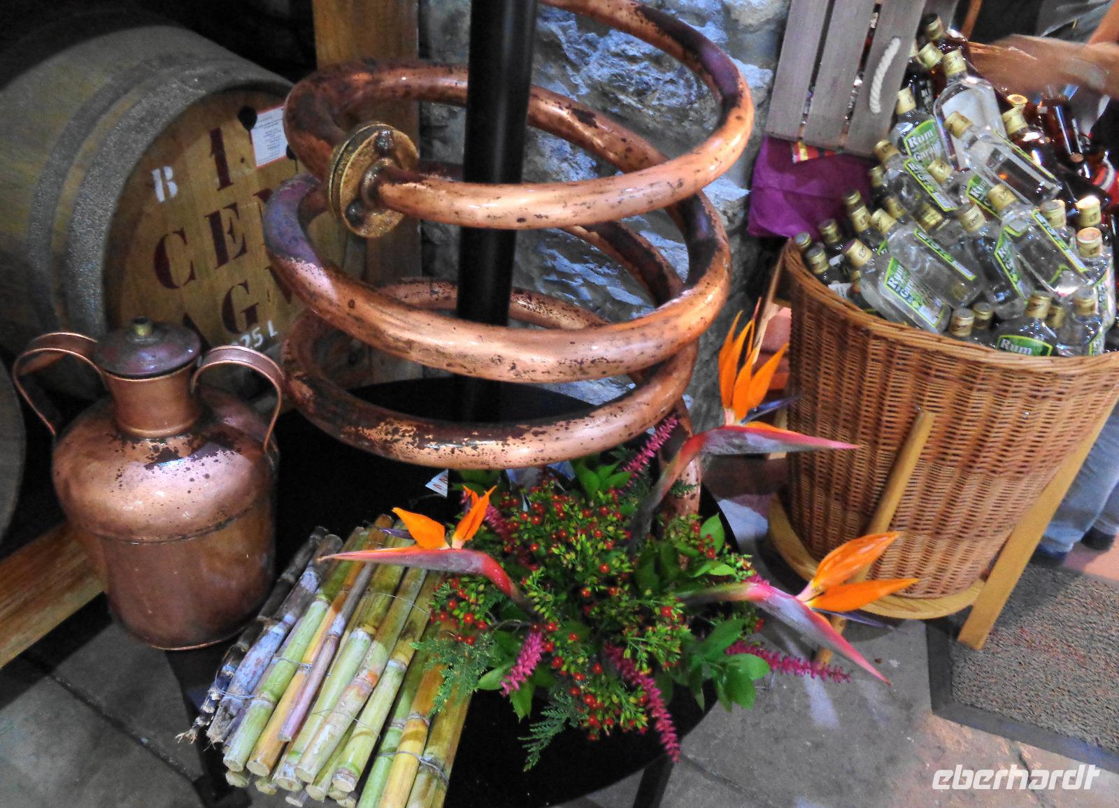 Über den Portela-Pass führte unsere Fahrt nach Porto da Cruz, wo wir bei nunmehr trockenem Wetter einen kleinen Spaziergang auf der Meeres-Promenade entlang der beeindruckenden Felsformationen unternahmen. Beim anschließenden Besuch einer Zuckerrohrdestillerie konnten wir das Nationalgetränk von Madeira, die Poncha, sowie süffigen Madeira-Wein und die Spezialität Honigkuchen verkosten, der dort besonders lecker ist.